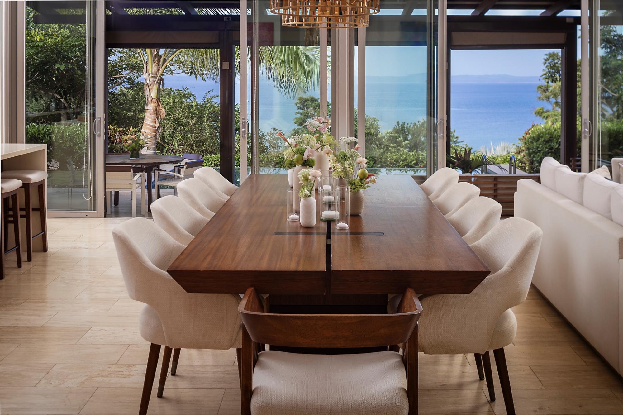 One of only two La Peninsula Villas remaining on the private island resort Pearl Island, the Hart Howerton-designed Villa 6 comprises two structures: the main home and a carriage house. The main home features high-pitched ventilated ceilings, floor-to-ceiling windows, 4 bedrooms, 4 ½ bathrooms, a chef’s kitchen, and a grand living area opening to covered outdoor space leading to a private infinity edge pool and landscaped lawn. Each primary bedroom opens to the outdoors with panoramic Pacific Ocean views. The carriage house provides an en-suite bonus room for service quarters, guests, a bunk room, a gym, or storage, plus a private garage for a golf cart and watersport toys. Positioned adjacent to the Beach Club, enjoy access to casual poolside dining, fitness, paddleball, tennis courts, and more. A slip at the world-class marina is available, and the private airstrip offers unmatched convenience. Owning a home on Pearl Island means more than just owning a home on a private island; it offers an unparalleled lifestyle. Only 20 mins from the mainland, Pearl Island is accessible by ferry, boat, and plane via a private airstrip for midsize planes. The 3,500-acre private island luxury resort in the Las Perlas Archipelago features 30 kilometers of coastline and seven secluded beaches.