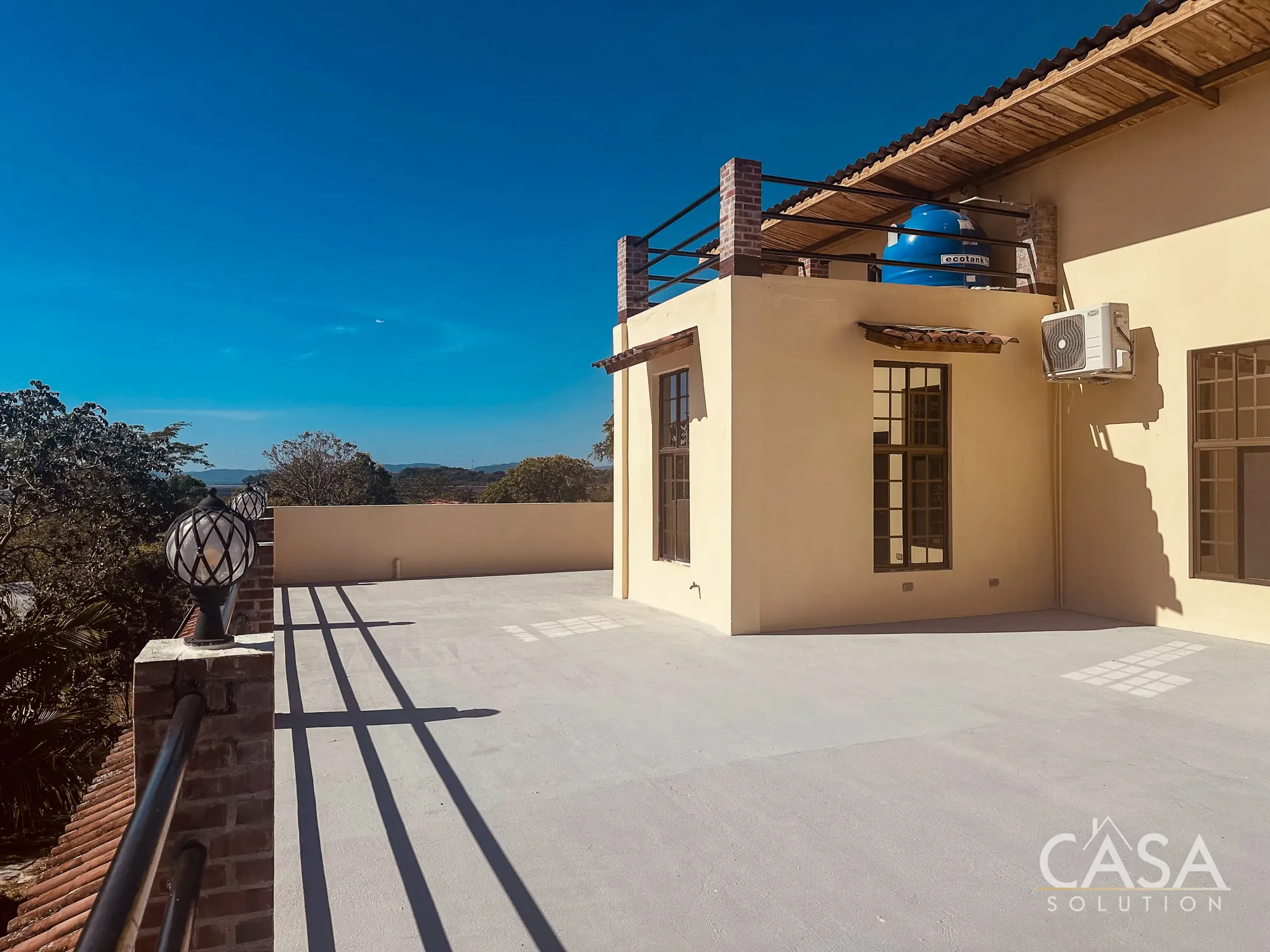 Outdoor space plays a key role in how this property functions. The home includes multiple terraces, a balcony, and a rooftop area that opens up views toward the surrounding landscape and the ocean.