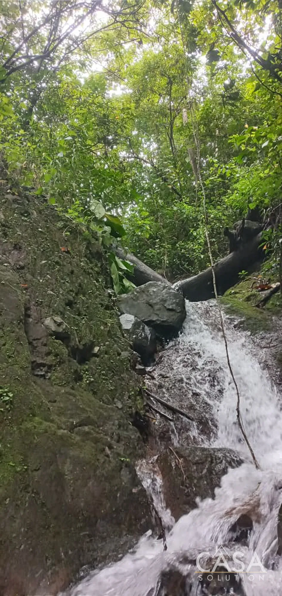 A key factor here is water. The property includes a quebrada (stream) and an on-site waterfall, both of which influence how the land can be used and developed over time.