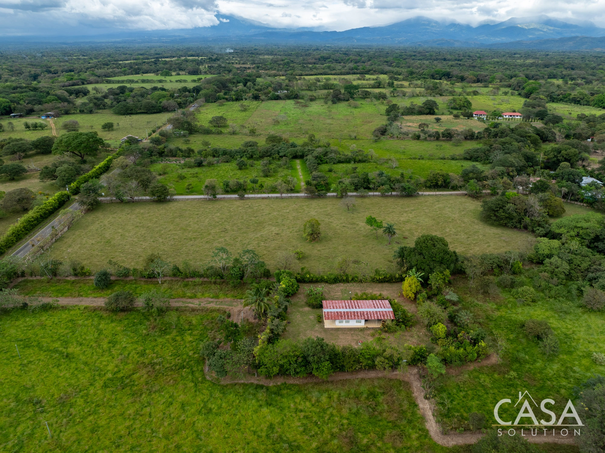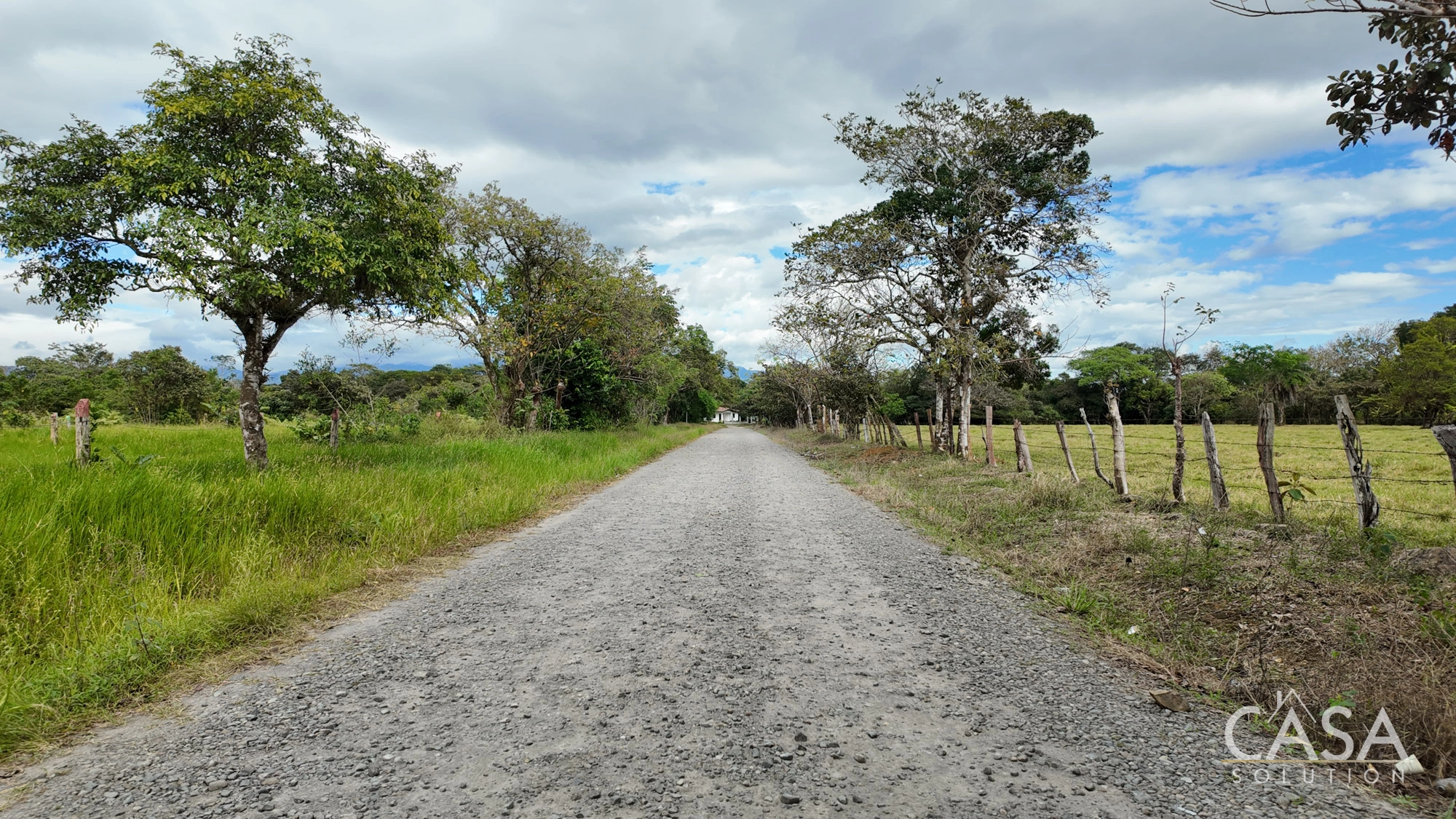 The property consists of 23,348 square meters of land with a mostly flat and usable topography. The terrain is well suited for agricultural activity, residential construction, or a combination of both, depending on zoning and permitting requirements. The lot is currently open pasture with natural vegetation and scattered trees, making it easy to visualize future layouts or phased development.