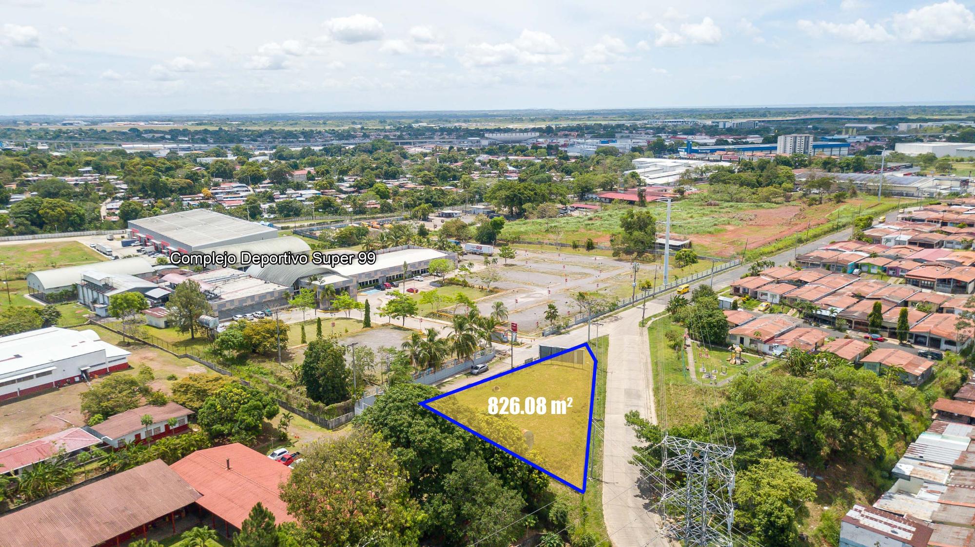 The land is located in front of the intersection between the main street of Alicante, Villa del Bosque Avenue and the entrance to Fe y Alegría School, diagonally to the Super 99 Mañanitas Recreation Center, in the La Mañanitas sector, Tocumen Township. The land is triangular in shape and semi-flat topography with a slight slope towards its back, it has a street frontage of 33.34 m and another of 51.82 m. It is located at a height above street level approximately 1.2 meters, which for adequate development could be considered to be cut to align it with the street. It has a total area of 826.08 m2. The sector where the land is located presents a mostly residential development where we can locate some planned communities such as Parque Alicante, Villas del Bosque, Los Nogales, Parque Real, Las Américas, Santa Mónica, among others. Additionally, the sector has some commercial developments where the Super 99 Commercial Plaza predominates, the sector also has a semi-industrial area where we can find industries such as Galores warehouses, Operadora Panamax, Jumbo Supermarkets, Ultracem Panama Cement, among others. As main access routes, it is a few meters from Jose María Torrijos Avenue and the Pan-American Highway, as well as access to the Su corridor. Additionally, line 2 of the Panama metro and a station called Las Mañanitas are located. Sale price $ 150,000.00 USD Lot size: 826.08 m² Zoning: 1 P Appraisal: Market Value $ 181,700 Forced Sale $ 157, 037.47