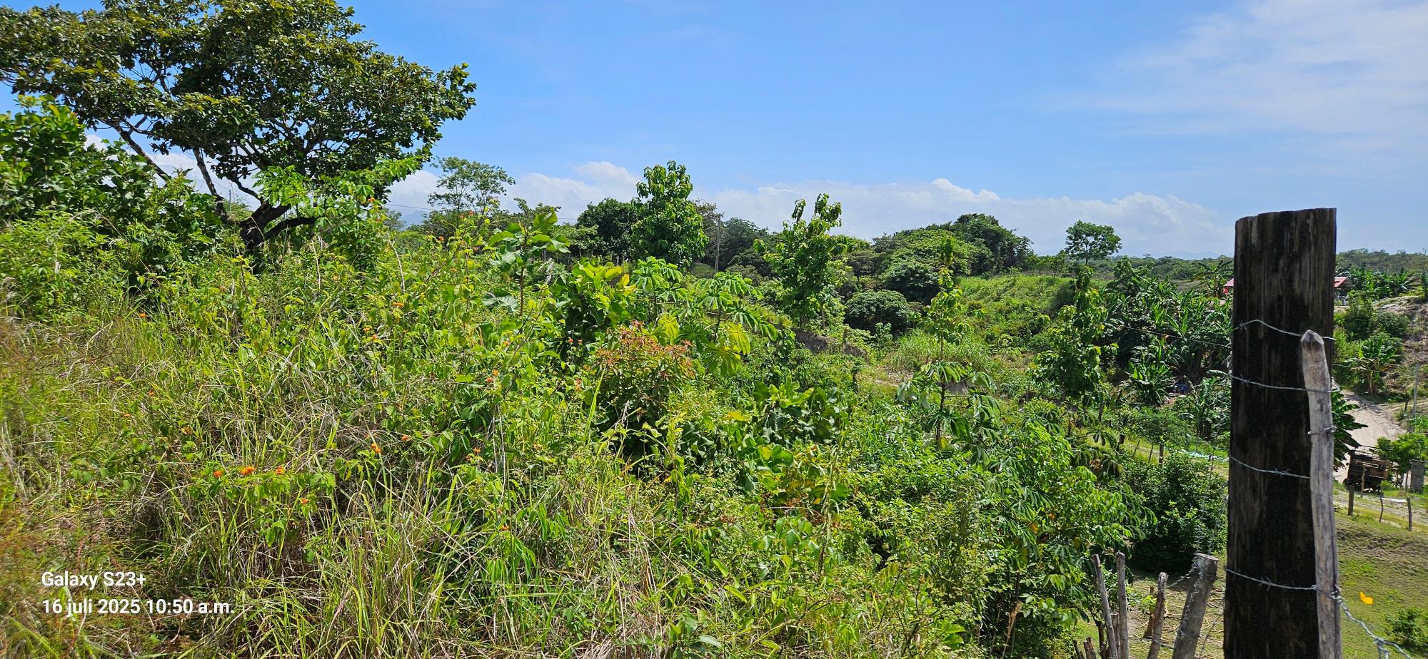 Titled lot 8 km from the Inter-American Highway with panoramic views of the ocean in the distance and the mountains. There is electricity and water nearby. Free of liens. A peaceful and tranquil setting.