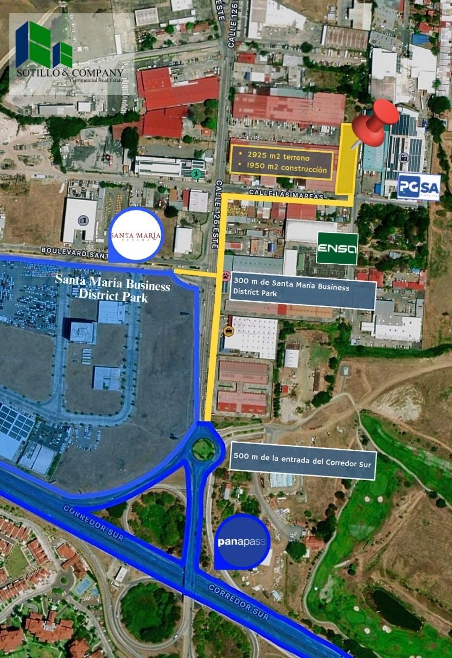Large warehouse located in Llano Bonito on Calle Las Mareas, sitting on a 2,925 m² lot that includes a 1,500 m² single-level warehouse plus 450 m² of mezzanine office space, with separate entrances from the warehouse as well as internal connections. The warehouse offers 9 meters of height on the sides and 10 meters at the center, with skylights providing natural lighting, a freight elevator, extractors, dining area, restrooms and changing rooms for both men and women, as well as 400 m² of parking area (or loading yard). The office area includes a reception, six spacious offices, kitchen, dining room, file storage area, and IT room, providing a functional and comfortable space for administrative management. With an 800 m² yard, ideal for future expansions, the property benefits from an adjacent cul-de-sac street, perfect for maneuvering and logistics operations without traffic interference. Its excellent location just a few meters from Santa Maria Business District and the Corredor Sur entrance makes this property a strategic option for companies seeking space, practicality, and a prime location in the city.