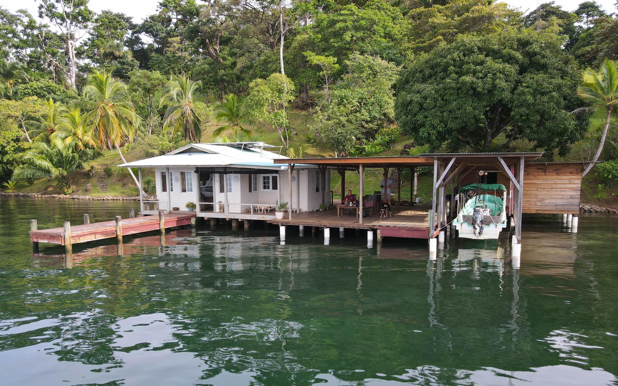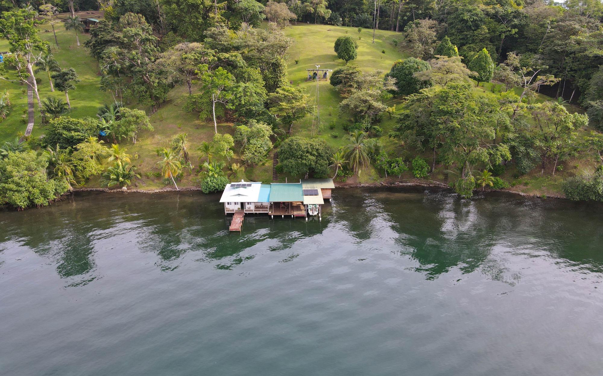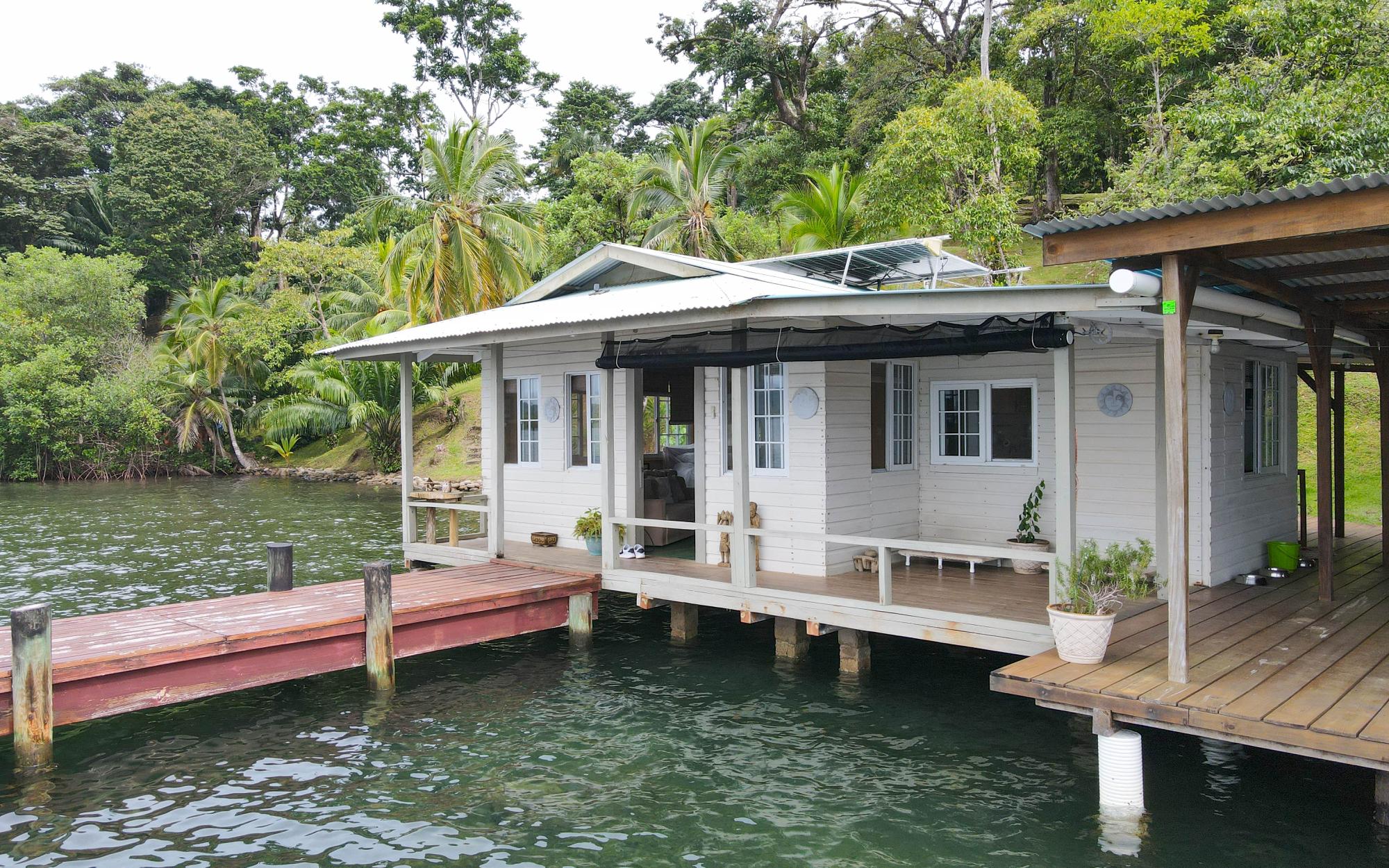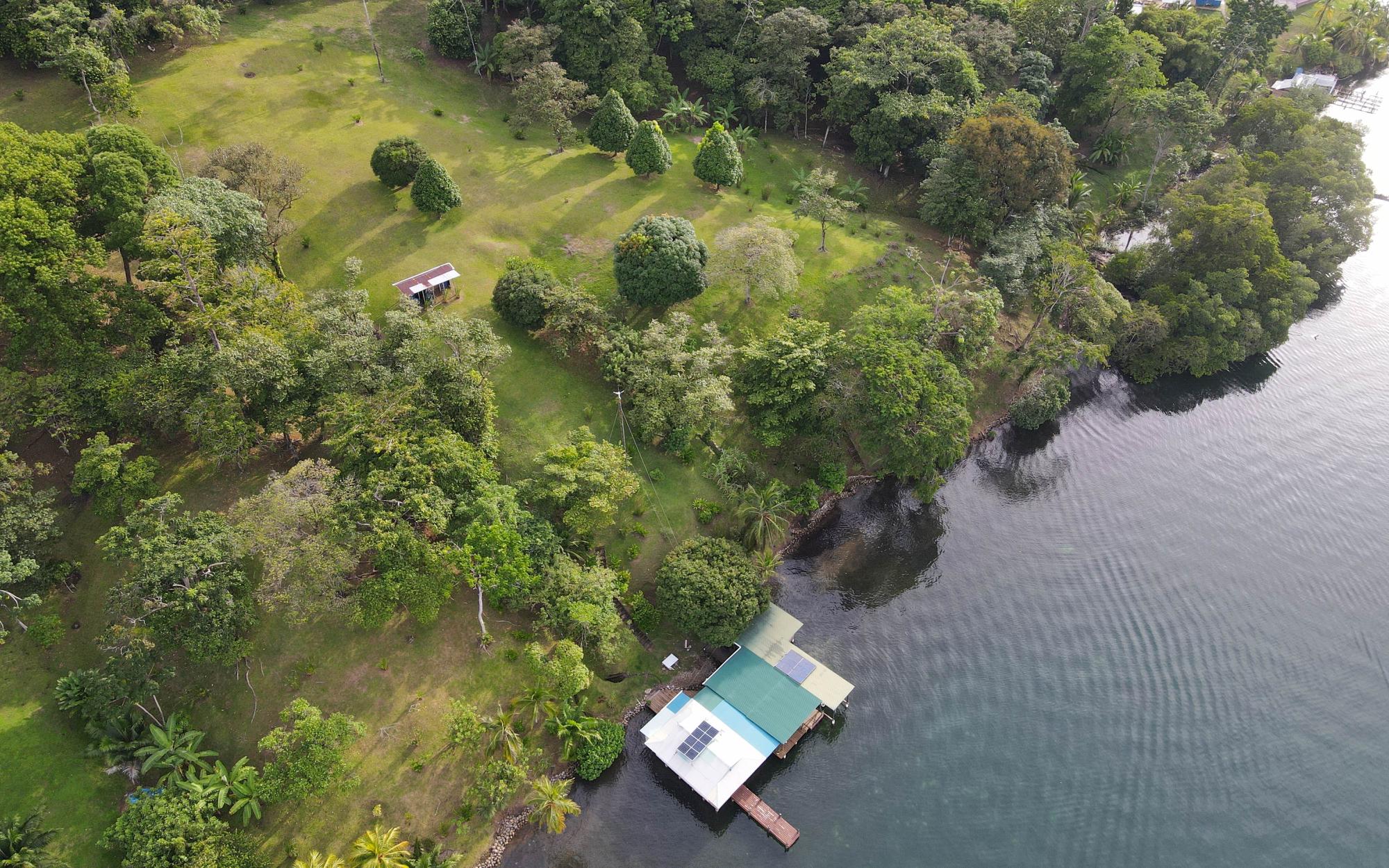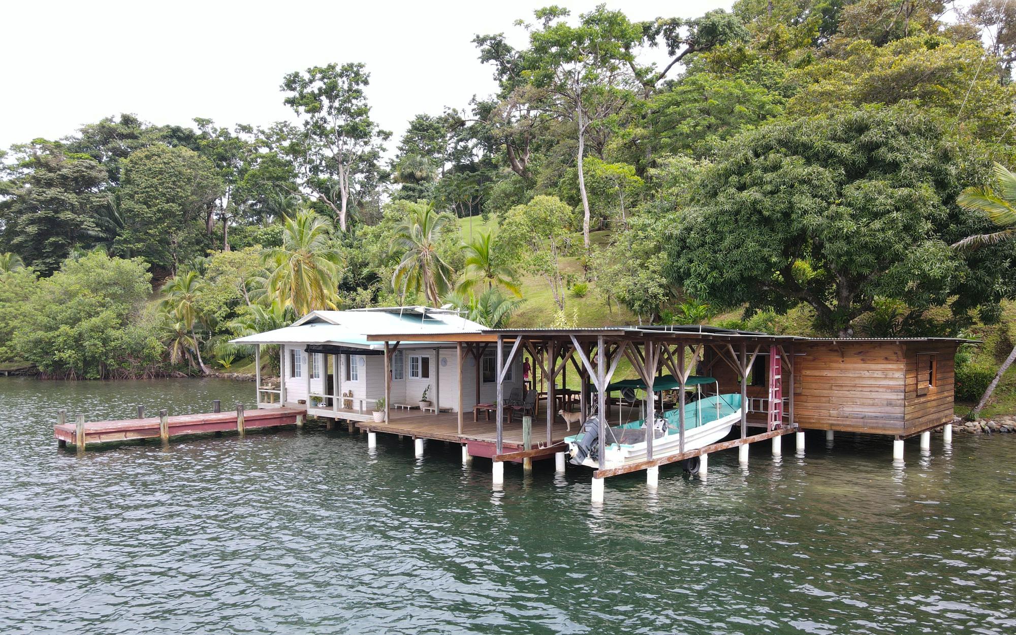 North facing with excellent elevation and 117 meters of seafront, this 2 hectare lot boasts amazing views of the island dotted coast of the Southern Lagoon system in Bocas del Toro. At least 2 beautiful build sites grace the manicured hillside of the property where the North Breeze is constant. The land is planted with matured mango trees, rose apple, pineapple, plantains and bananas. The most exciting parts of this property are the 2 fresh water springs! Imagine relaxing in a cool natural infinity pool taking in the views. The sweetest little cabana over the sea greets you at the base of a stunning parcel of land. A studio lay out, the cabana has a living room and bedroom combined, with a bathroom at the back, and a separate kitchen to the side. The space opens onto a 16 m2 covered patio dining area, and on the other side is a boat house with a lift and a workshop where the offgrid systems are located, including a back up generator, 1 year old lithium batteries.