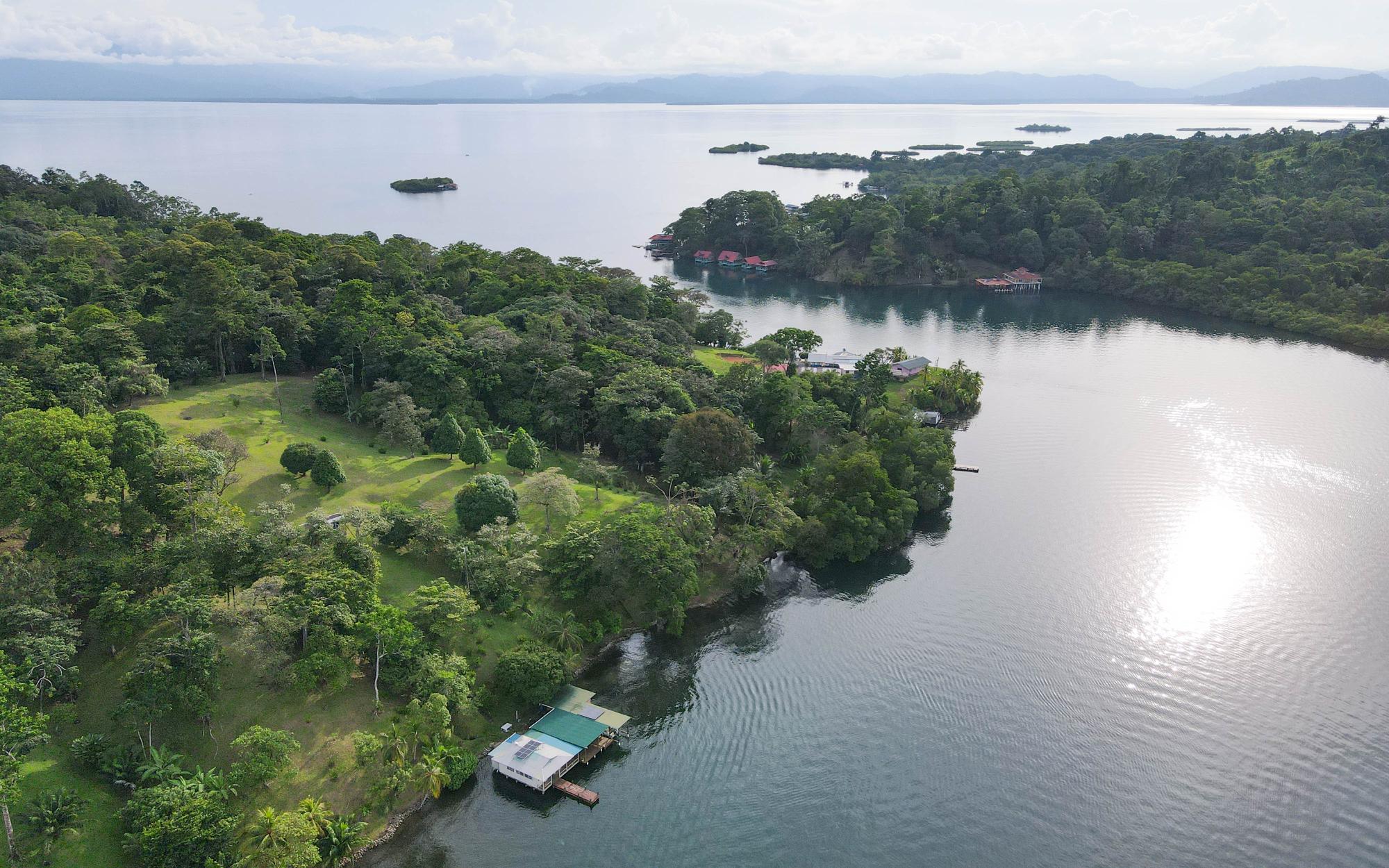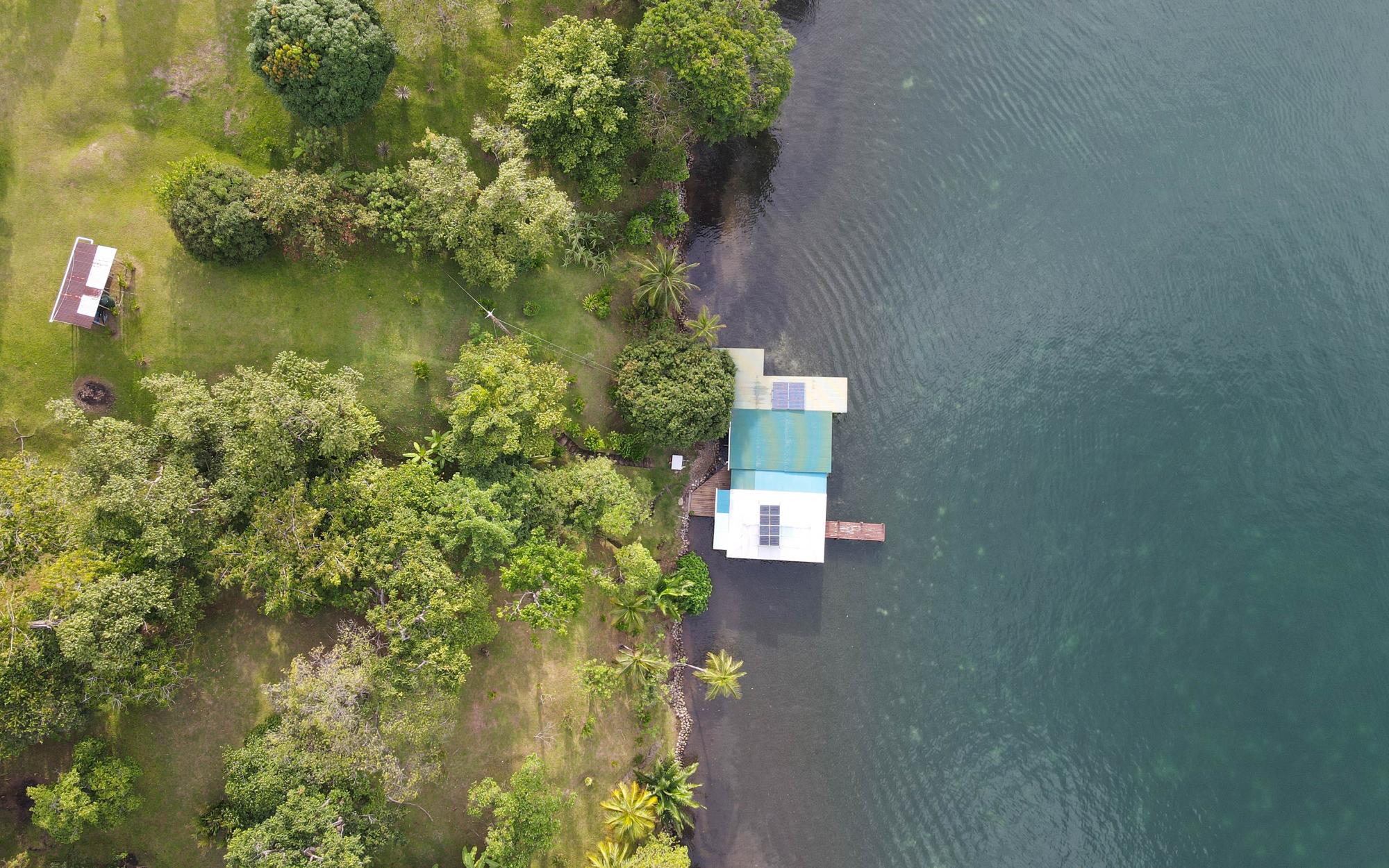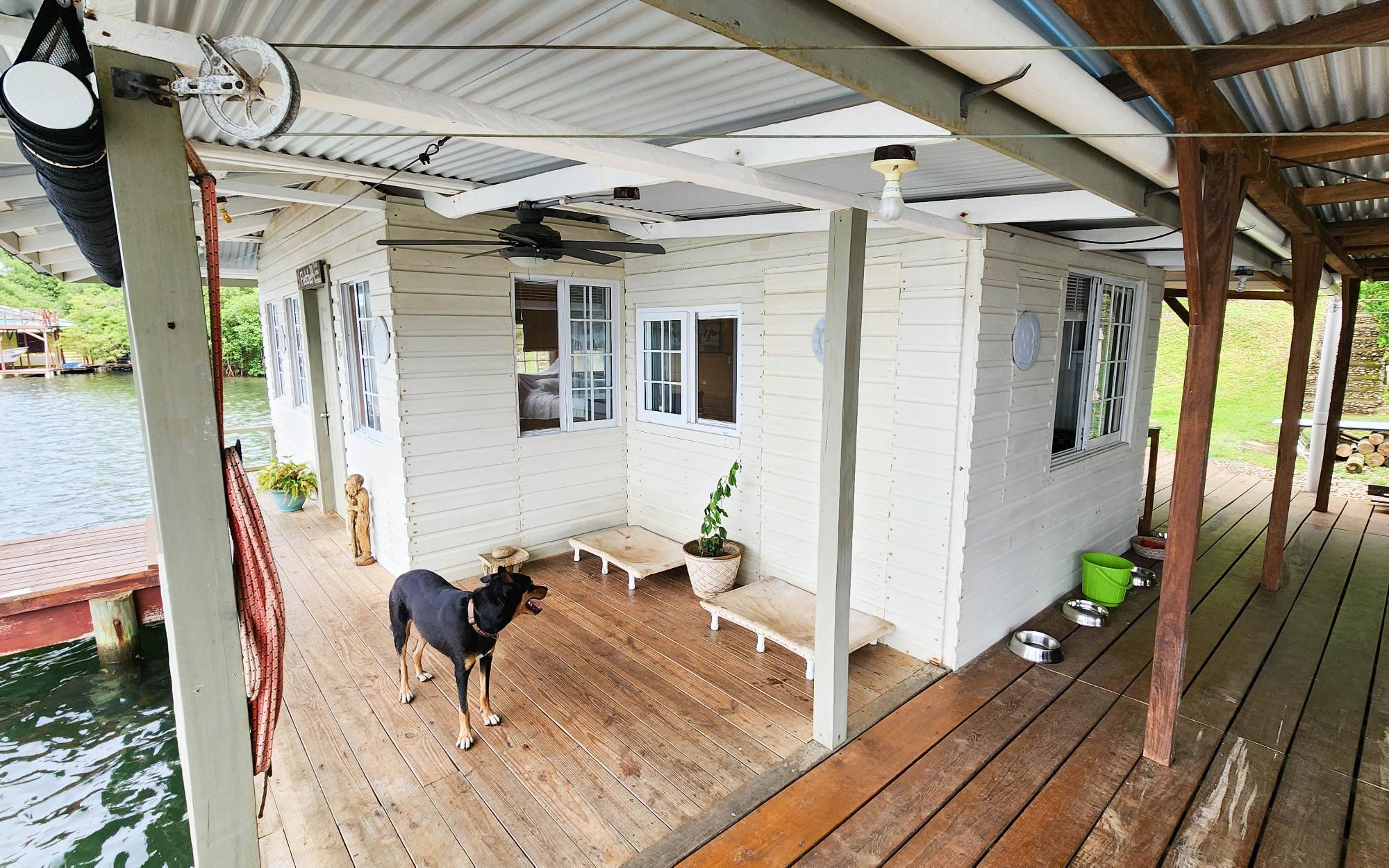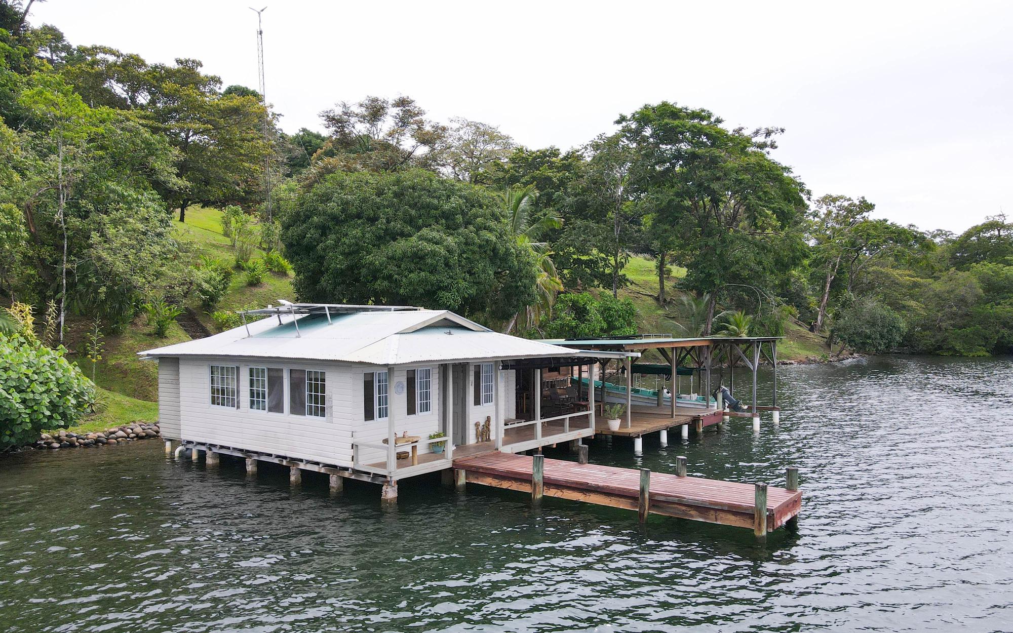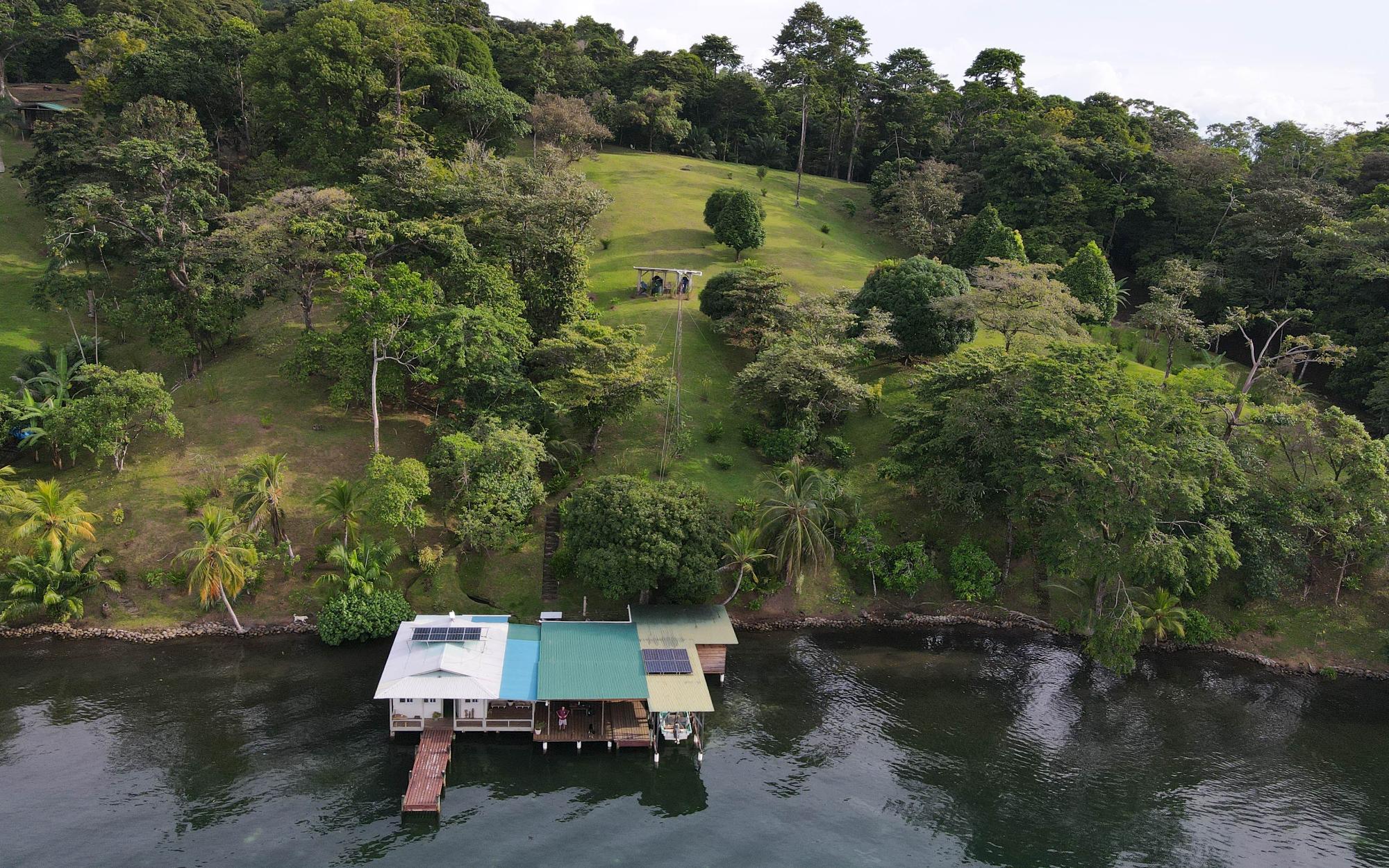 North facing with excellent elevation and 117 meters of seafront, this 2 hectare lot boasts amazing views of the island dotted coast of the Southern Lagoon system in Bocas del Toro. At least 2 beautiful build sites grace the manicured hillside of the property where the North Breeze is constant. The land is planted with matured mango trees, rose apple, pineapple, plantains and bananas. The most exciting parts of this property are the 2 fresh water springs! Imagine relaxing in a cool natural infinity pool taking in the views. The sweetest little cabana over the sea greets you at the base of a stunning parcel of land. A studio lay out, the cabana has a living room and bedroom combined, with a bathroom at the back, and a separate kitchen to the side. The space opens onto a 16 m2 covered patio dining area, and on the other side is a boat house with a lift and a workshop where the offgrid systems are located, including a back up generator, 1 year old lithium batteries.