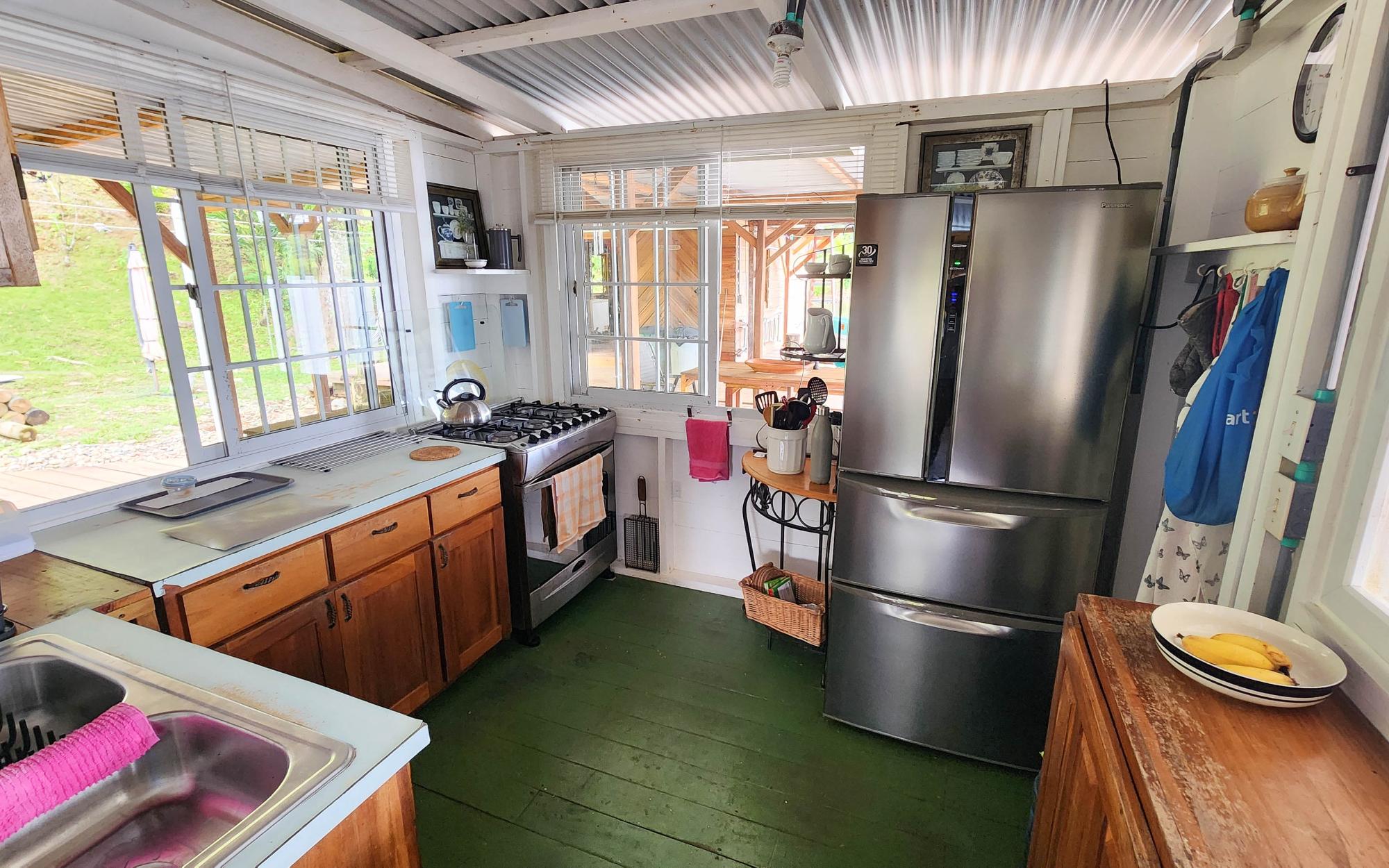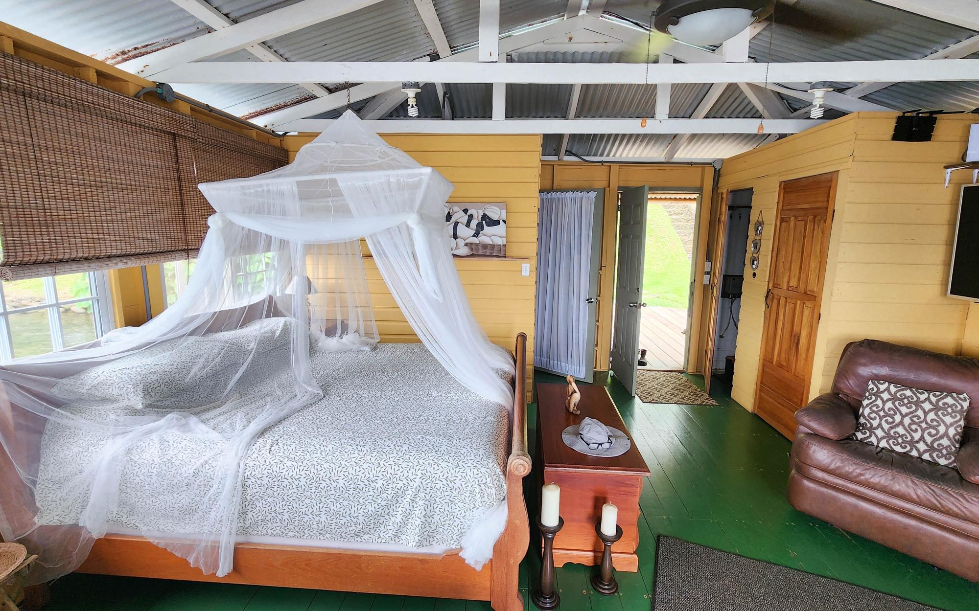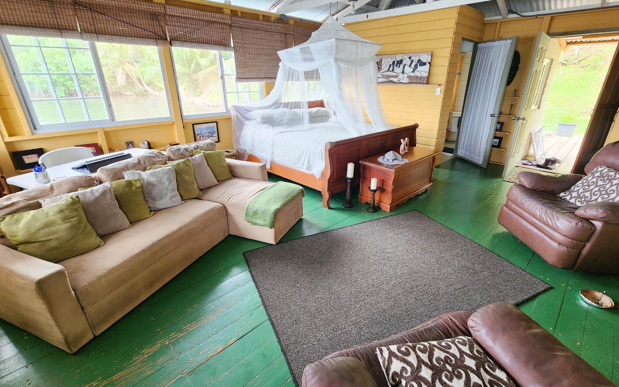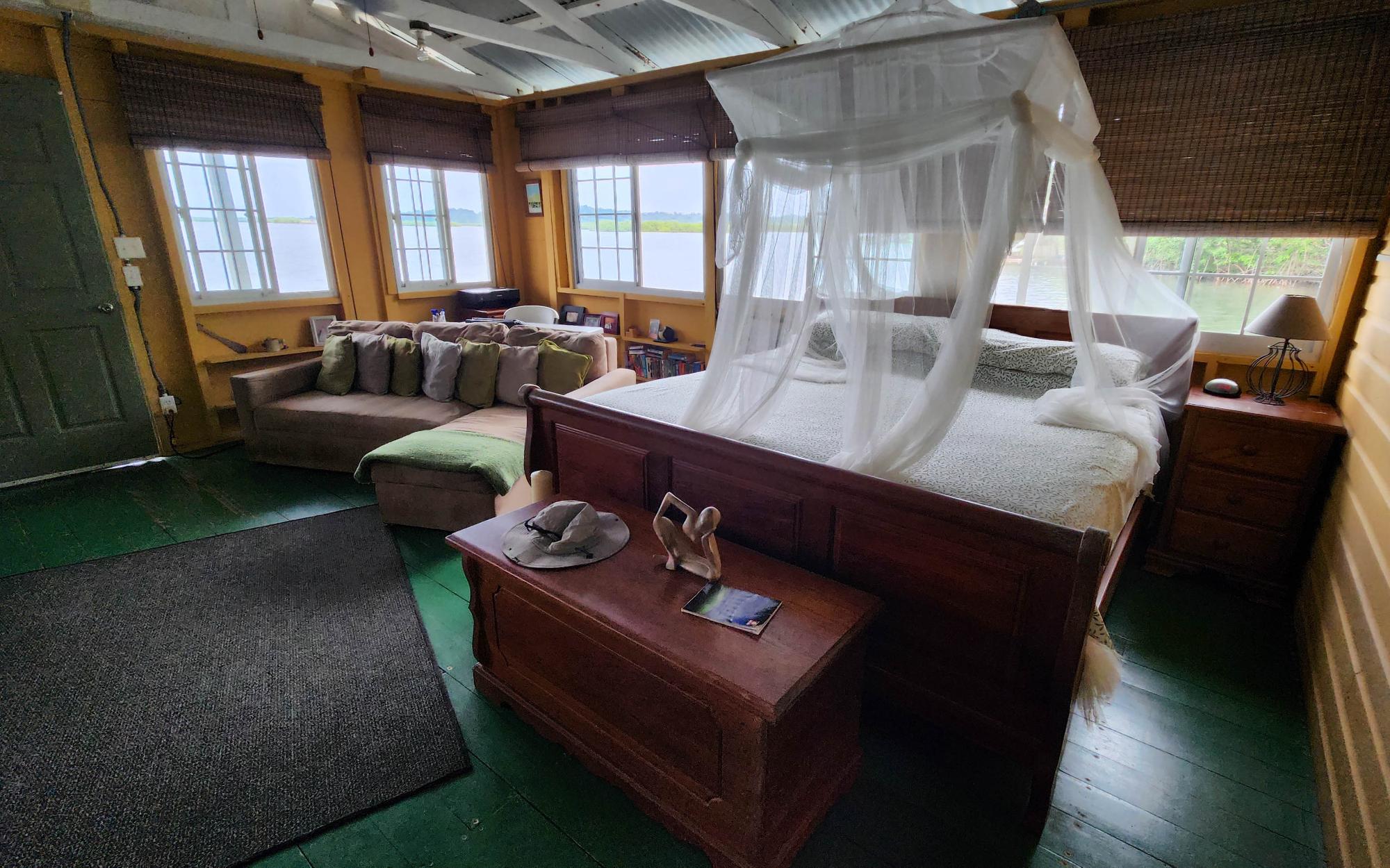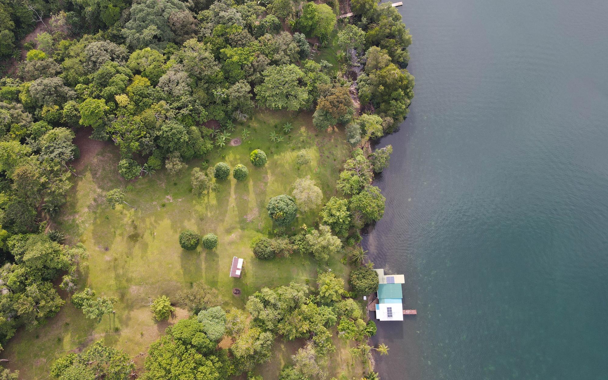 North facing with excellent elevation and 117 meters of seafront, this 2 hectare lot boasts amazing views of the island dotted coast of the Southern Lagoon system in Bocas del Toro. At least 2 beautiful build sites grace the manicured hillside of the property where the North Breeze is constant. The land is planted with matured mango trees, rose apple, pineapple, plantains and bananas. The most exciting parts of this property are the 2 fresh water springs! Imagine relaxing in a cool natural infinity pool taking in the views. The sweetest little cabana over the sea greets you at the base of a stunning parcel of land. A studio lay out, the cabana has a living room and bedroom combined, with a bathroom at the back, and a separate kitchen to the side. The space opens onto a 16 m2 covered patio dining area, and on the other side is a boat house with a lift and a workshop where the offgrid systems are located, including a back up generator, 1 year old lithium batteries.