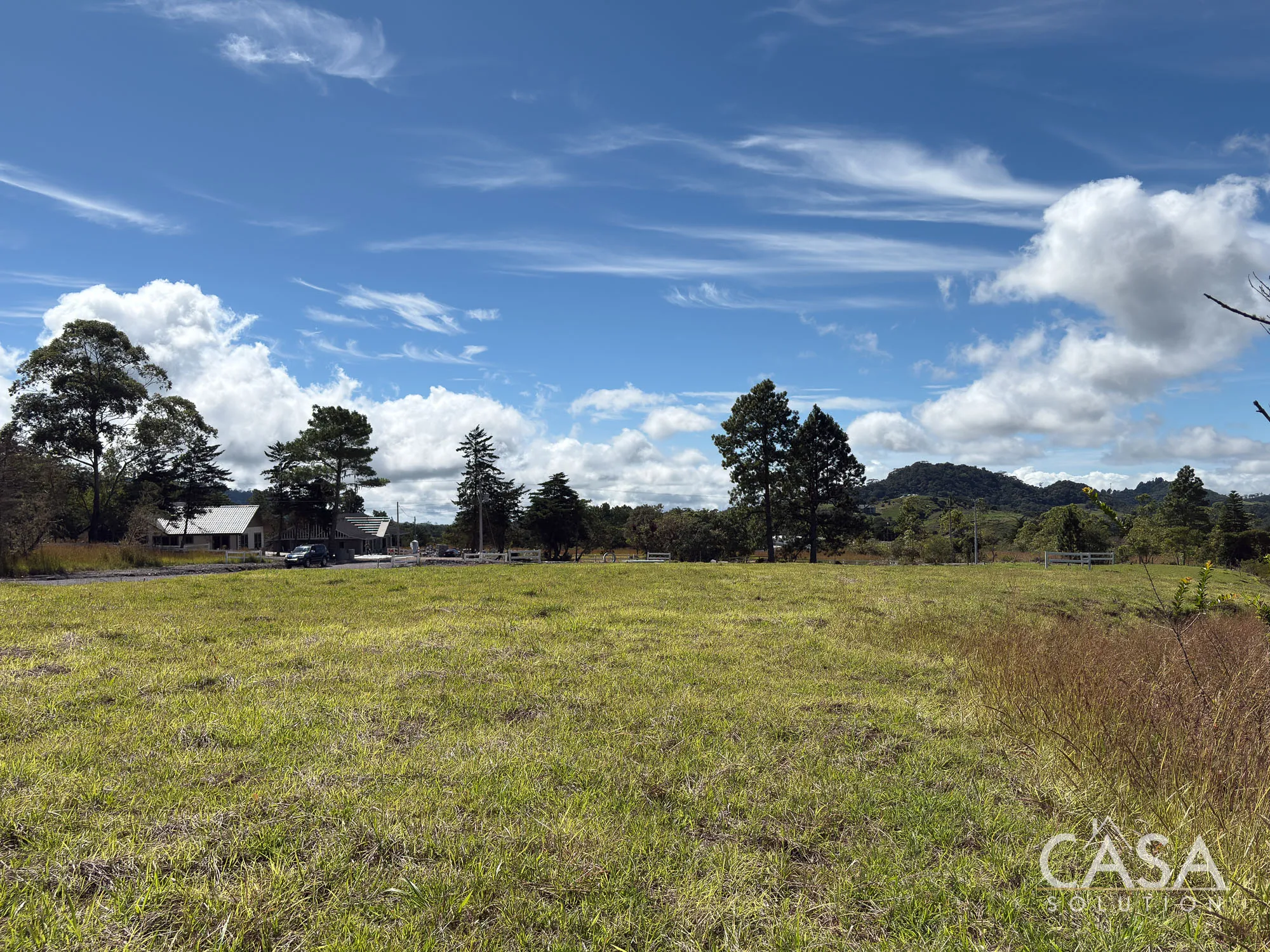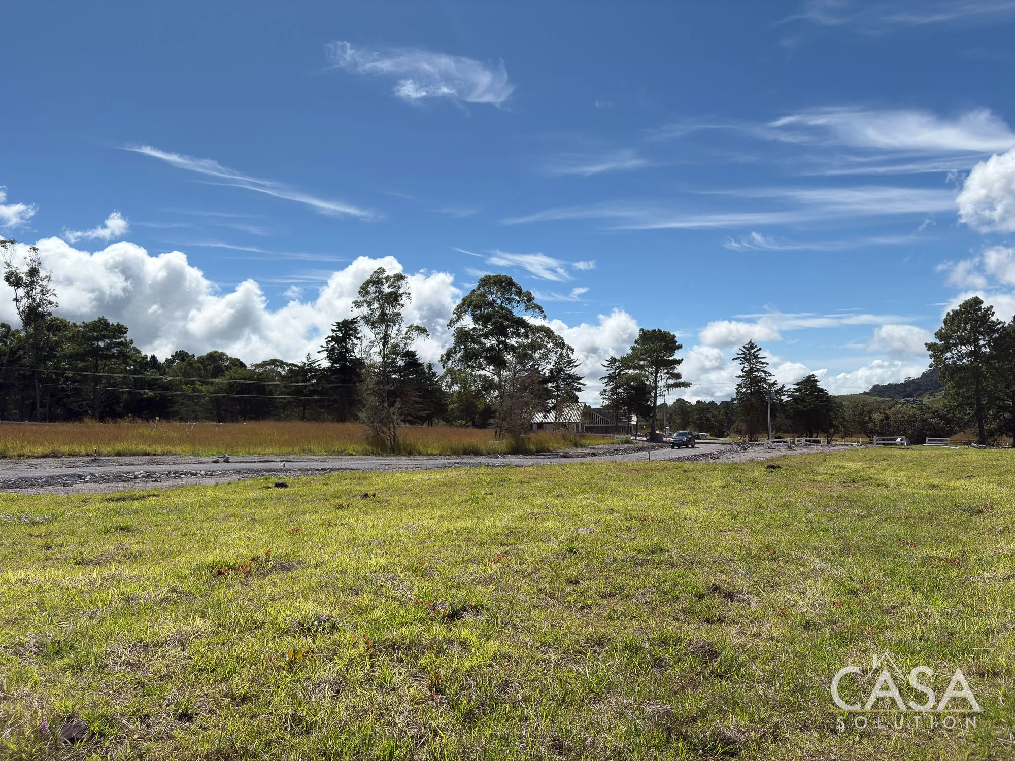 Located at approximately 1,500 meters above sea level, Lot E03 benefits from a cool mountain climate with daytime temperatures averaging 20–22°C. The property sits 3 km (about 8 minutes) from downtown Volcán and 1.2 km from the paved road. Project-designated green areas include coffee-planted land and a vineyard area under development, with grape plants already established. Water and electricity are available at the property line, and the subdivision does not operate under an HOA.