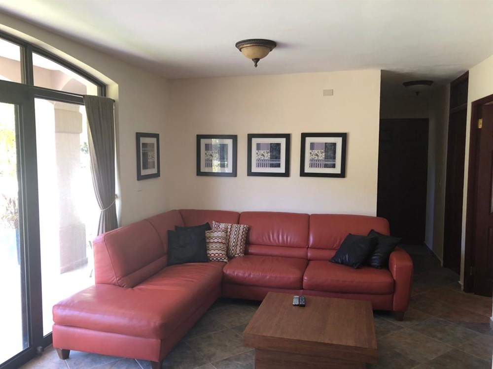 La habitación principal consta de amplias ventanas y un esplendido baño con bañera, ducha con puertas de vidrio y lavamanos doble con sobre de granito.
