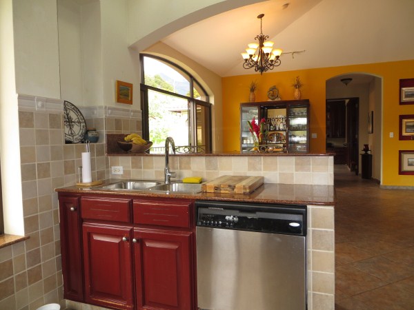 Enjoy your new life in this high quality free-standing home in Valle Escondido, Boquete’s famed gated community. The open floor plan house is in excellent condition and well located amidst high-end homes on a lovely street. It is impressive with the primary living spaces all together on one floor. The living room, kitchen, laundry room, master bedroom and guest bedroom/office are all on the higher level. Just off the living room is a veranda with gas fireplace in a very private backyard setting. The gardens here have been well-cultivated with trees of lime, orange, avocado, banana and coffee. An existing herb garden adds to the spice of life in your new home.