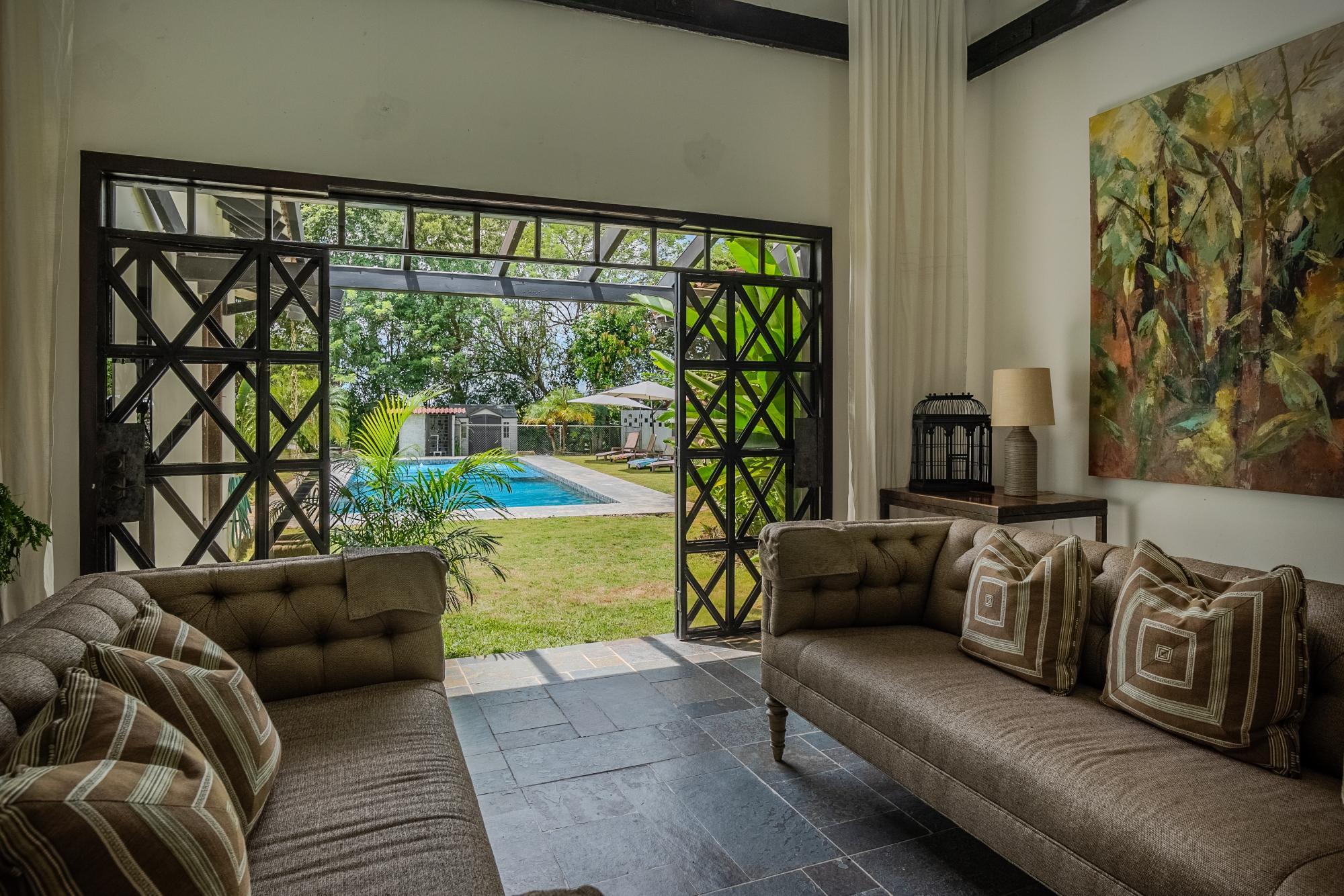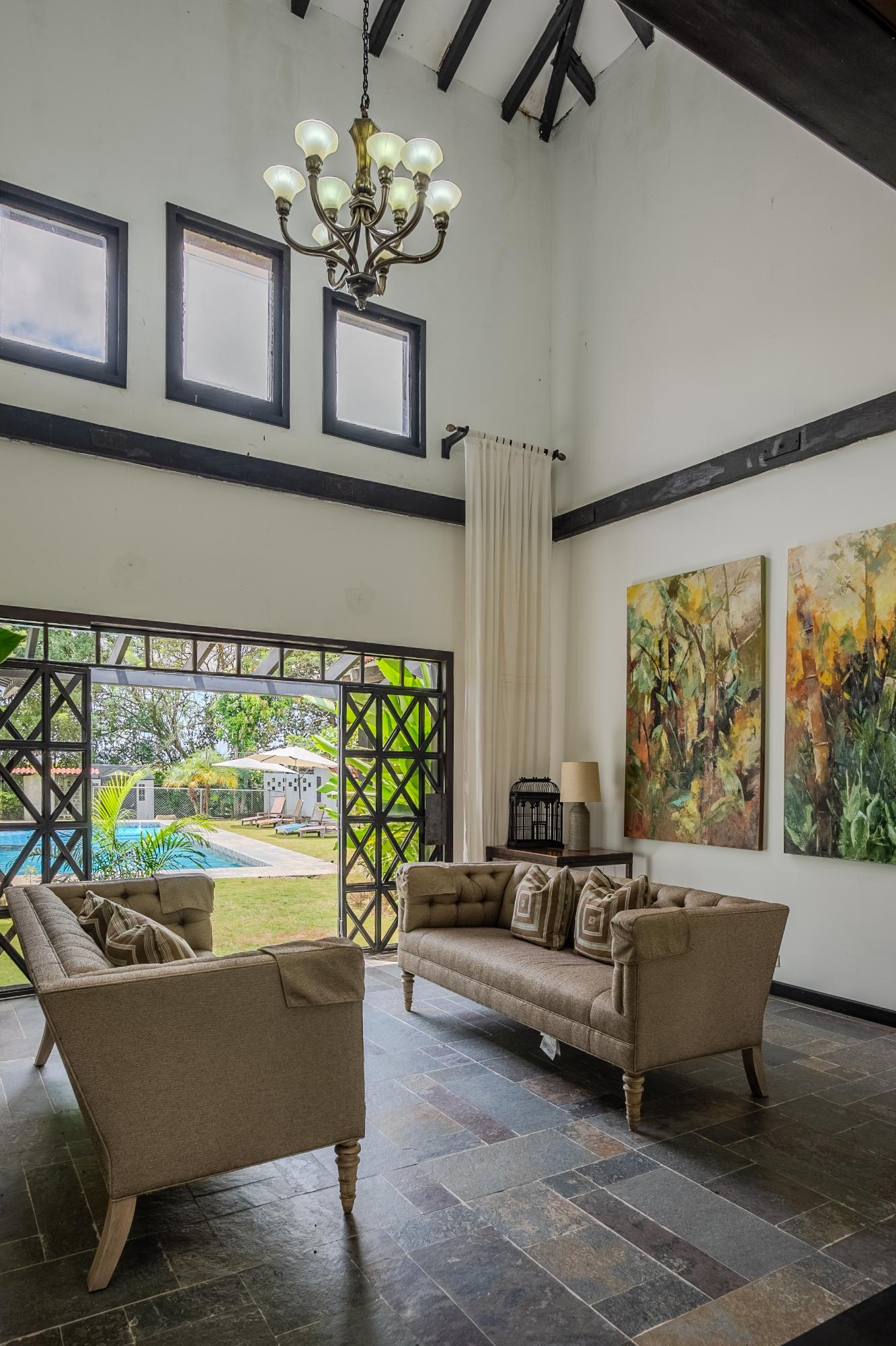 Discover paradise at Finca El Nido, Antón! This incredible property features a main house of 900 m² (9,687.51 ft²) offering 4 bedrooms with en-suite bathrooms, cathedral-style double-height ceilings, a spacious kitchen with double pantries and a double central island with a breakfast bar, a living room, a dining room with a terrace, a family room, an office, and a guest bathroom. The amenities of this estate are first-class, including a refreshing pool, a large terrace for relaxation, a bar perfect for gatherings, and beautiful gardens with a palm tree plantation. Additionally, there is a caretaker's house and a service room, all situated on a lush 46,000 m² (495,140 ft²) lot with a unique inventory of plants and palms. The property also offers 2 covered parking spaces and split air conditioning for added comfort. Located in Antón, Coclé, this estate is a gem that combines the tranquility of a country home with the amenities of a resort. It is ideal as a coastal property, country home, farm for sale, lakefront property, mountain property, ranch, resort, retirement home, timberland property, or as an investment and income source. Don’t miss this unique opportunity to invest in a life surrounded by nature and luxury. Contact us now and secure your piece of paradise!