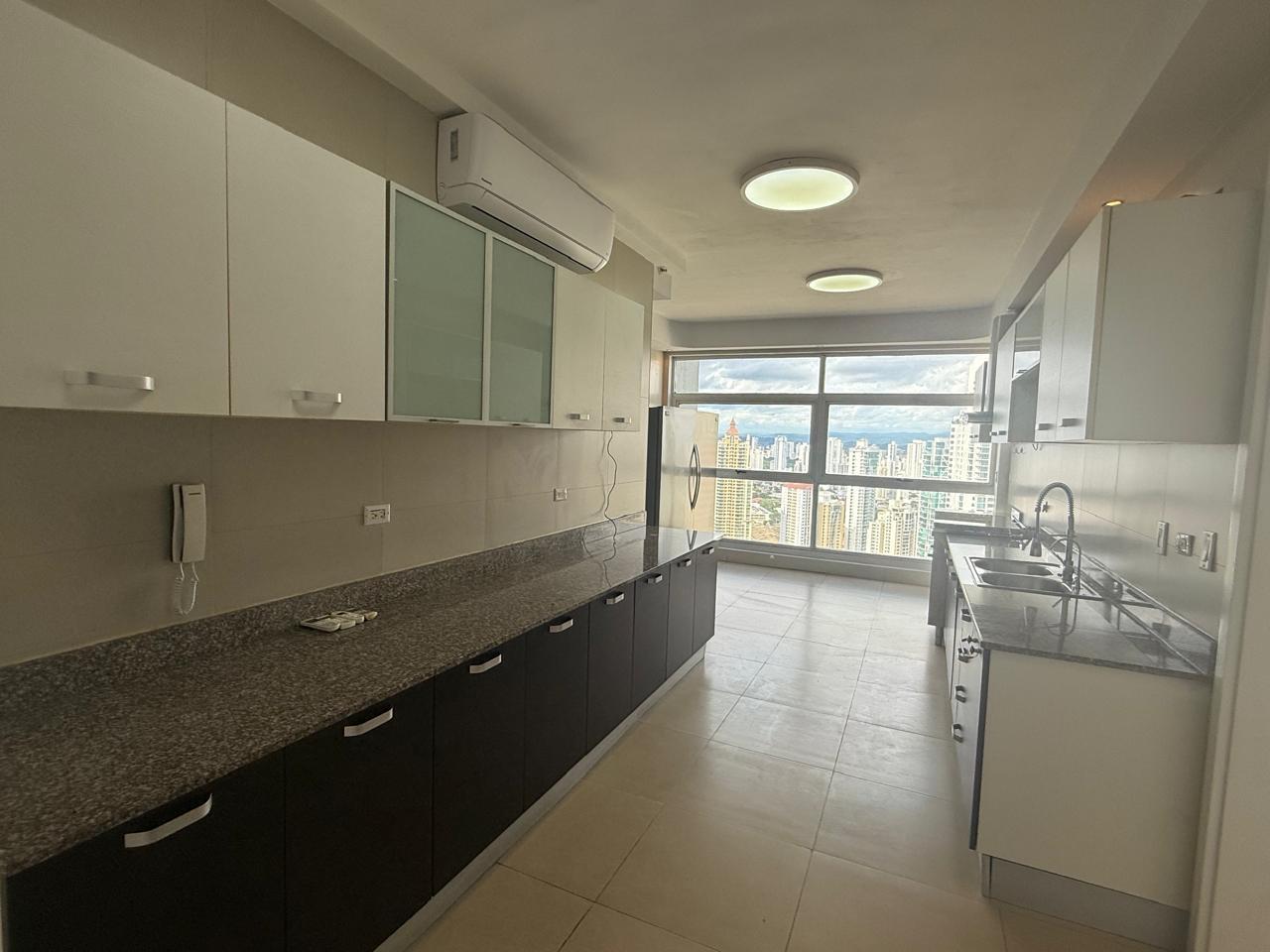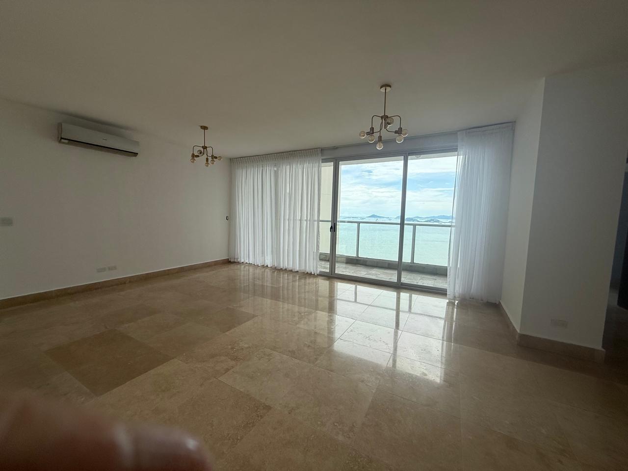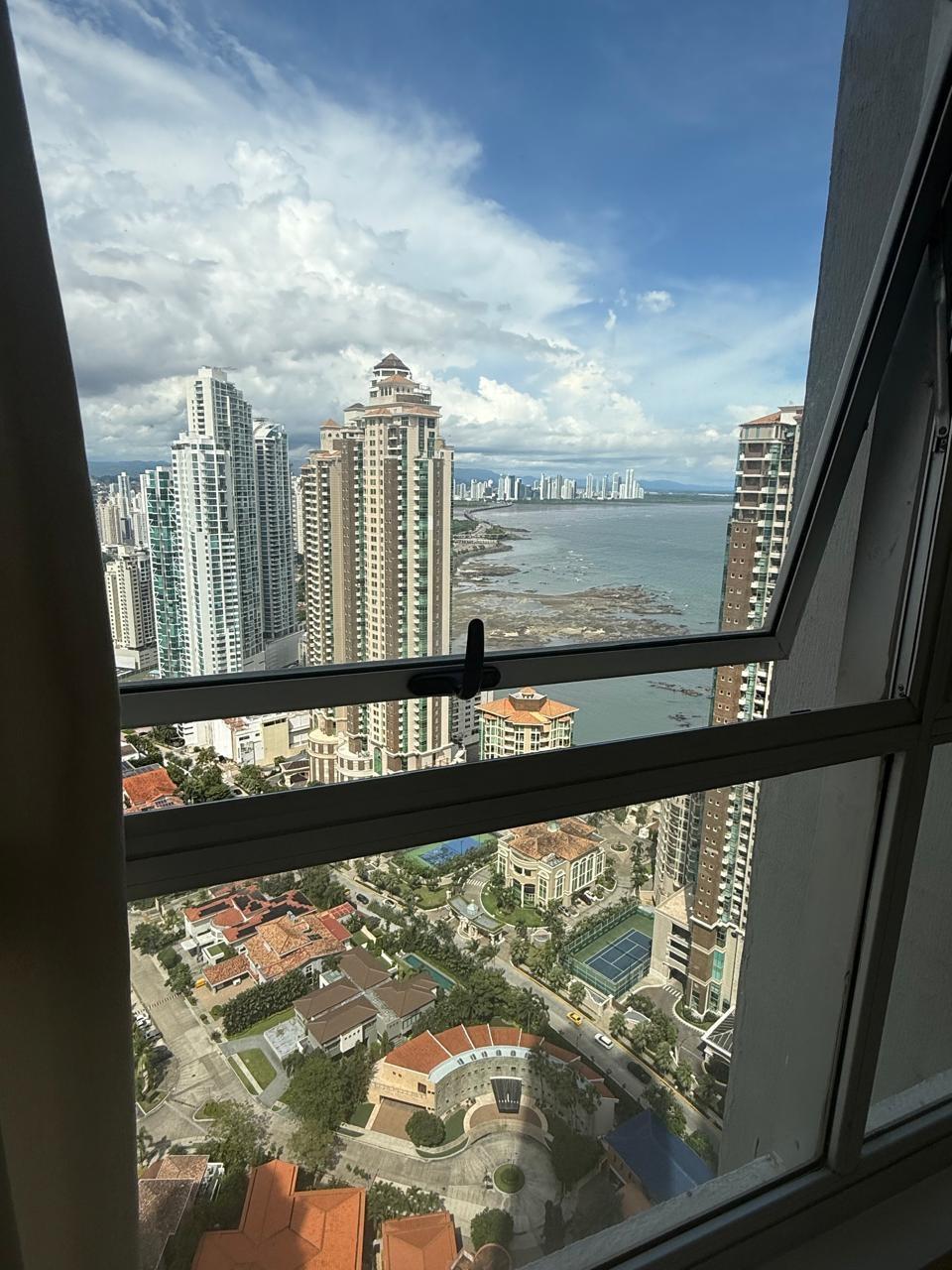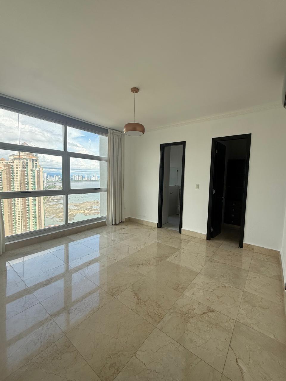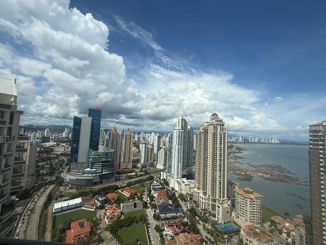 Located on a high floor, this elegant 306 m² apartment offers a luxurious lifestyle with panoramic views of the sea, the city, and the mountains. Its high-quality finishes, such as marble floors, and its spacious layout make it a unique opportunity for those seeking comfort and exclusivity. Apartment features: 3 spacious bedrooms with en-suite bathrooms, 3 full bathrooms + powder room, living room, dining room, balcony, and family room, large closed kitchen with appliances, laundry room, maid's quarters with bathroom, 2 separate entrances to the apartment, 2 parking spaces, appliances included. Q Tower Building: Complete social area with pool, gym, event room, and more. 24/7 security. Prime location in Punta Pacífica, close to shopping centers, hospitals, and main roads.