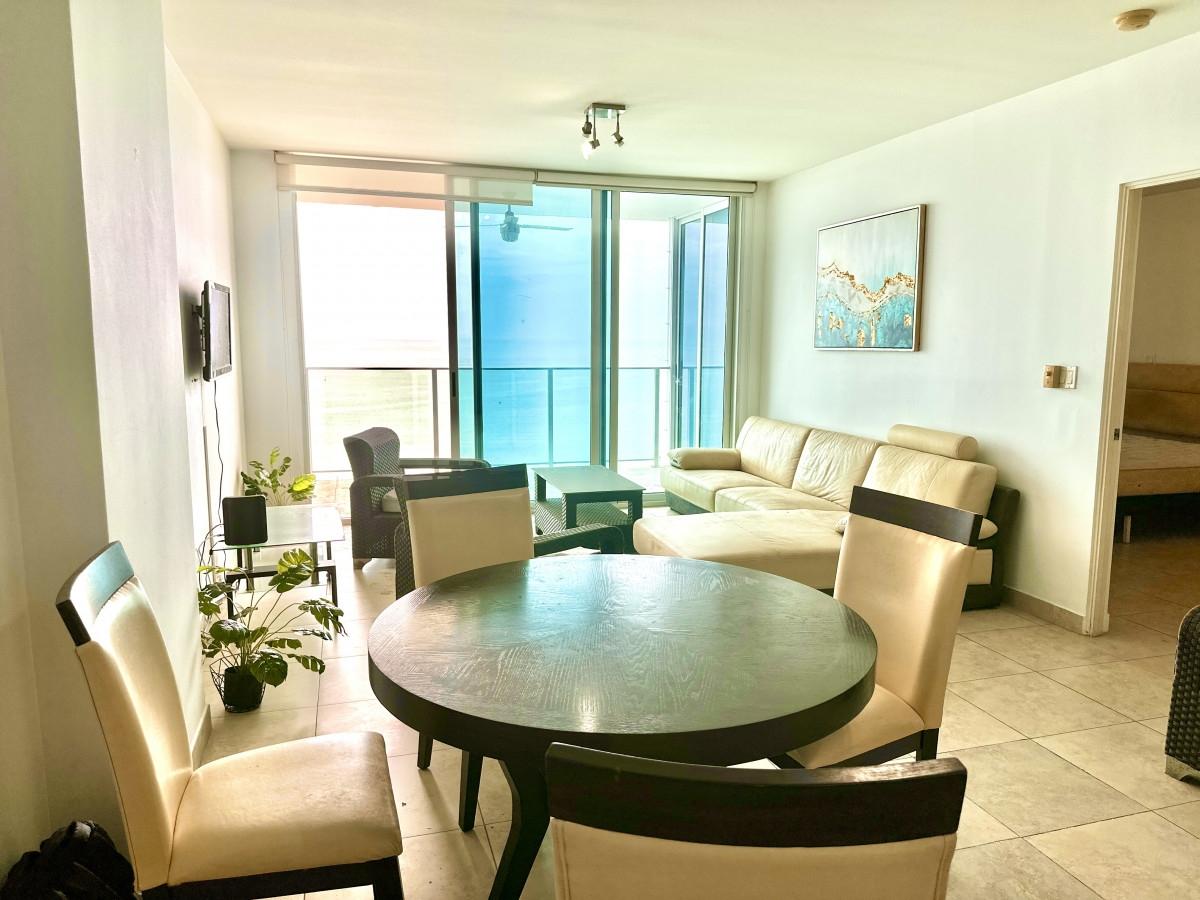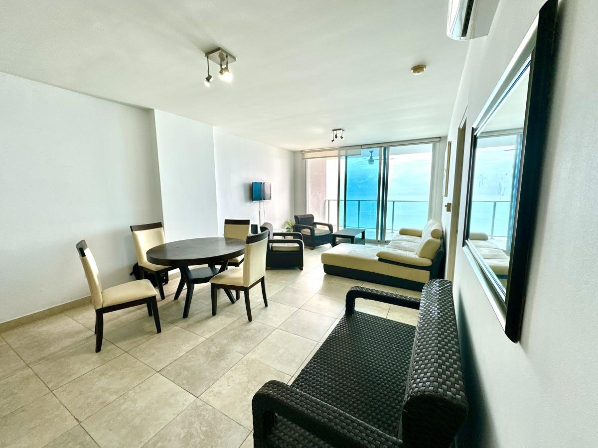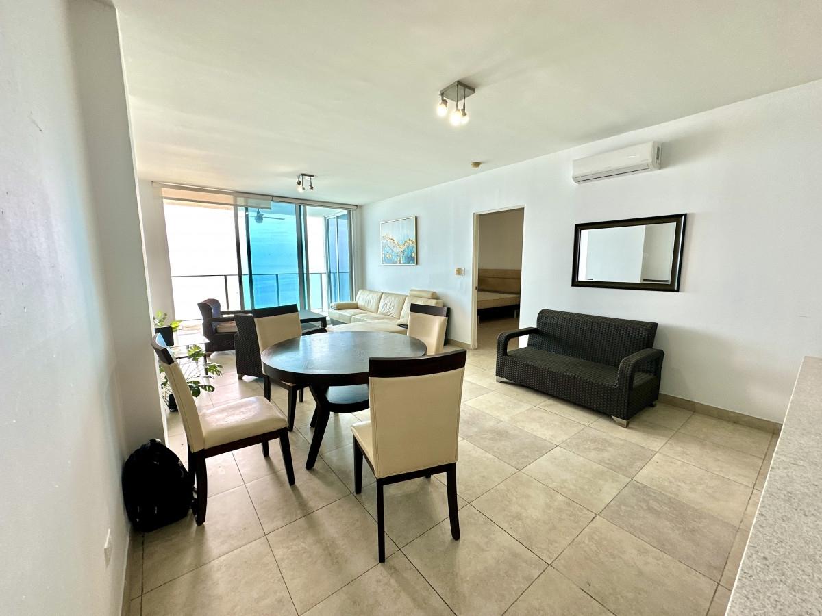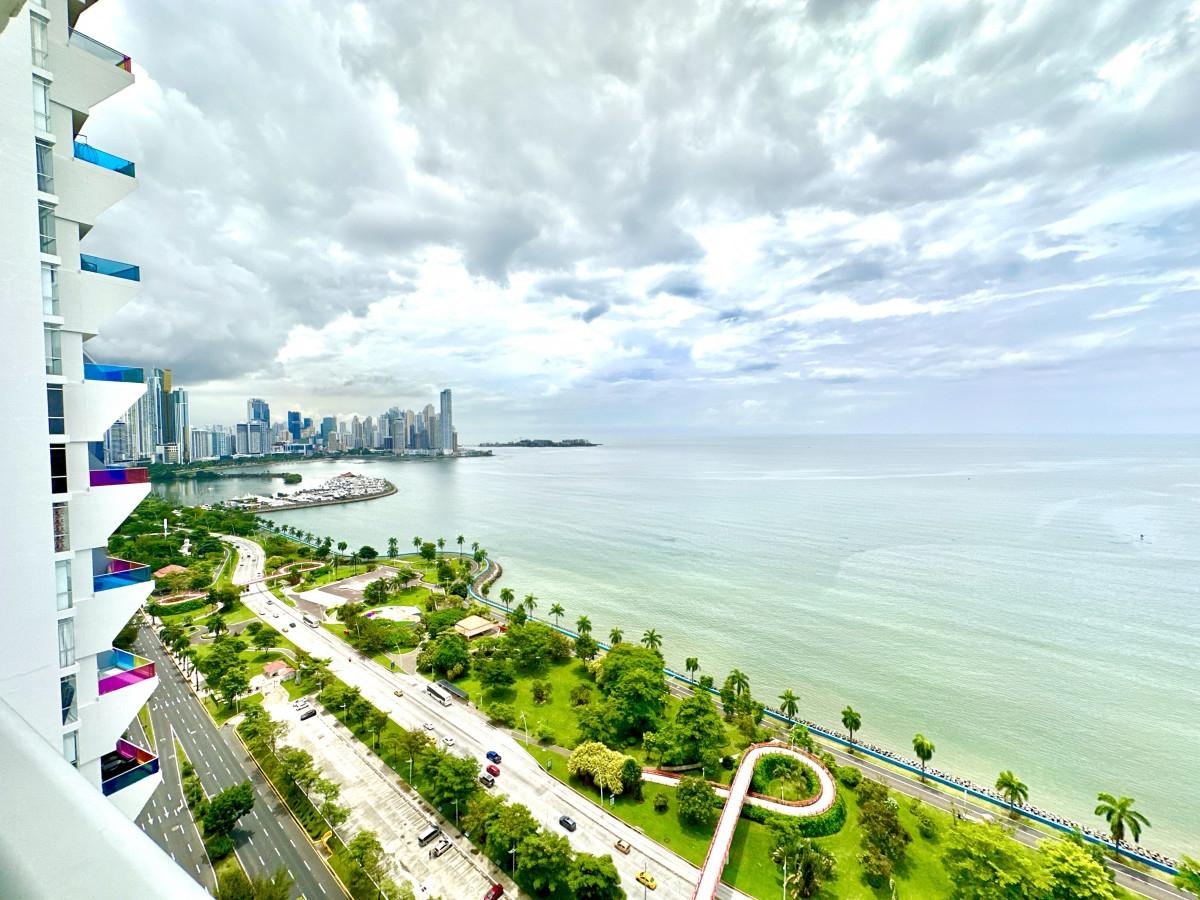 Live with elegance by the sea in this spectacular 101 m² apartment, located on the 30th floor of the prestigious PH H2O On The Ocean, on the iconic Avenida Balboa in Panama City. Key Features: Spacious 1-bedroom with direct ocean view, perfect for waking up every morning to the sound of the sea. Full bathroom plus a guest half-bath. Modern open kitchen integrated with the living area, ideal for entertaining guests or relaxing while enjoying the horizon. Balcony with panoramic ocean view, perfect for sunsets and the refreshing sea breeze. 1 assigned parking space. Amenities and Prime Location: Building with 24-hour security and controlled access. Swimming pool, gym, social area, and well-maintained common spaces. Steps away from the Cinta Costera, with easy access to restaurants, supermarkets, shopping centers, and the city’s main roads. The height of the 30th floor ensures unobstructed ocean views and maximum privacy. Ideal for: Couples or individuals seeking comfort and a stylish lifestyle with breathtaking views. Investors looking for a property with high rental demand for vacation or executive stays.