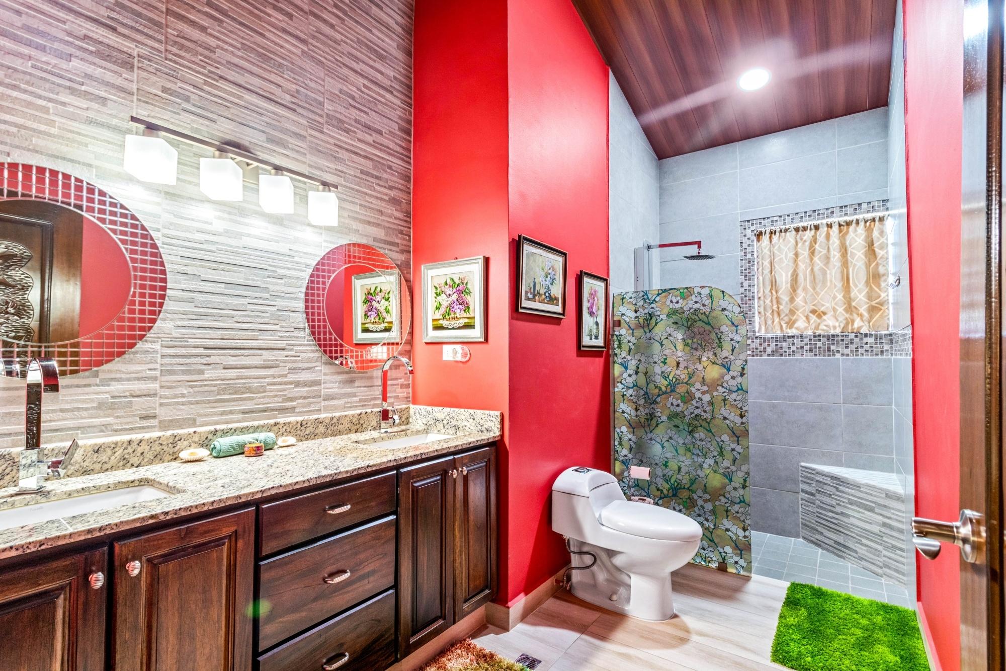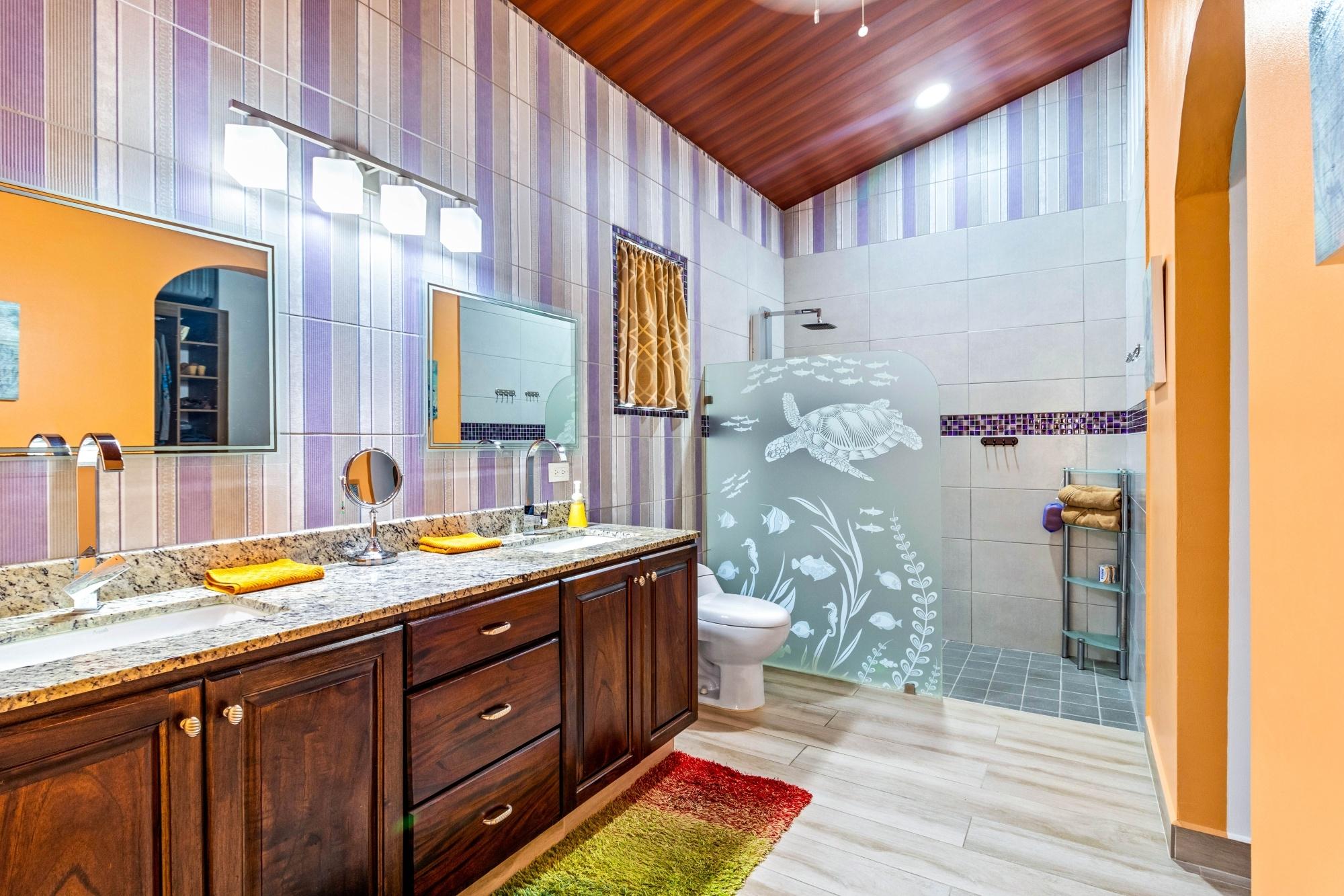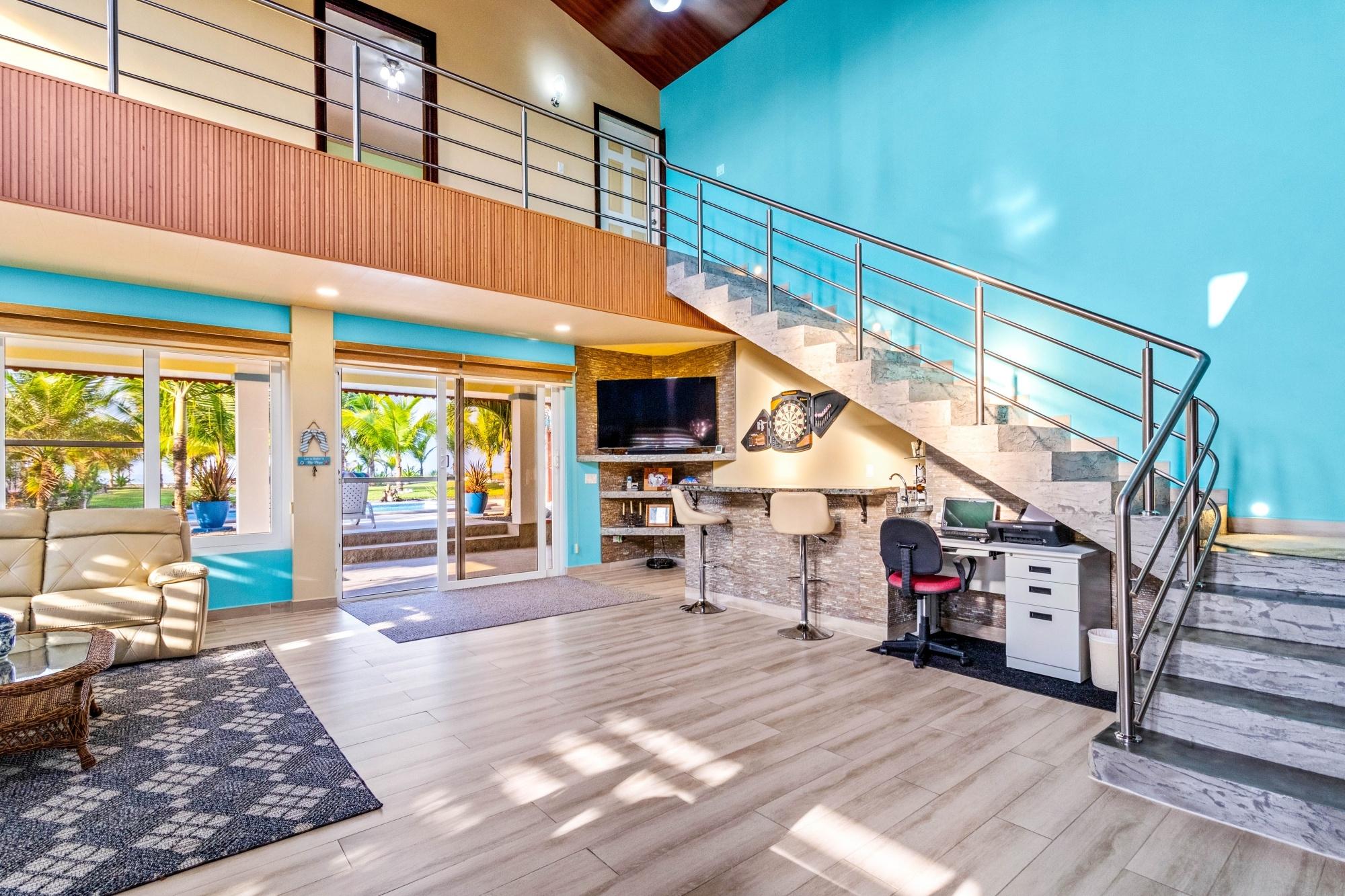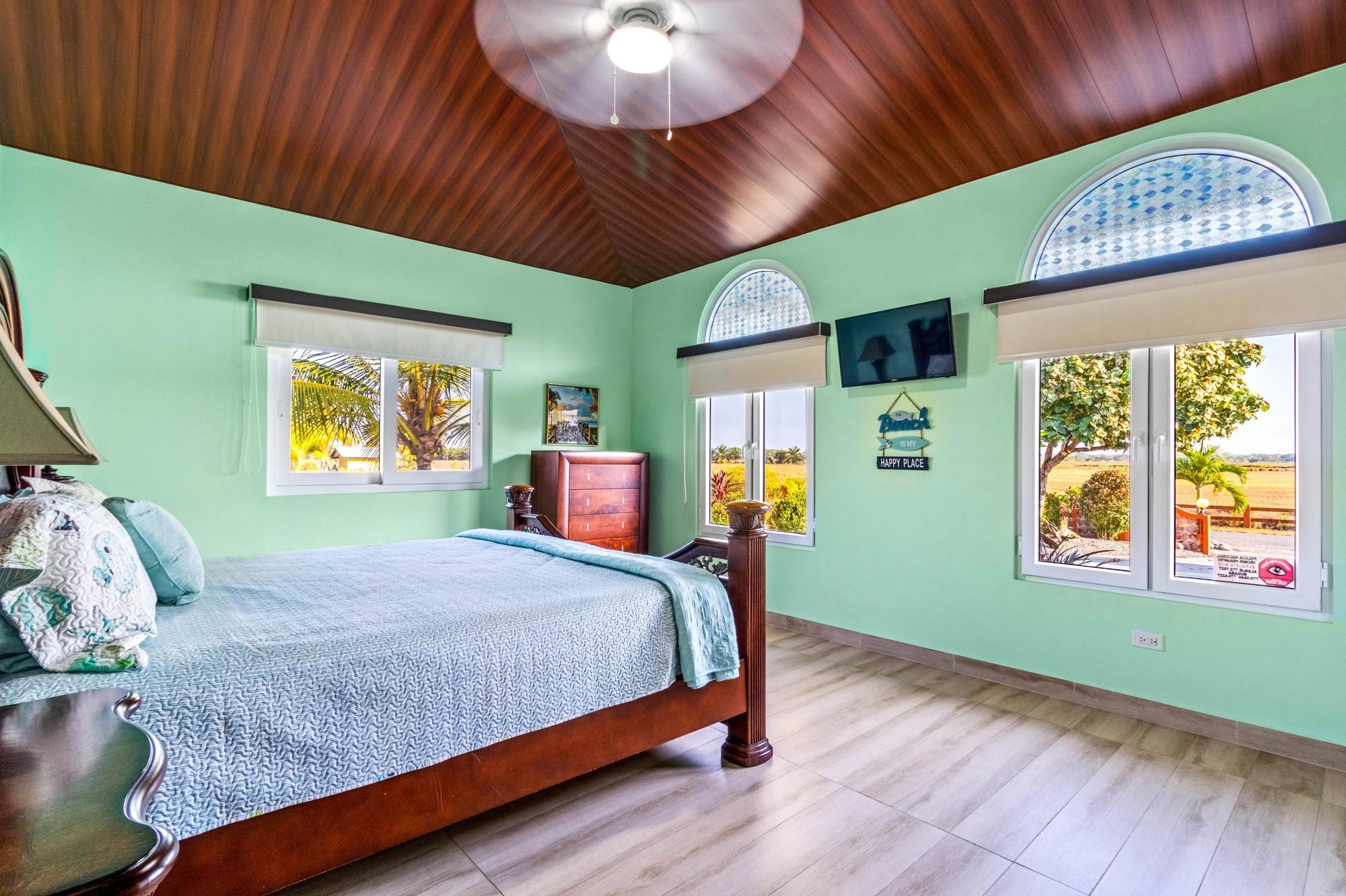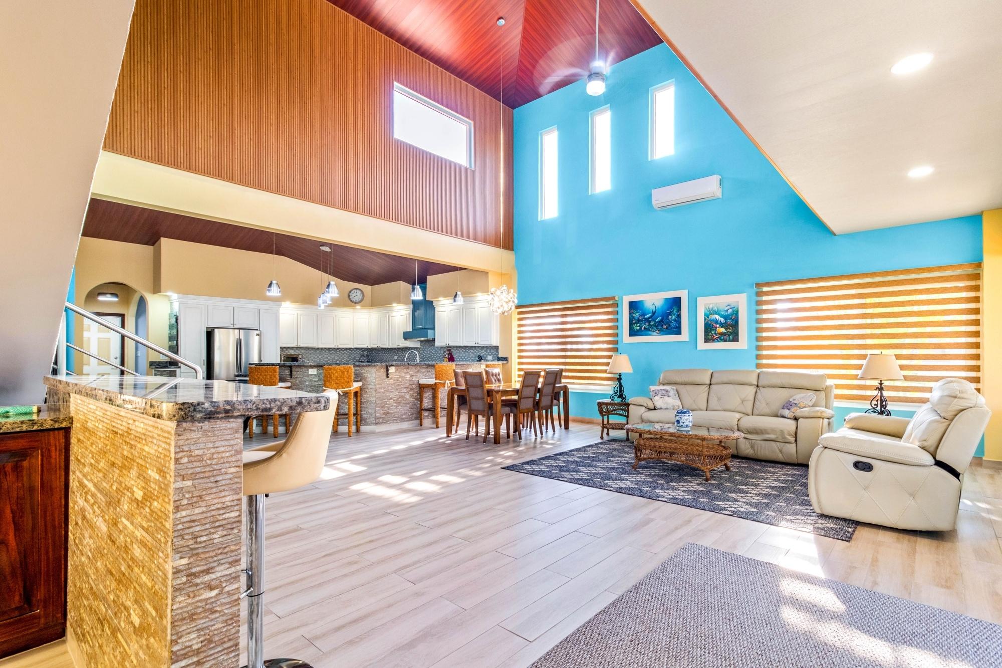 This incredible beach home is on the market for sale. From the minute you see it you know how extraordinary and impressive it is. Right on the Pacific beach of Playa la Barqueta, with a stunning view of both the ocean and the mountain range with Volcan Baru. This home was built in 2017 under the supervision of the owner who made sure everything was done to perfection. No detail over looked. And all top of the line materials, furnishings and appliances. It is a 3 bedroom, 4 bathroom house with open concept kitchen and living area opening to a fantastic patio and pool area taking you down to the beach. This home has Porcelain tiles throughout, arched hand carved cedar and mahogany doors, german hardware on the window for smooth operation. PVC ceilings and plenty of electrical outlets and very well lite. When you walk through the secure decorative front door you are in awe of this tastefully designed and decorated home. It is modern and comfortable. The kitchen is large with plenty of storage, all made out of cedar, granite counter tops, a centre island with a sink and a large walk in pantry. This home is open concept and perfect for entertaining, with a wet bar and entertainment area. Also on the main floor you will find the sizeable primary bedroom with an ensuite bathroom and walk in closet. The view from this room is amazing and it has sliding doors that allow you to walk out to the patio and pool area. The ensuite bathroom has double sink and granite counters. All the shower stall partitions in this home have cute underwater motifs and installed with massage showers.