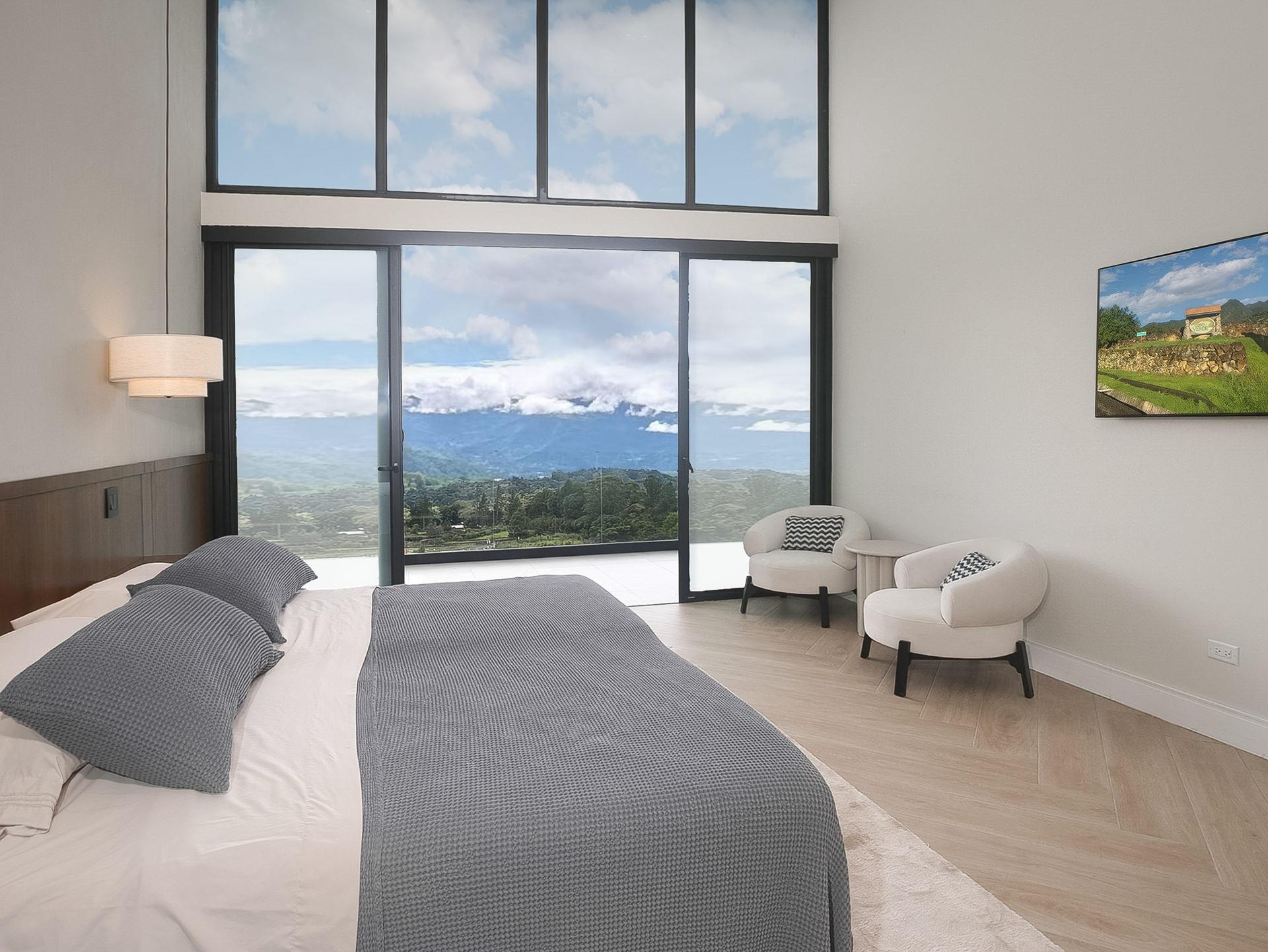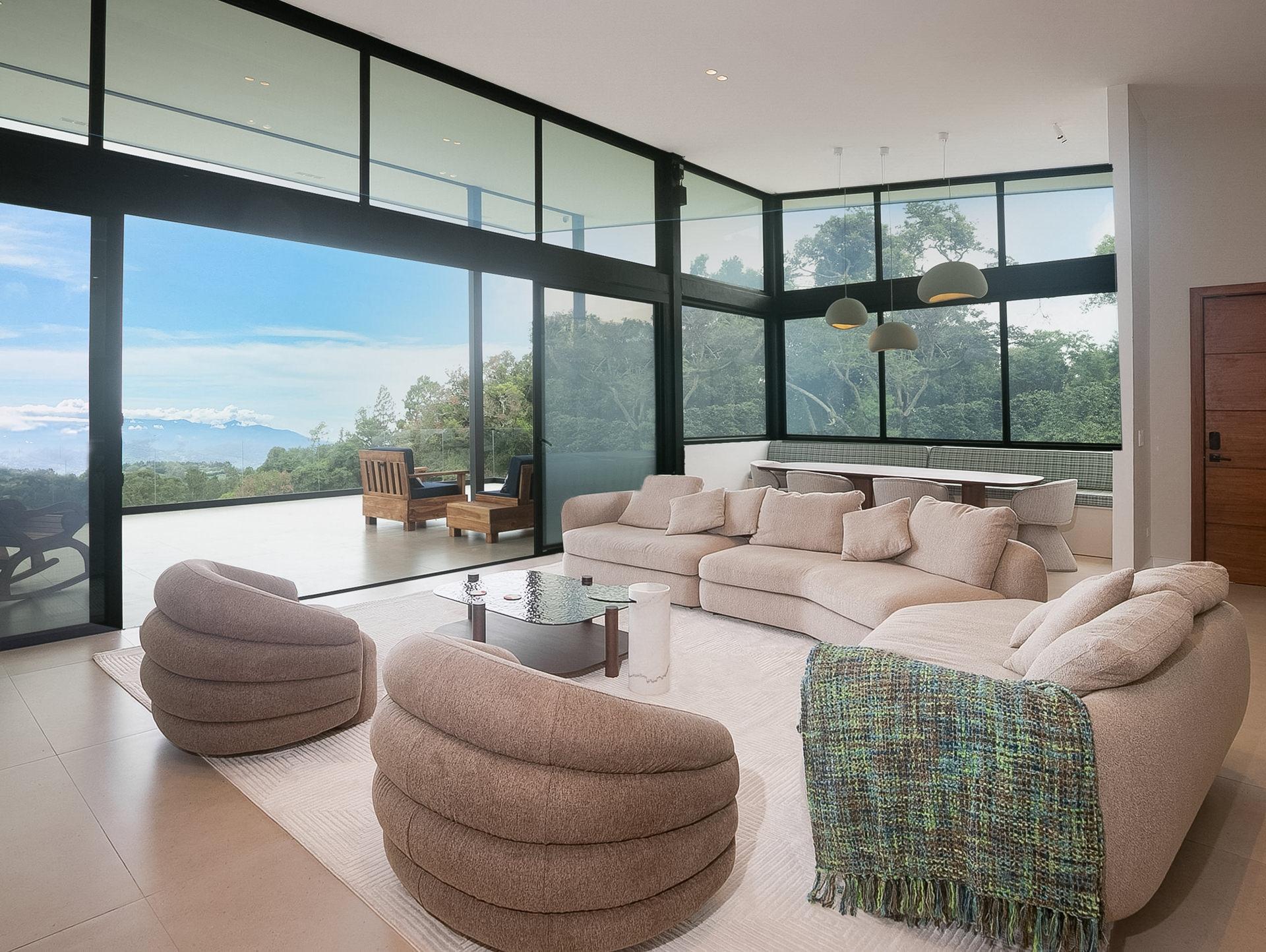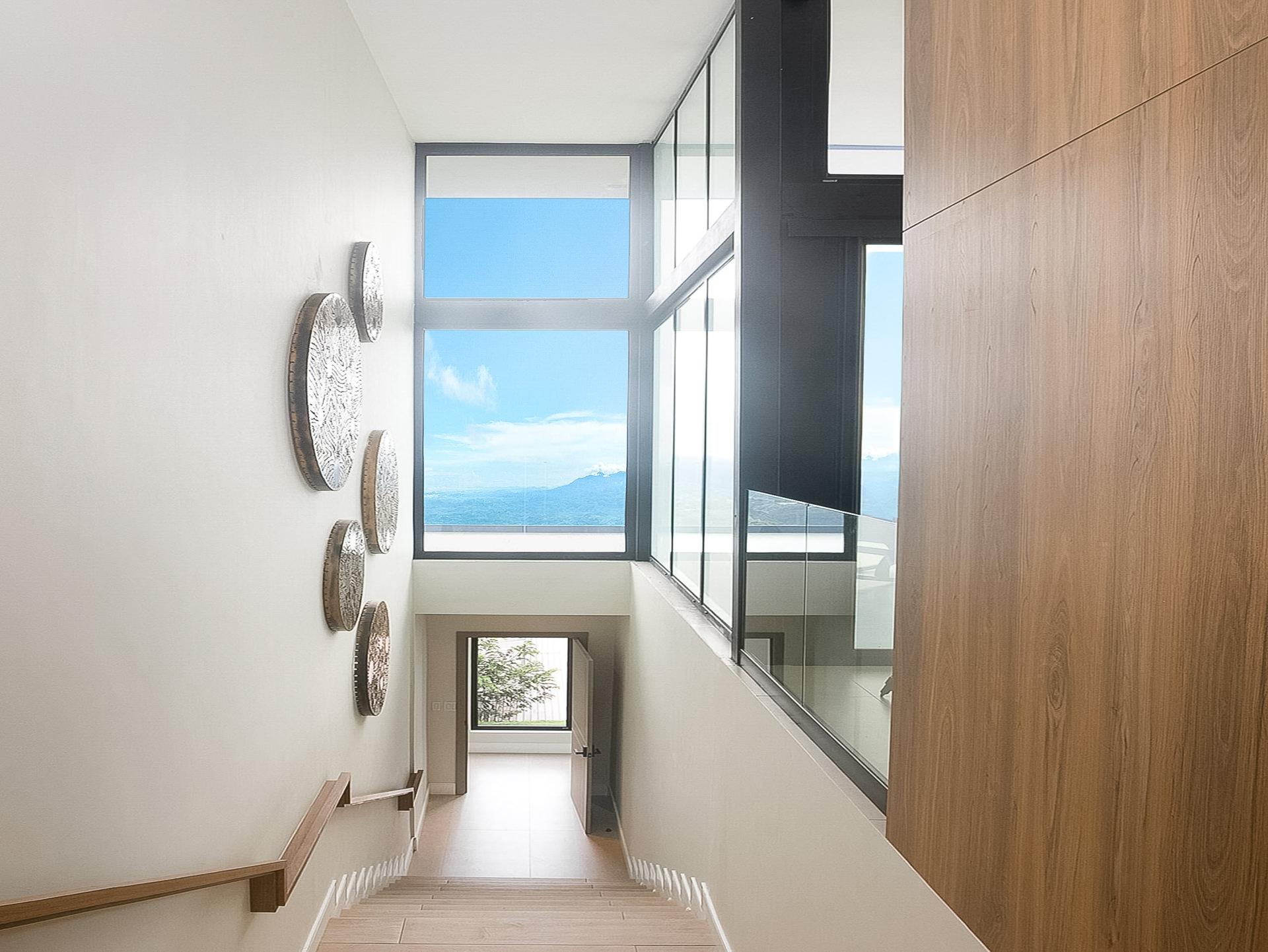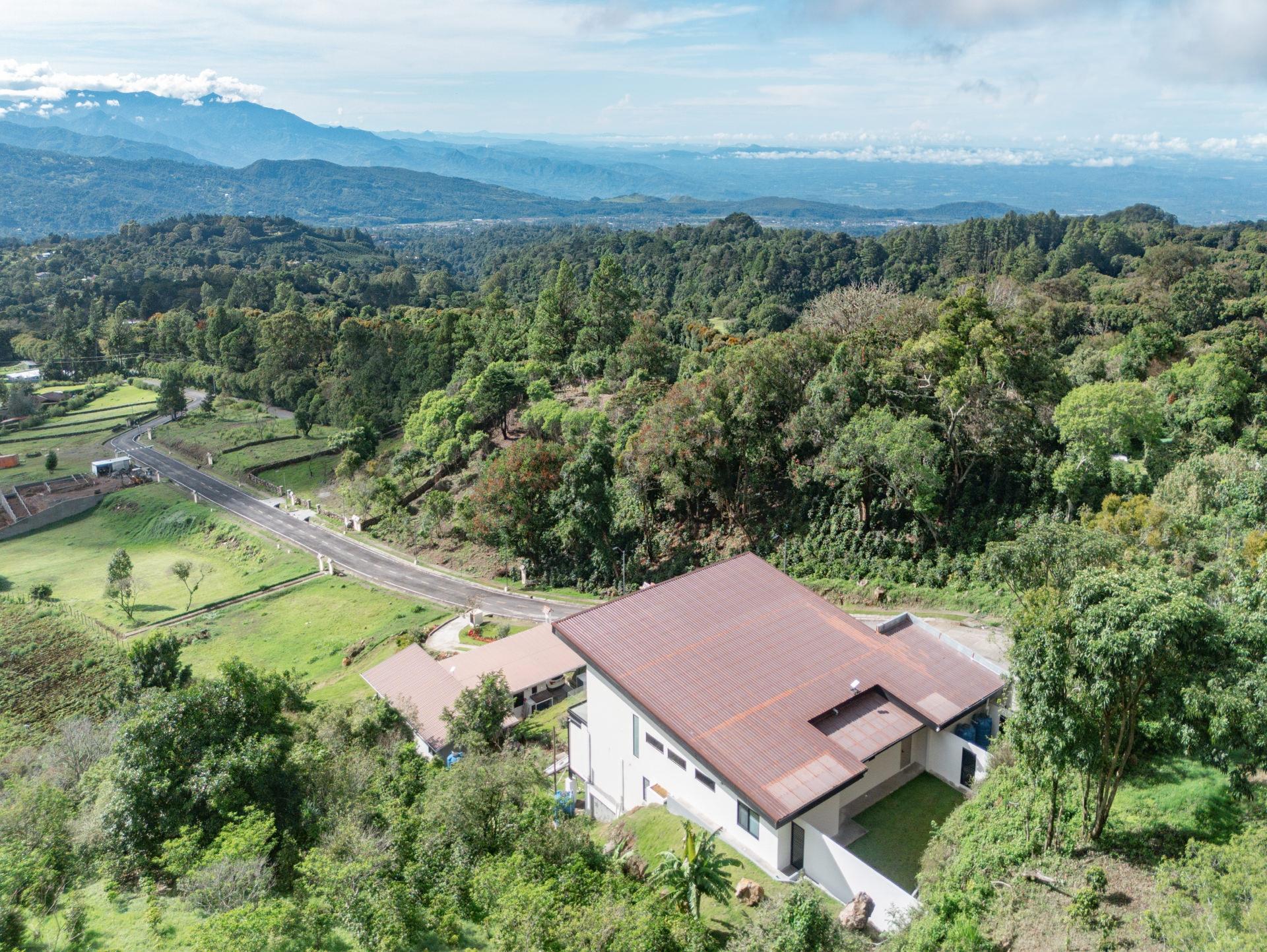 Perched in an upscale enclave in Volcancito, this contemporary home redefines mountain living. Newly constructed in 2025, this custom residence offers sweeping, unobstructed views of Boquete’s dramatic mountain landscape. With 324.5 m² of thoughtfully designed interior space and expansive tiled decks, the home captures the grandeur of the surrounding scenery from nearly every room. Walls of floor-to-ceiling glass let the outdoors in while maintaining a sleek and modern aesthetic. Step inside the stunning open-concept floor plan anchored by a high-end graphite-gray custom kitchen that is both functional and a designer’s dream. A generous walk-in pantry and laundry connect directly to the garage, adding smart flow and convenience. The showstopping primary suite features soaring vaulted ceilings and a tiled terrace to take in the views. The spa-like ensuite bathroom boasts integrated sinks, water closet, and a curbless zero-entry rain shower. Another upstairs bedroom easily doubles as a home office, complete with a built-in desk and adjacent full bath. Designed for flexibility, the lower level includes a fully self-contained lock-off apartment with its own entrance and is ideal for guests, rental income, or multigenerational living. The home is loaded with high-tech and redundant infrastructure. Every detail throughout the home speaks to high-end comfort and innovation. Outside, the yard is beautifully landscaped and fully irrigated. And your pet will thoroughly enjoy the fully walled backyard. Set within a peaceful, established neighbourhood just 10 minutes to downtown Boquete, this home is a lifestyle of thoughtful luxury, unmatched