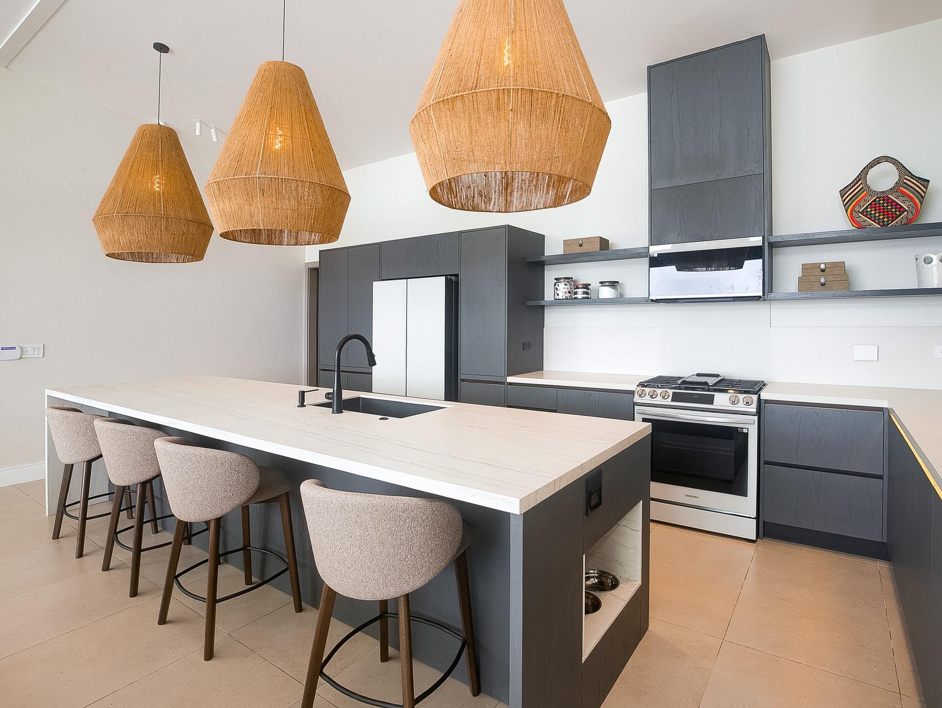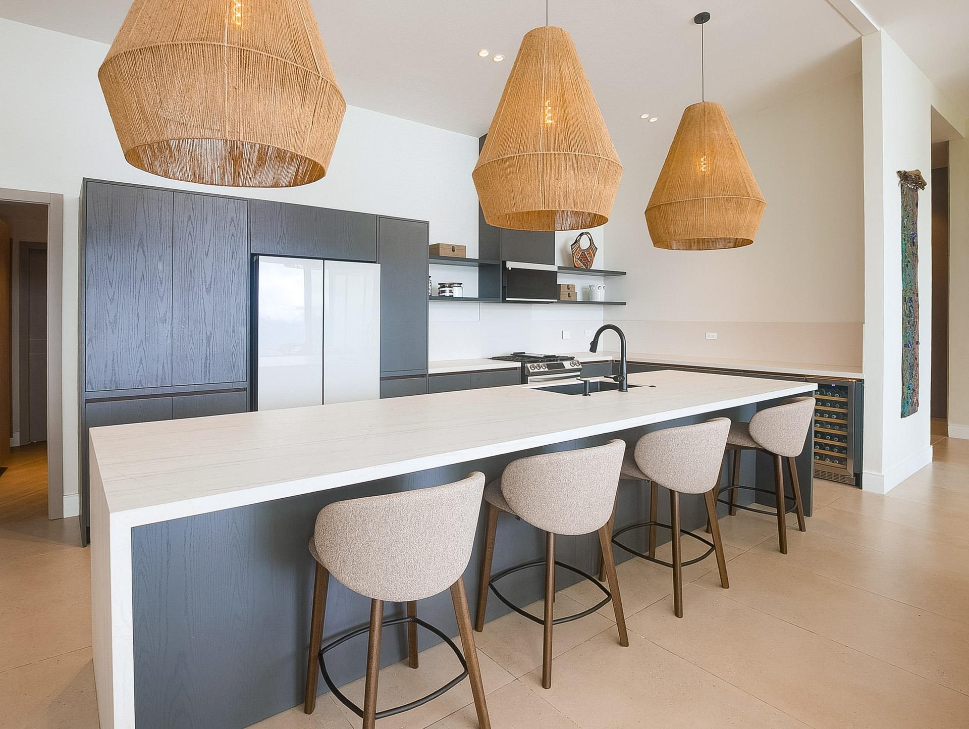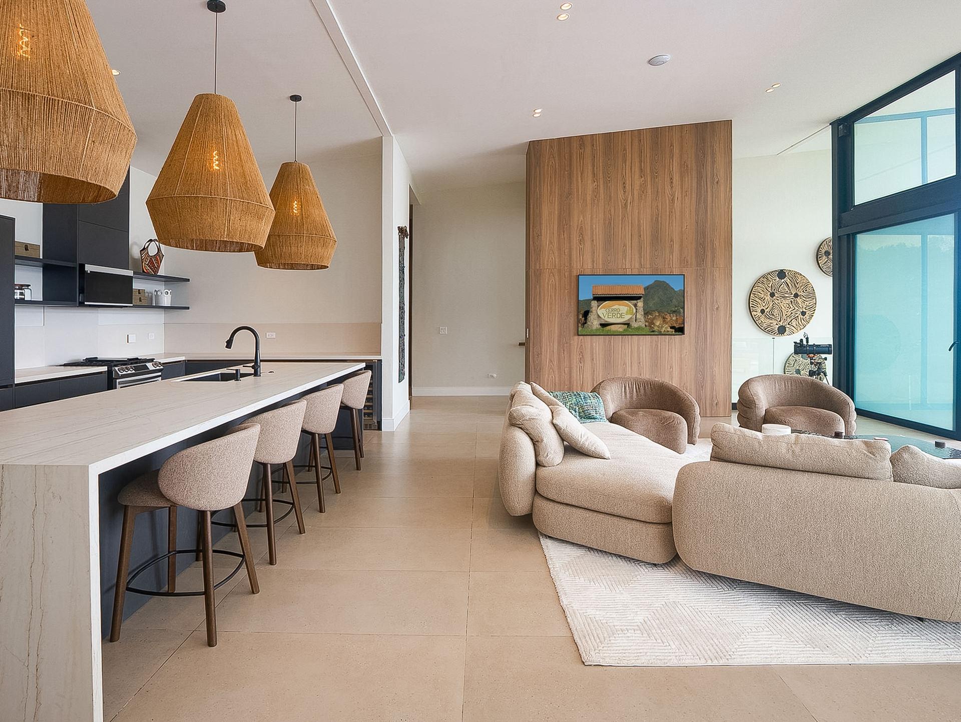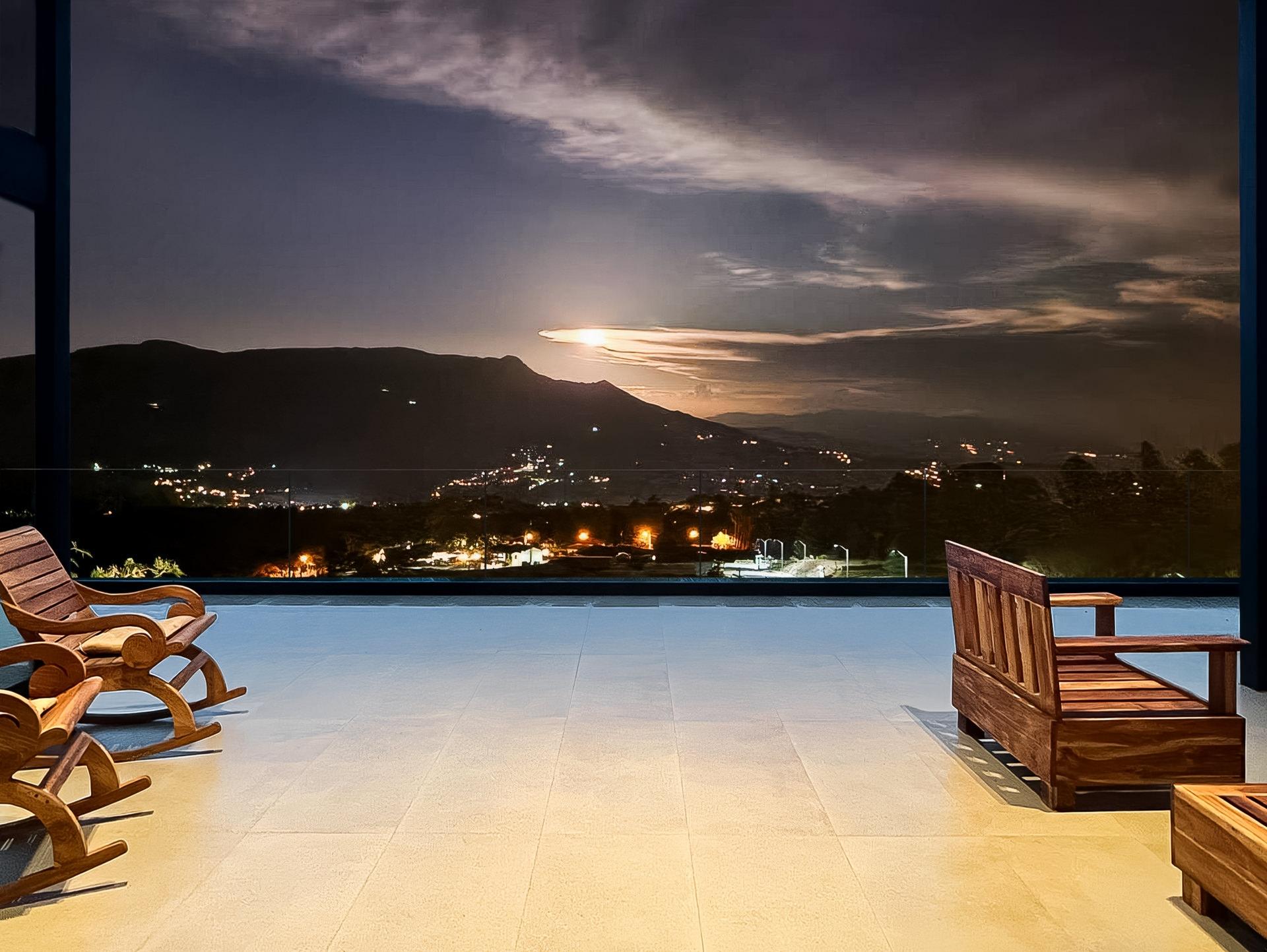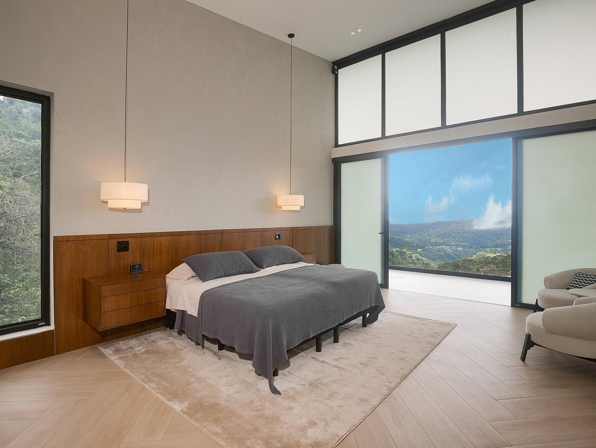 Perched in an upscale enclave in Volcancito, this contemporary home redefines mountain living. Newly constructed in 2025, this custom residence offers sweeping, unobstructed views of Boquete’s dramatic mountain landscape. With 324.5 m² of thoughtfully designed interior space and expansive tiled decks, the home captures the grandeur of the surrounding scenery from nearly every room. Walls of floor-to-ceiling glass let the outdoors in while maintaining a sleek and modern aesthetic. Step inside the stunning open-concept floor plan anchored by a high-end graphite-gray custom kitchen that is both functional and a designer’s dream. A generous walk-in pantry and laundry connect directly to the garage, adding smart flow and convenience. The showstopping primary suite features soaring vaulted ceilings and a tiled terrace to take in the views. The spa-like ensuite bathroom boasts integrated sinks, water closet, and a curbless zero-entry rain shower. Another upstairs bedroom easily doubles as a home office, complete with a built-in desk and adjacent full bath. Designed for flexibility, the lower level includes a fully self-contained lock-off apartment with its own entrance and is ideal for guests, rental income, or multigenerational living. The home is loaded with high-tech and redundant infrastructure. Every detail throughout the home speaks to high-end comfort and innovation. Outside, the yard is beautifully landscaped and fully irrigated. And your pet will thoroughly enjoy the fully walled backyard. Set within a peaceful, established neighbourhood just 10 minutes to downtown Boquete, this home is a lifestyle of thoughtful luxury, unmatched