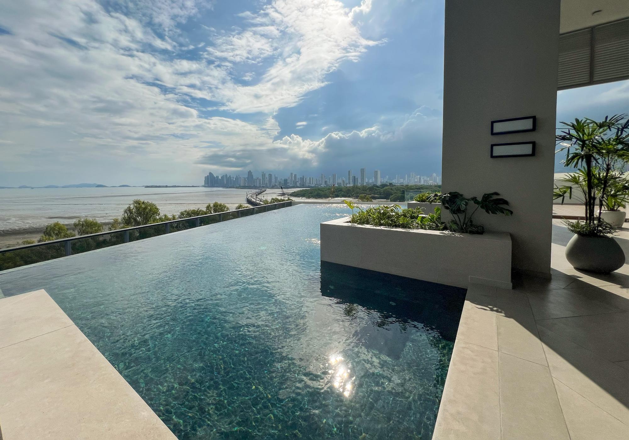 Welcome to a masterpiece of contemporary luxury at Upper East Tower, where the ocean meets the sky in perfect harmony. This 443 m² fully furnished residence offers an open-concept living and dining area that extends onto an expansive ocean-view terrace, perfect for witnessing the breathtaking sunrise over the Panama Bay. Designed for comfort and elegance, this four-bedroom home features ensuite bathrooms, a private family room, and exquisite finishes throughout. The state-of-the-art open kitchen, seamlessly integrated into the social area, is equipped with top-tier appliances for a refined culinary experience. Residents enjoy private elevator access, high ceilings, and floor-to-ceiling windows that flood the space with natural light. The tower provides resort-style amenities, including an oceanfront pool, curated art spaces, and a vibrant market area, creating an unparalleled lifestyle in Costa del Este’s most prestigious address.