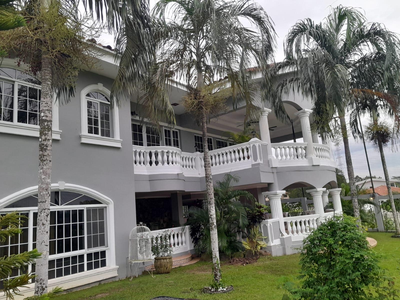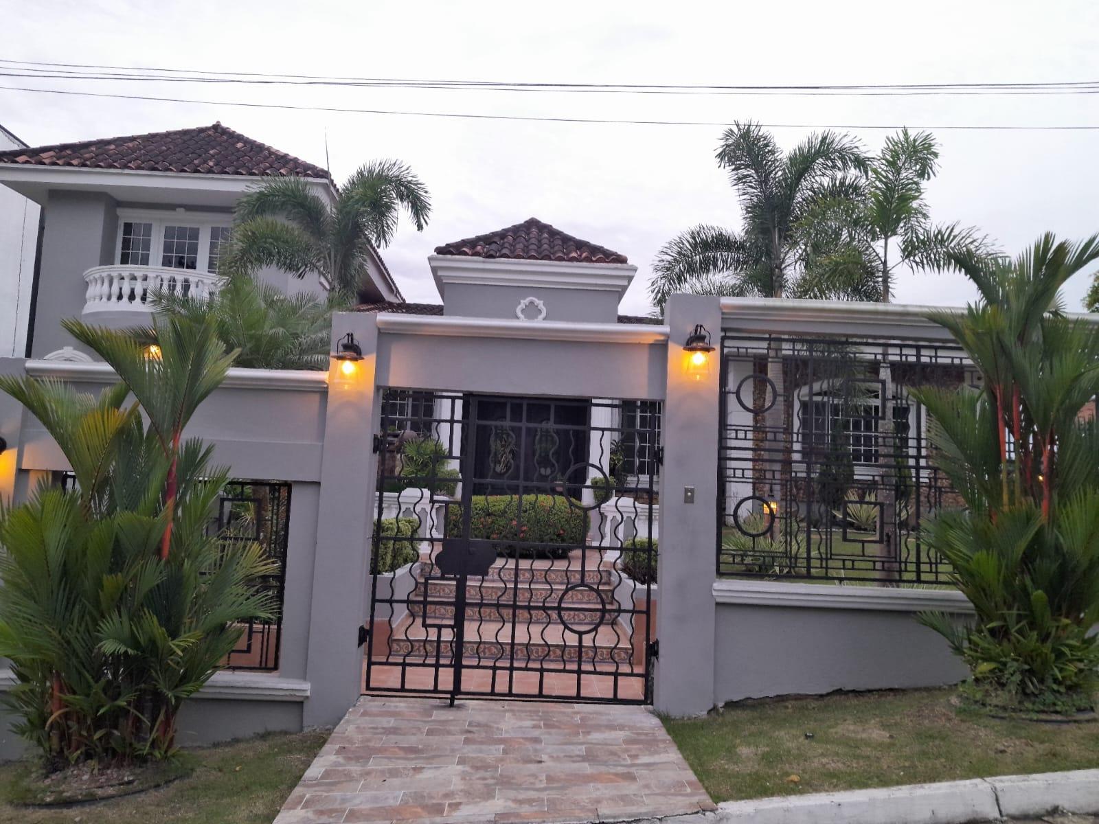Live in luxury at the prestigious Panama Golf Club. This exceptional three-level residence offers the perfect blend of elegance, comfort, and privacy, all within one of the most exclusive residential communities in Panama. With 7 spacious bedrooms with en-suite bathrooms, this home is designed to accommodate both family living and entertaining with style. The main level features lush gardens, a stunning fountain with lighting, an open terrace, a formal dining room for 12 guests, a large living room, and a gourmet kitchen with island, breakfast nook, pantry, wine cooler, and high-end appliances. The master suite includes a hydro-massage jacuzzi, private balcony, and walk-in closet. Ideal for social gatherings, the home boasts a covered outdoor terrace with bar for up to 80 guests, a game room with billiards, beautiful landscaped gardens, and a secure concrete perimeter wall with electric gates. Additional features include a private office with full bath, maid’s quarters with kitchen, interior laundry, storage rooms, a mechanical room for the central A/C system, and parking for 5 vehicles. The property is fully equipped with luxury lighting, split and central air conditioning, gypsum ceilings, and classic red clay roof tiles. If you seek a sophisticated lifestyle surrounded by nature, security, and exclusivity—this is your next home.
