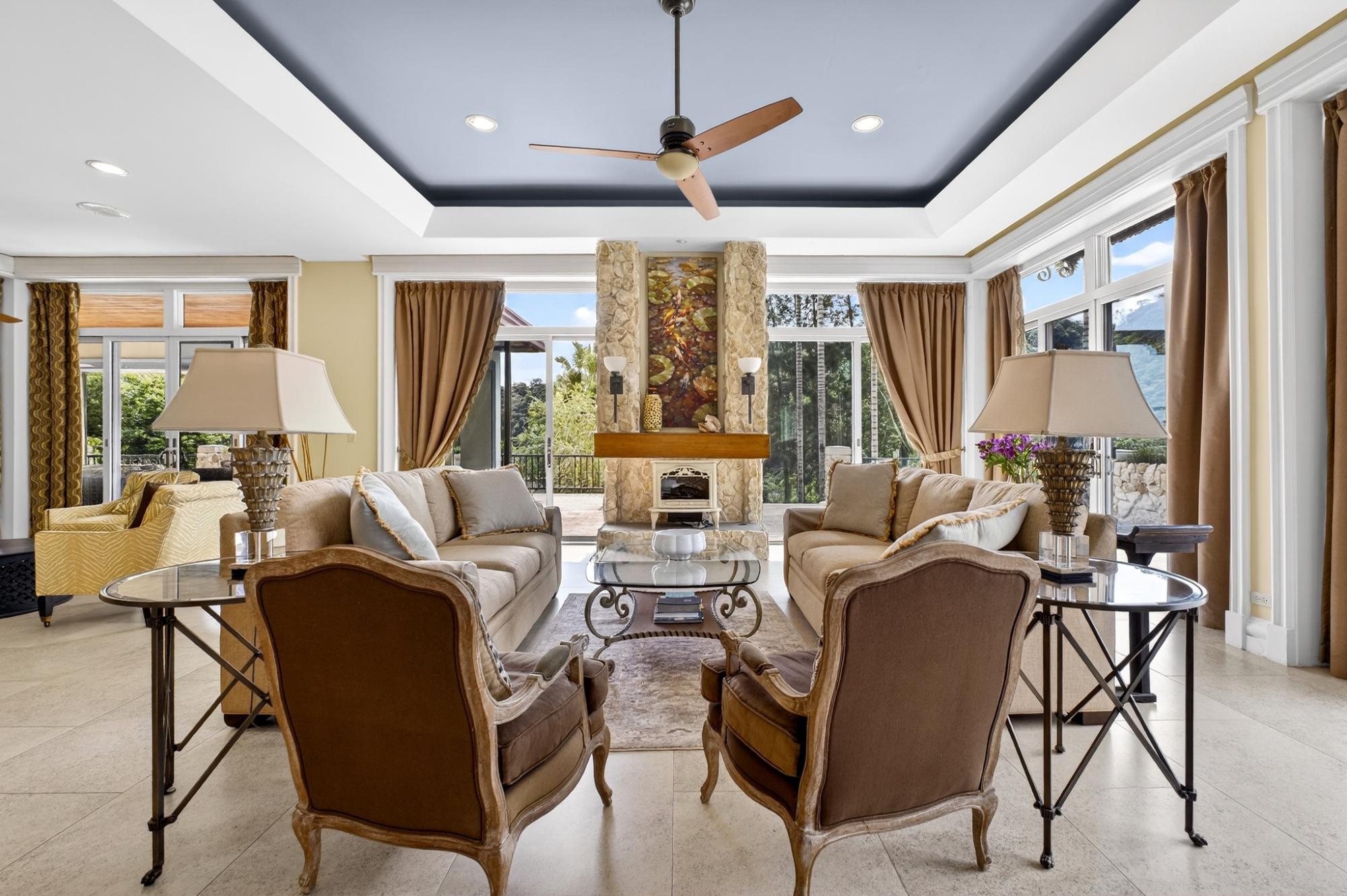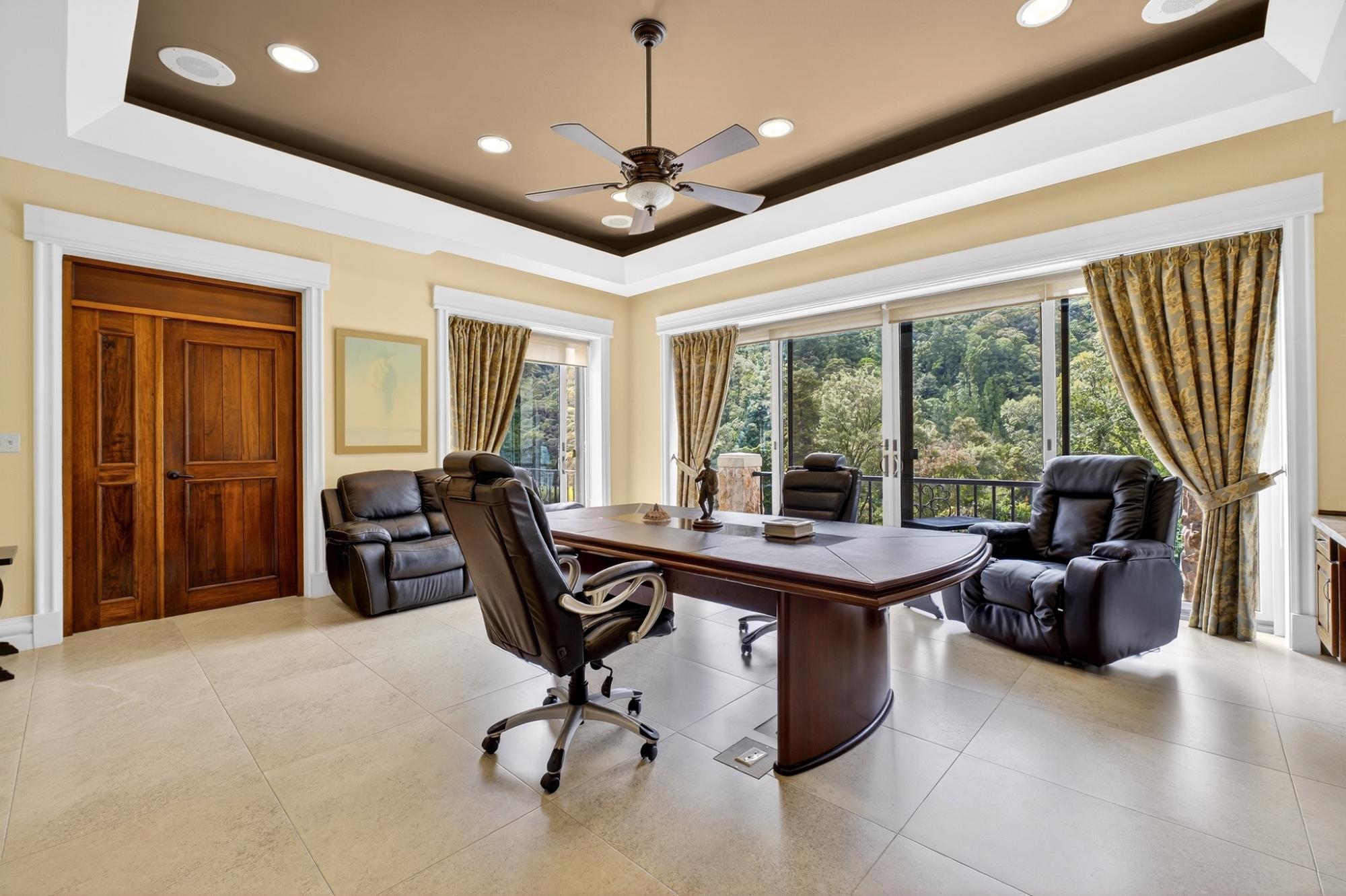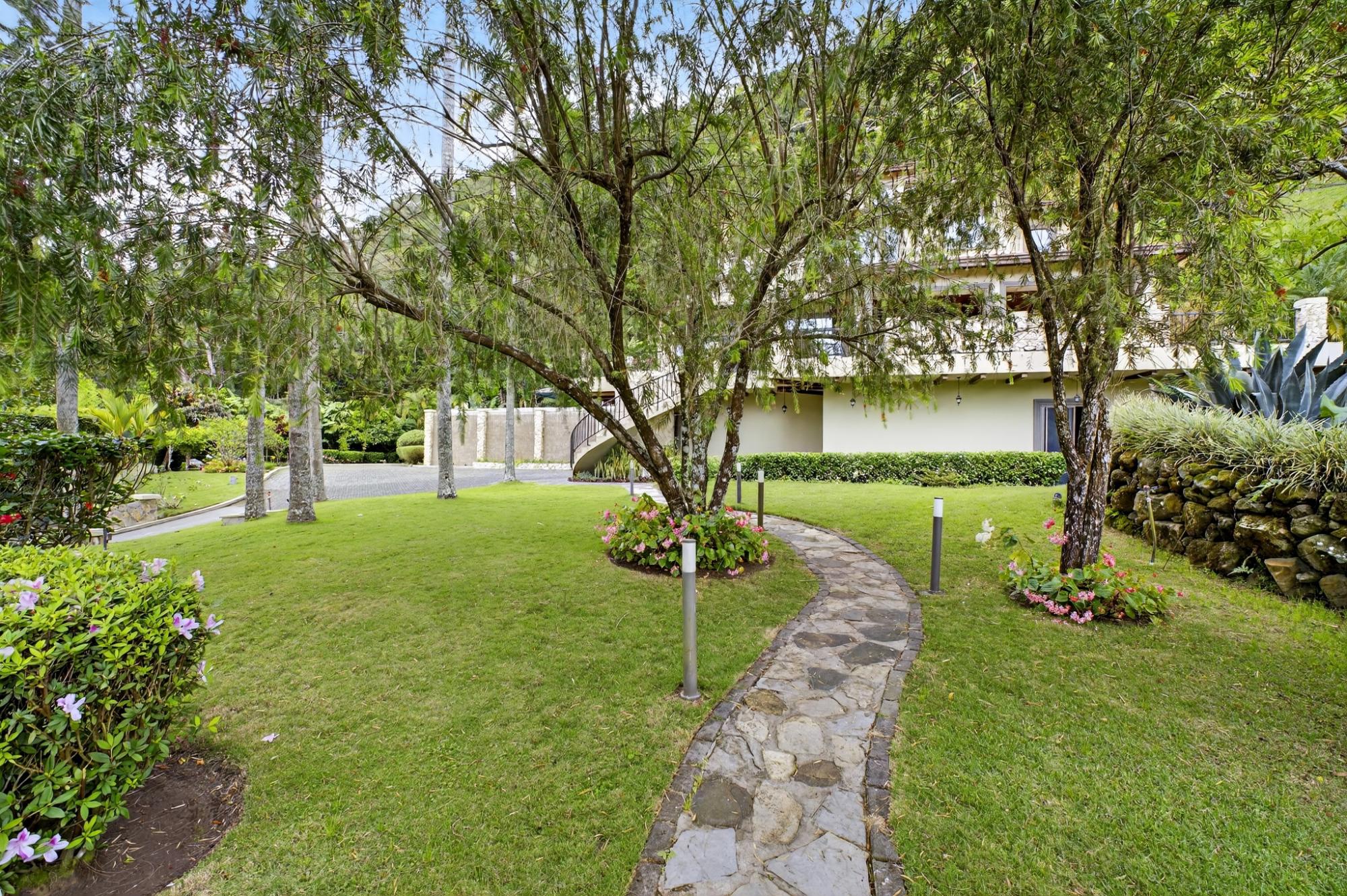 One of a kind luxurious mansion in Valle Escondido Boquete is positioned at the highest point of the valley set against mountainside. This private Estate home offers the perfect luxury and comfortable single family or corporate retreat experience with plenty of space for privacy. Enjoy comfortable year round temperatures in this unique mansion while viewing the sunset from a private balcony of the 4th level terrace and during summer time feel free to swim in it's amazing private infinity swimming pool. This unique Estate comes fully furnished with 7 bedrooms, of which 3 are Master Suites accompanied by 9 full bathrooms & 2 half-baths. A built in elevator provides easy access to all 4 stories. Host your guests in any of the 3 on site guest houses.The estate is equipped with full time, triple gate security and camera system that will provide high end security. Step out onto one of the many endless balconies and view the lush forest and enjoy the tranquility with your friends and family while admiring its luxurious architecture design and enjoy one of the 2 outdoor fireplaces while taking in the panoramic mountain scenery. Within Valle Escondido, you can experience all there is to offer including amenities such as a golf course, tennis courts and mini golf, a hair salon, spa & wellness center, country
