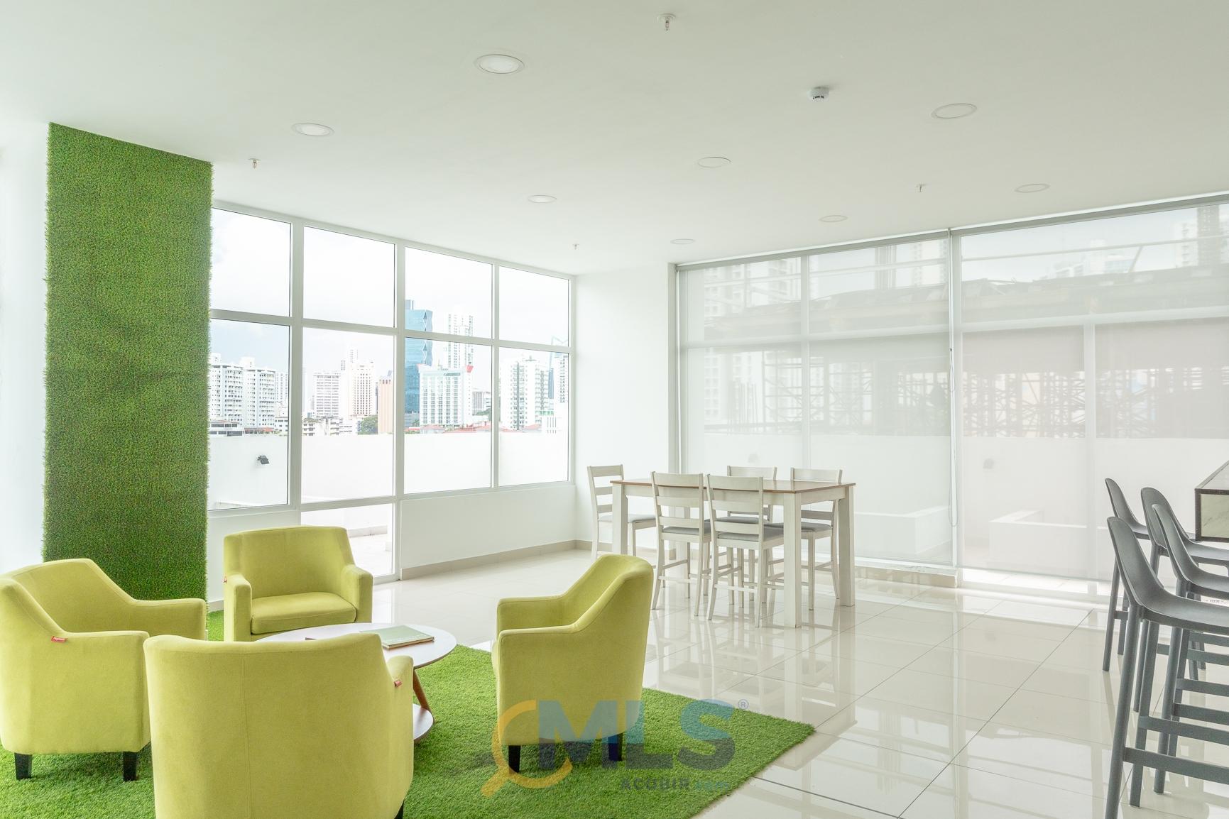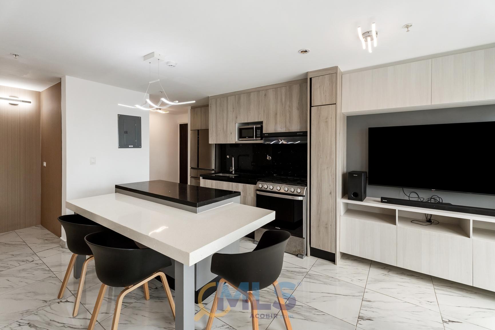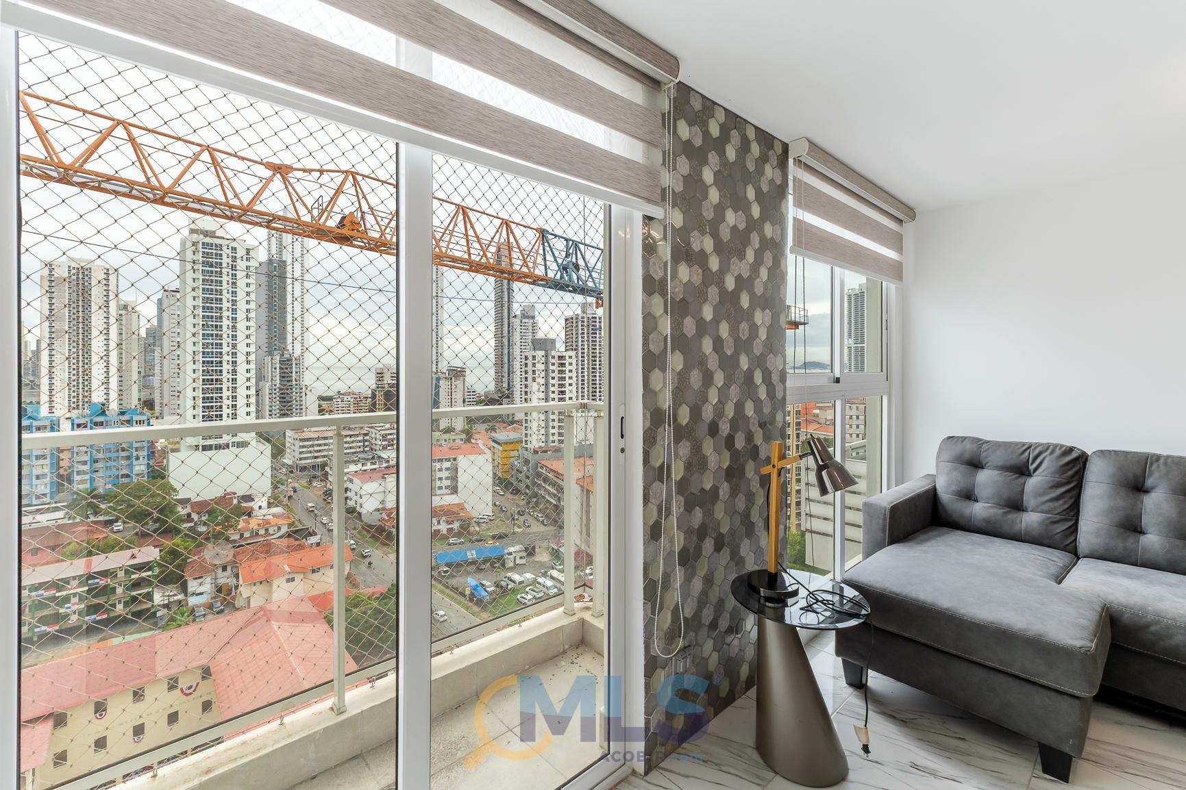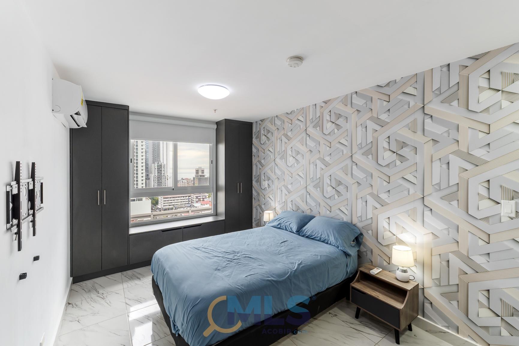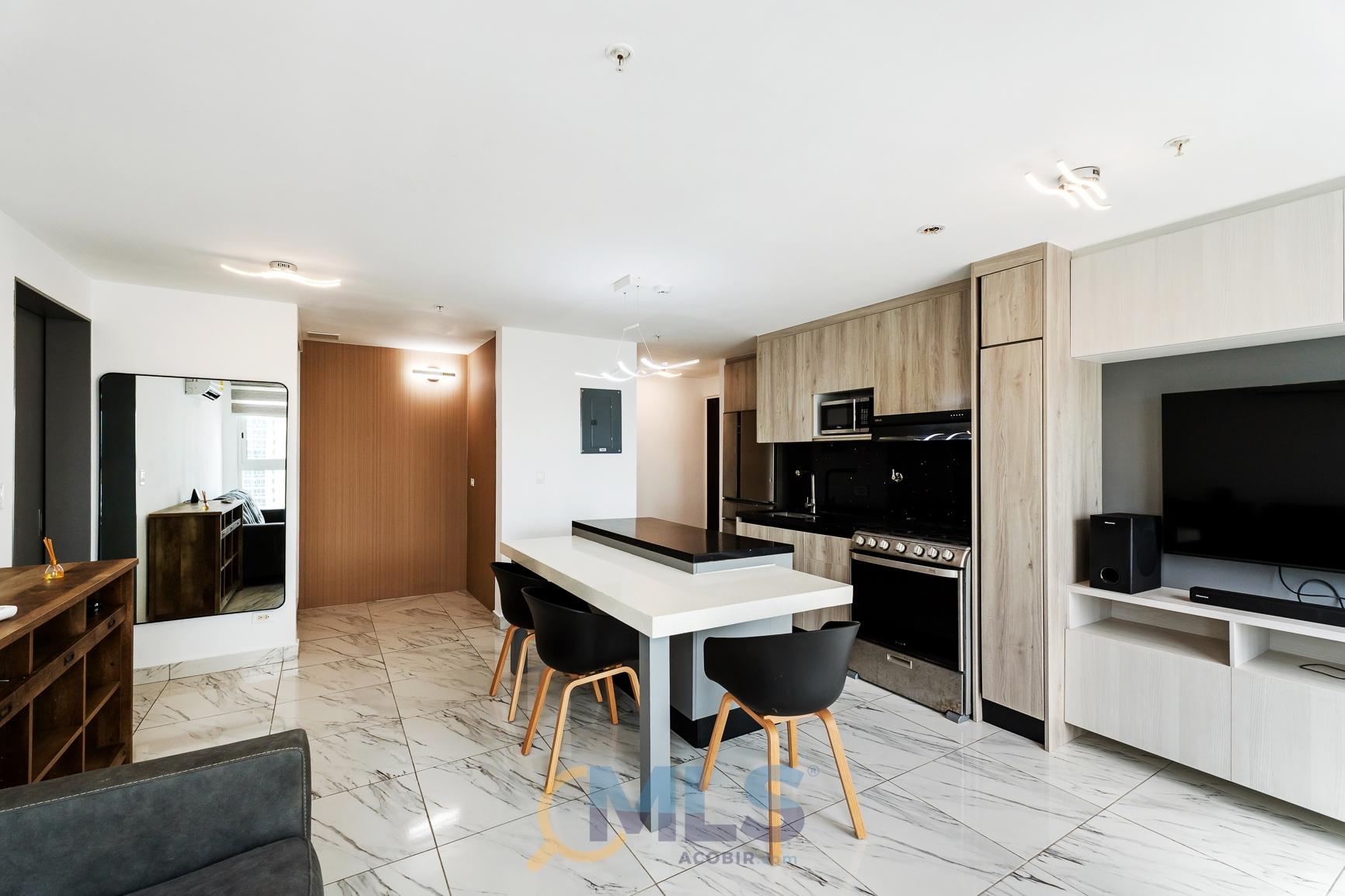 1-bedroom apartment, fully furnished and remodeled, strategically located in Bella Vista, close to metro stations, hospitals, and with easy access to major avenues and point of interest. It features 59 m2 of living space, with one bedroom with two closets and a private bathroom. The living/dining room has a balcony, and the kitchen is integrated with an island that doubles as a dining area. There is also a linen closet, a small office space, and a laundry closet. One parking space is included in the shared pool (not assigned). The PH El Botánico building in Bella Vista, built in 2022, offers a social area with a swimming pool, a co-working space, a children's playground, a BBQ area, and an indoor pet area.