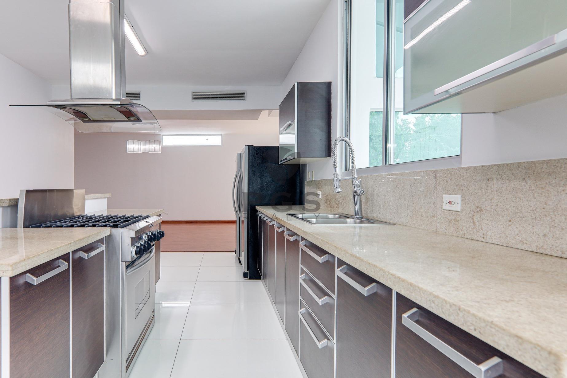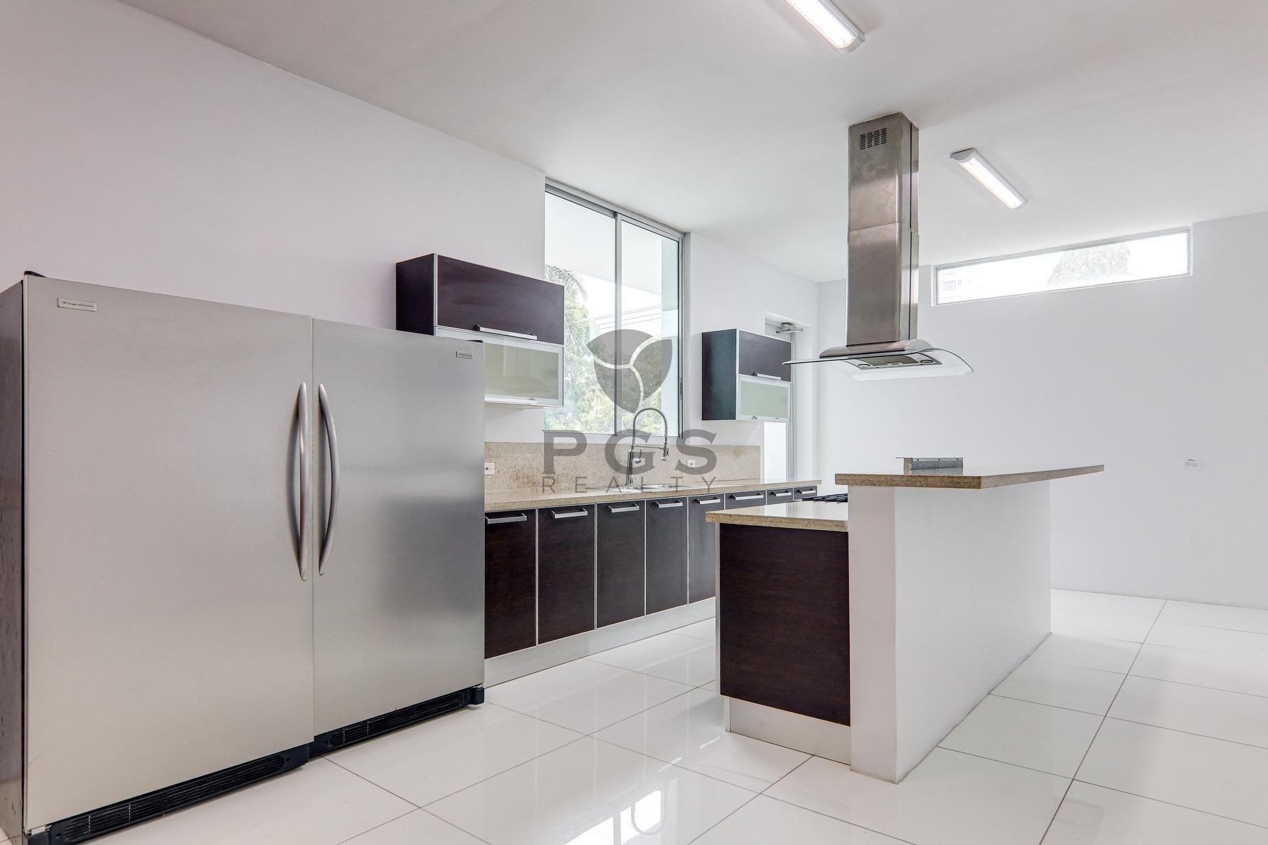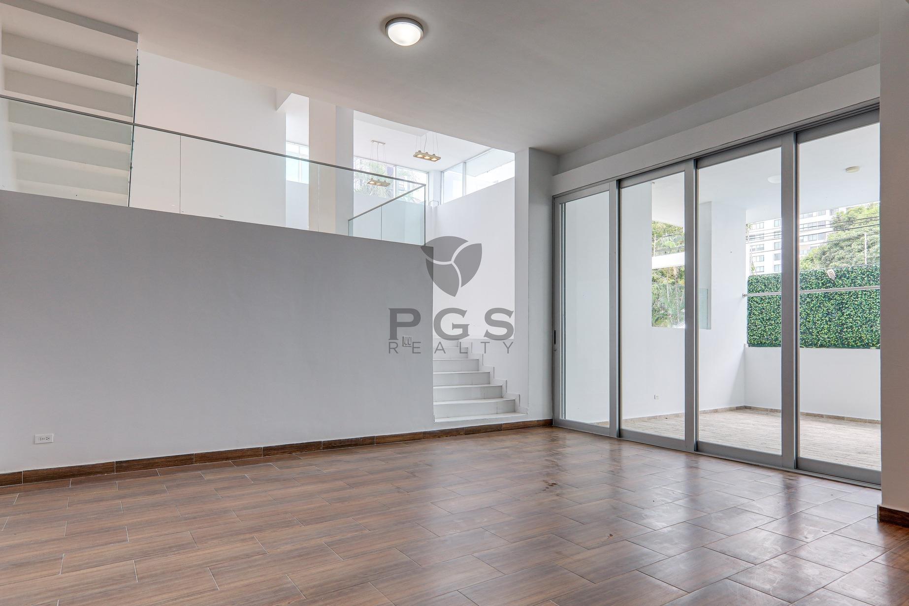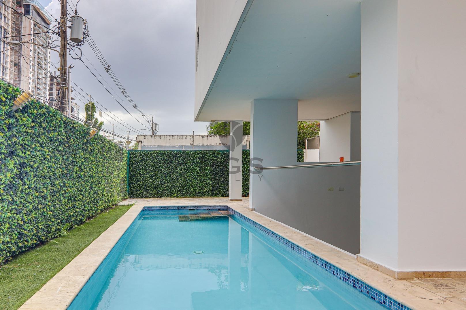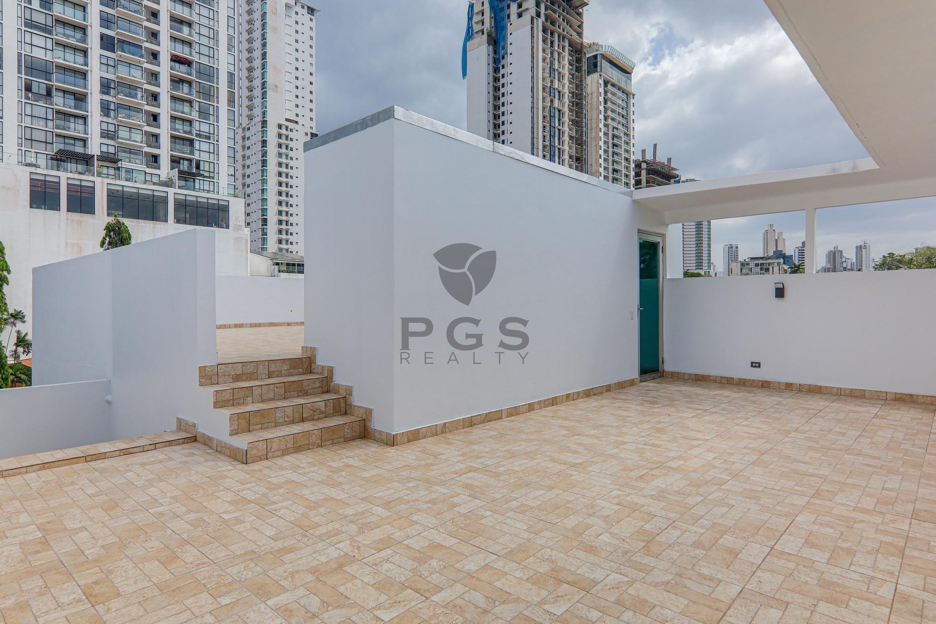 This large, three-story home with roof terrace is located in PH Minimal Houses, a small gated community of six modern townhouses within the exclusive Panama City neighborhood of Altos del Golf. The property is in very good condition and ready for immediate occupancy. Features: • 540 m2 of construction. • Four (4) bedrooms. Master bedroom features a huge walk-in closet. • Three (3) full bathrooms: two are in-suite and one is shared. • Half-bathroom in family room close to covered terrace. • Spacious modern kitchen and large dining area. • Split-level living room and large family room. • Private swimming pool. • BBQ area and outdoor covered dining space. • Huge rooftop terrace with views of the city skyline. • Rooftop studio, perfect for a home office, exercise room or play room. • Two (2) private parking spaces with remote-controlled access gate. • 24-hour security.