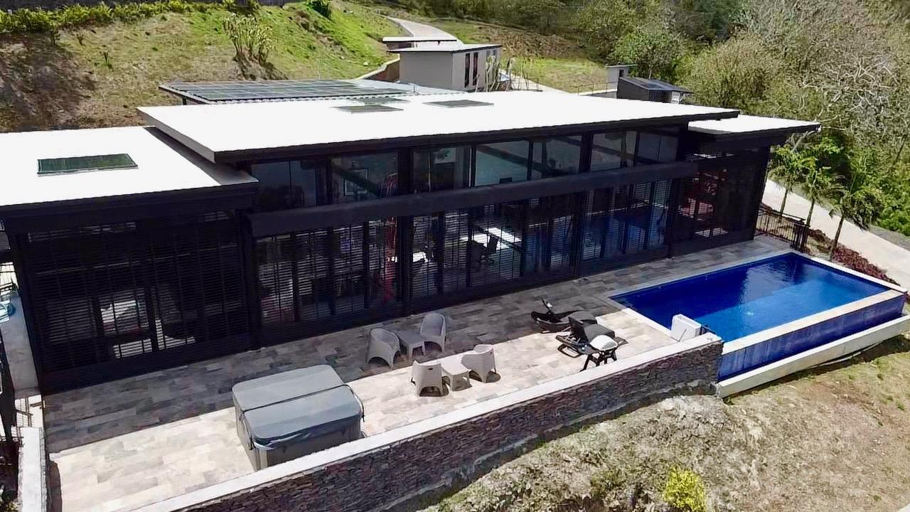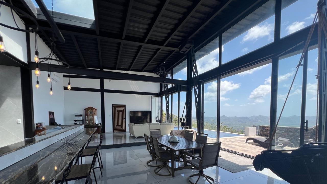 Large modern villa with 3 comfortable guest units, plus a social area with a pool, a roofed area and a gym. LOCATION: Los Altos de Campana, on the way to a small mountain village, Chica. THE VILLA: Open concept living, industrial style architecture offering space and comfort. •250 SQM, CLOSED AREA - 2,700 SQFT •120 SQM, OPEN AREA - 1,300 SQFT •POOL 30 SQM INSIDE: •LIVING DINNING AREA •OPEN KITCHEN •2 BEDROOMS, PRIVATE BATHROOM AND CLOSETS •TV ROOM •OFFICE •WORK ROOM •TECHNIC ROOM WITH SOLAR SYSTEM EXTRA FEATURES: •100 SQM REAR SHED •35 SQM ENCLOSED WORKSHOP •OTHER 100 SQM COVERED AREA •SOLAR SYSTEM FOR THE WHOLE HOUSE THE GUEST HOUSES THREE INDEPENDENT UNITS, OVER LOOKING THE OCEAN... UNIT ONE: 90 SQM, 2 BED, 2 BATH, 80 SQM TERRACE WITH JACUZZI AND BARBECUE. UNITS TWO: 90 SQM, 2 BED, 2 BATH, 20 SQM TERRACE. THE PAVILLON: 67 SQM, 1 BED LOFT, 20 SQM TERRACE. THE SOCIAL AREA 60 SQM GYM WITH AC POOL AND A ROOFED AREA EXTRA: one 40-foot container for storage, one 20-foot container currently being converted into a small art gallery. Another 40-foot container, 50% of which will be a small loft and 50% a warehouse. THE PROJECT This place is the perfect one for the ones who are looking for amazing views, space to live and space to invite relatives or to make some rental incomes. In this property, you feel privacy and well being, looking over the valley, the ocean, the nature, and the mountains...
