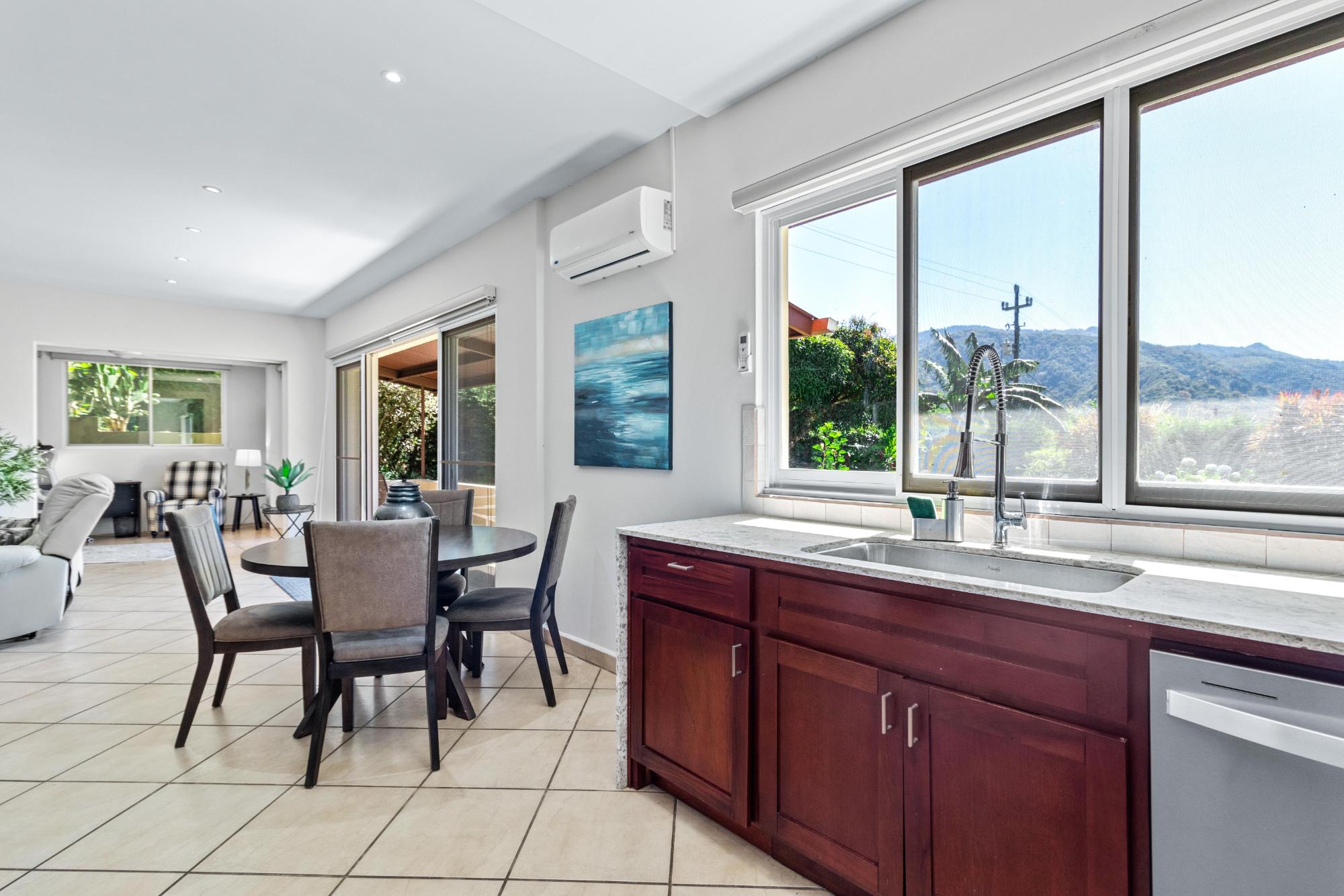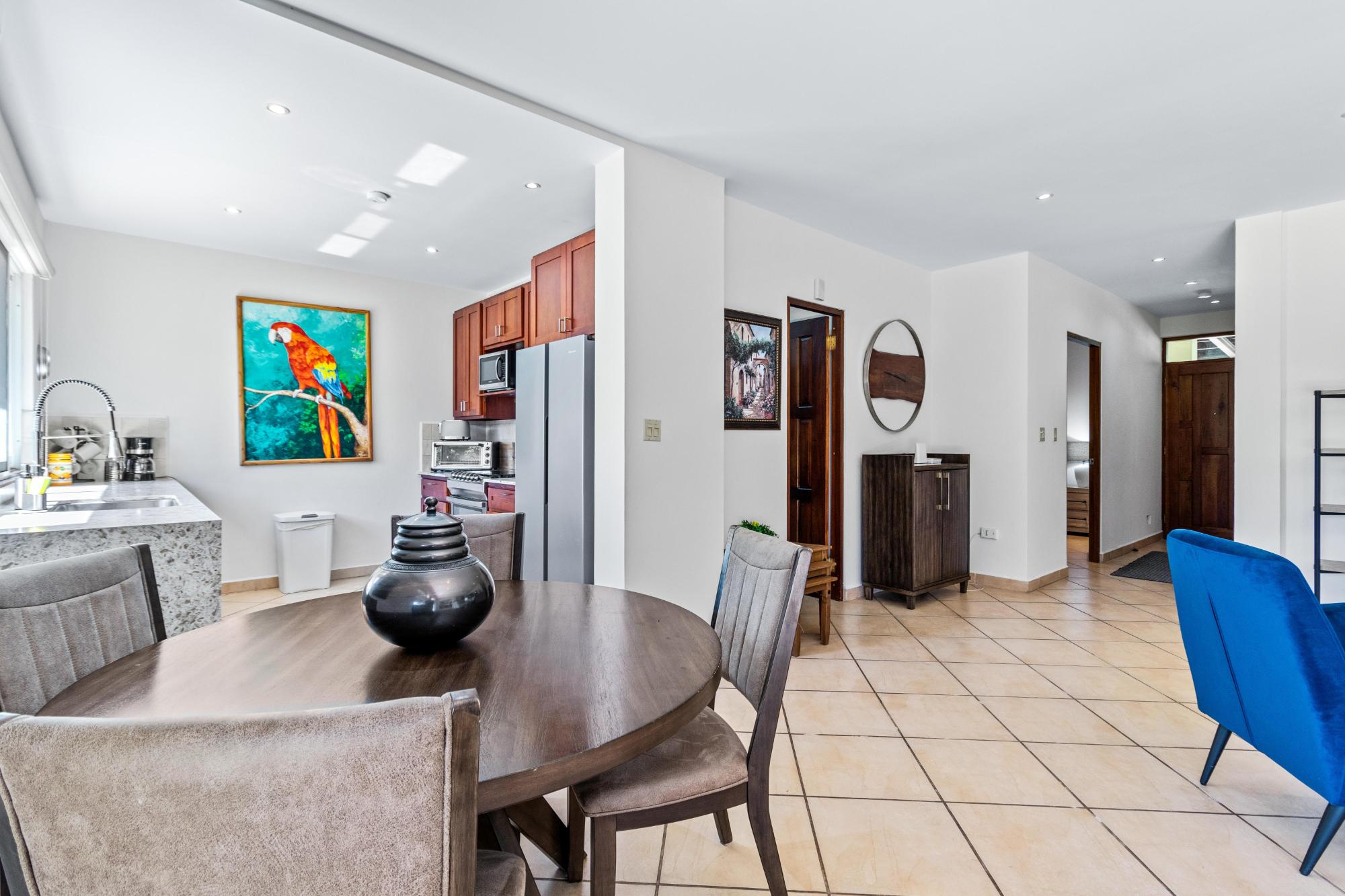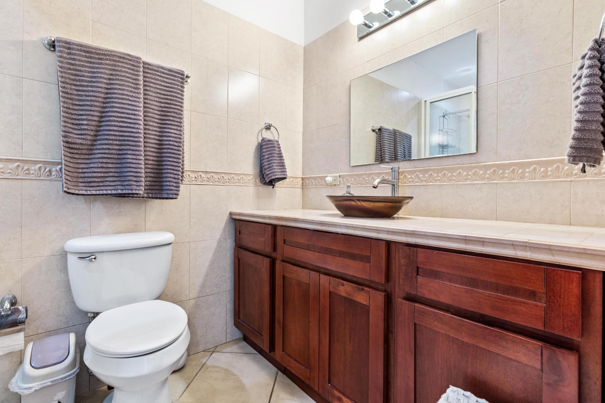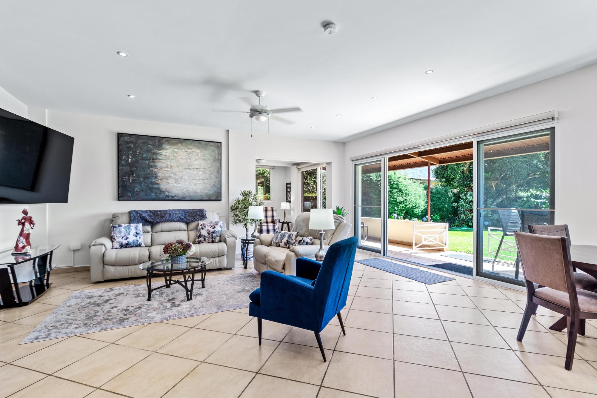 Discover your dream home in the peaceful and highly sought-after neighborhood of Alto Lino, located just 3.5 km from the vibrant Restaurant Row of downtown Boquete. This fully furnished 2-bedroom, 2-bath condo includes a spacious bonus room and a large bodega inside. Another feature unique to this home is the covered terrace that runs the entire width of the condo, offering breathtaking views of the mountains. What also sets this condo apart from all the others is its complete renovation completed just last year, with all appliances and furnishings newly purchased. The building is home to only six condos, but this one is truly unique—it’s the only unit that includes a bonus room and bodega, a covered terrace, and it’s larger and more distinctive than all the others. Upon entering, you’ll be welcomed by an open-concept floor plan bathed in natural light. The spacious living area is perfect for relaxing or entertaining, with a 75" Samsung TV providing a theater-like experience, while the master suite features its own TV for private viewing. Both TVs are equipped with new 4K Amazon FireSticks for endless streaming. The climate is always under control with a cutting-edge Carrier system providing air conditioning, heating, dehumidifying, and air-purifying options for your comfort year-round. The master bedroom is a retreat of its own, furnished with a king-size bed and an en-suite bathroom complete with ample cabinet space, ensuring everything has its place. The second bedroom is also generously sized and provides plenty of storage for all your belongings.