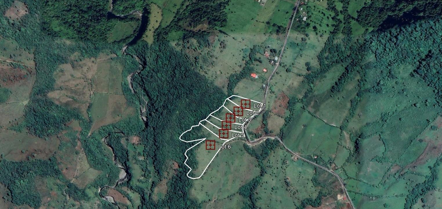 Discover a unique opportunity in the highlands of Cordillera Arriba, Boquerón – Chiriquí, where nature, comfort, and privacy exist in perfect harmony. These residential country lots, currently being subdivided, range from 7,340 m² to 3 hectares (1.8 to 7.4 acres) and are located at an approximate altitude of 1,300 meters above sea level, guaranteeing a cool climate year-round and unparalleled views. Lot 1 = 7,340m2 (1.81 ac) $132,200.00 Lot 2 = 8,118m2 (2.00 ac) $146,200.00 Lot 3 = 7,898m2 (1.95 ac) $142,200.00 Lot 4 = 7,700m2 (1.90 ac) $130,900.00 Lot 5 = 8,476m2 (2.09 ac) $152,600.00 Lot 6 = 30,367m2 (7.5 ac) SOLD Located just 9 kilometers (~5.6 miles) or 15 minutes from downtown Volcán, the property has access via paved road, offering excellent connectivity without losing its quiet and natural atmosphere. From each lot, you'll enjoy panoramic views of the mountains, the Barú Volcano, and even the Pacific Ocean on clear days. One side of the property is bordered by a seasonal stream and a small, tree-lined canyon, creating a natural barrier and a serene, private setting. The gently rolling topography is ideal for building elevated homes with scenic views. Basic infrastructure is already available: water from the rural aqueduct, electricity at the edge of each lot, and high-speed internet via satellite (Starlink) or antenna. The area is surrounded by beautiful waterfalls, nature trails, and tourist attractions, making it a preferred destination for nature lovers, local residents, and foreigners seeking space, tranquility, and beauty.