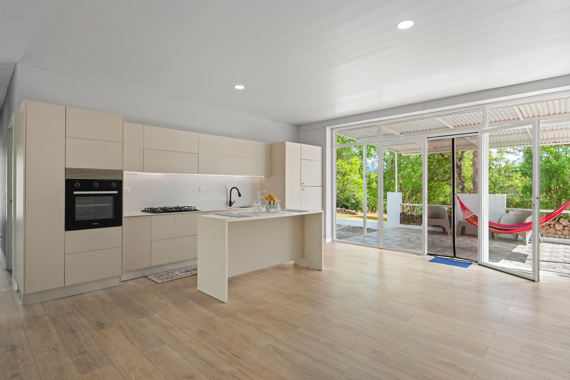 Located in a private neighborhood in the peaceful area of Potrerillos Arriba, this newly built modern home offers privacy, comfort, and refined design. From the moment you enter, the home impresses with its abundant natural light, high ceilings, and clean contemporary finishes throughout. The house features three well-appointed bedrooms, all with built-in cabinets. The main bedroom serves as a private retreat, complete with a king-size bed, an ensuite bathroom with double basins, and generous cabinetry. The two additional bedrooms comfortably accommodate full-size beds and share a stylish guest bathroom, complemented by an additional half bathroom for visitors. The modern kitchen is both elegant and functional, showcasing soft-close cabinetry, sleek finishes, and a built-in eye-level oven designed for everyday convenience. Large glass windows throughout the home create a bright, open atmosphere, seamlessly blending indoor living with the surrounding environment. A spacious entertainment area adds exceptional versatility and is ready to be remodeled according to the vision of its new owner. With large windows and a flexible layout, this space is ideal for an additional den, entertainment room, home office, or a tranquil library, offering endless possibilities for customization. Additional features include a double garage with an easy slide door, underground electricity, a durable metal roof, and reliable internet options via Starlink or satellite. The home is serviced by municipal water and is offered with appliances included, providing a solid foundation for a personalized and modern lifestyle.
