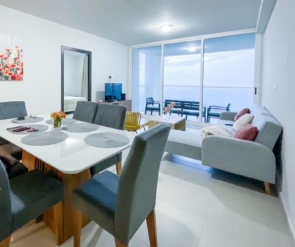 Brand new! Spectacular apartment with the best location in Playa Blanca, facing the sea and overlooking the mountains and the Penonomé wind farm. The apartment has 2 bedrooms, 2 bathrooms, 1 oceanfront balcony, and windows with direct views of the Penonomé wind farm and the largest saltwater pool in Central America and the Caribbean. It has brand new furniture and appliances. It also has access to the pool and all the amenities of the Playa Blanca resort. The apartment has a complete service area with a bedroom and bathroom. Located on the 15th floor of this 17-story building. Fully furnished with a modern and practical design, built in 2019.