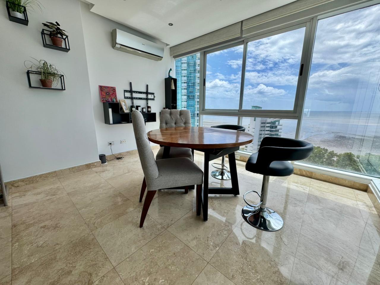 Size: 226 m² 2 parking spaces Property Features 3 spacious bedrooms designed for relaxation 3.5 bathrooms with modern finishes Living-dining room with direct access to the balcony Balcony with spectacular ocean and social area views Den (ideal for an office or family room) Remodeled and equipped kitchen Maid's quarters with bathroom Internal laundry room 2 underground parking spaces This home offers elegance, spaciousness, and comfort in every detail, combining functional spaces with a privileged ocean view. Social Area Amenities Swimming pool for adults and children Fully equipped gym Party room BBQ area Spaces for family recreation Building Features 24/7 security and surveillance Elegant lobby High-speed elevators Excellent maintenance Generator and water reserve tank Living in Costa del Este is synonymous with comfort and prestige: a modern, safe, and planned area with immediate access to the Southern Corridor and quick connection to Tocumen International Airport. Surrounded by prestigious schools, supermarkets, restaurants, parks and business centers, PH Titanium offers an exclusive lifestyle where every day combines comfort, strategic location and an unparalleled view of the sea.