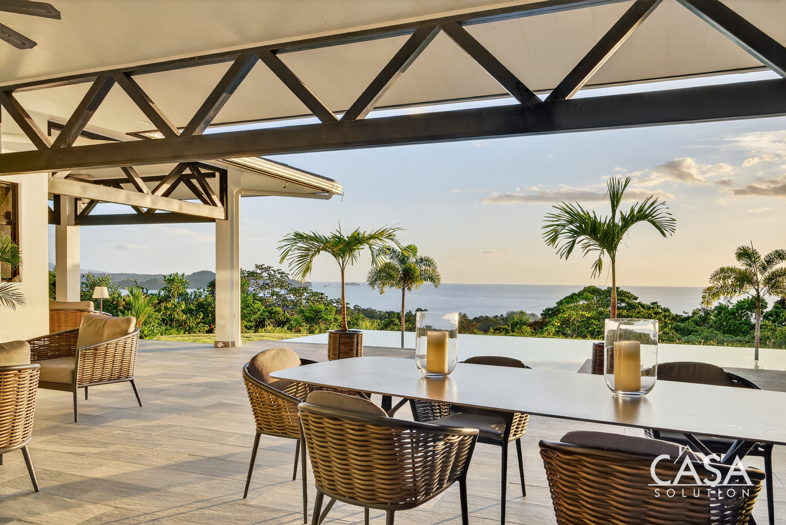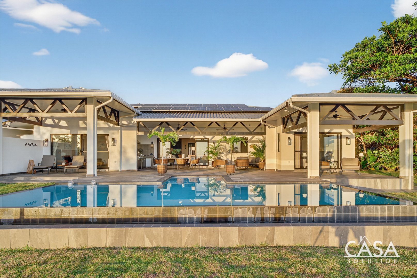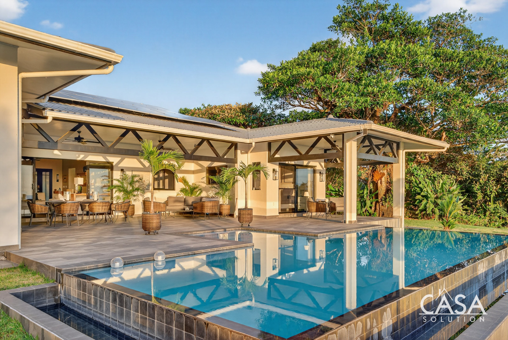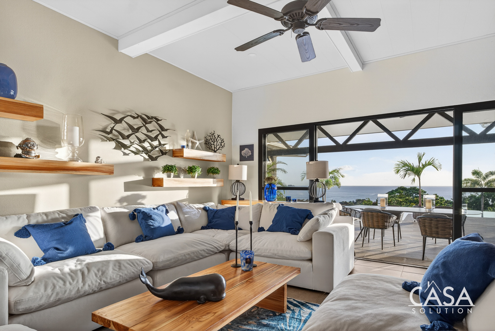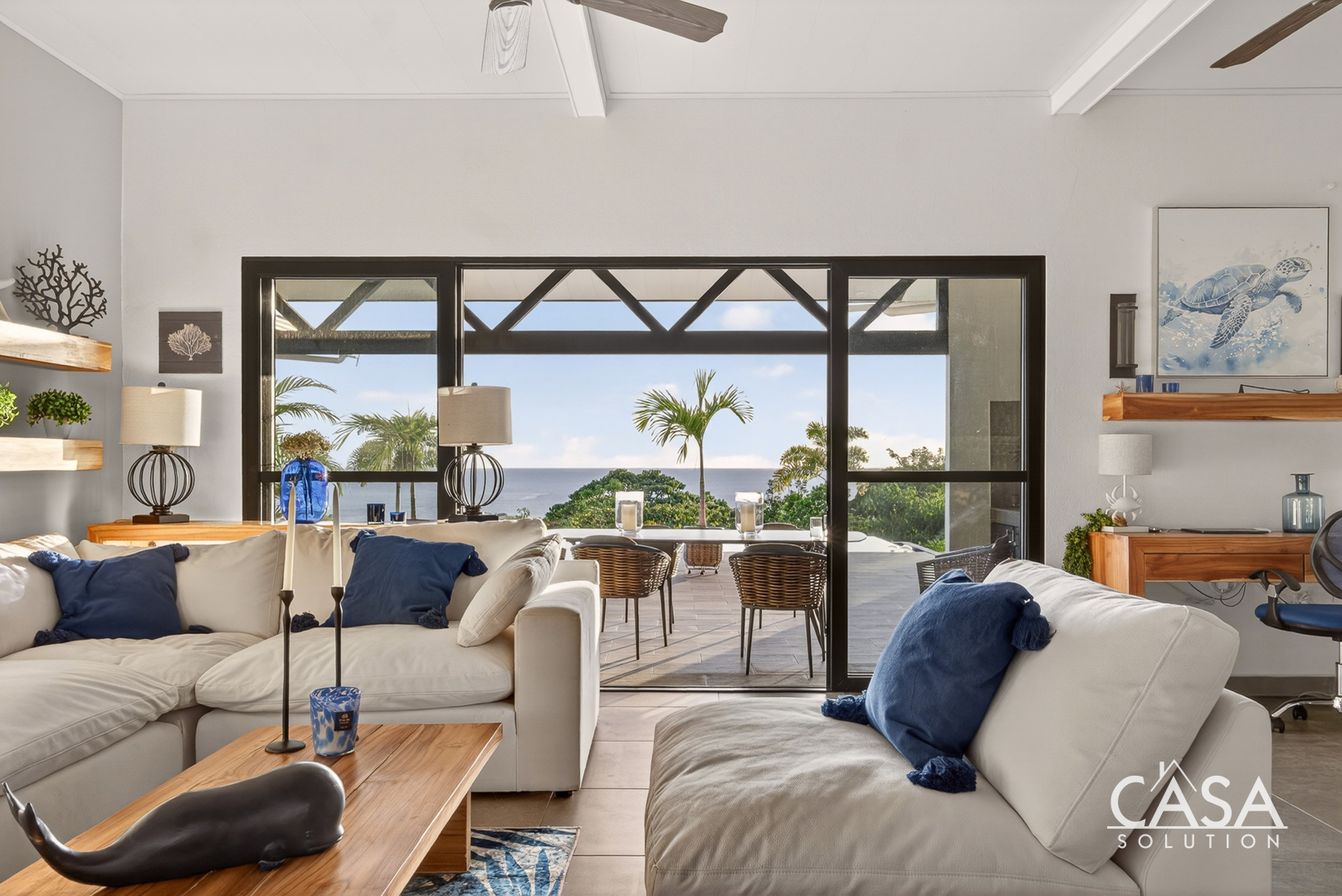 The lawn is planted with Zoysia Toro grass and is impeccably maintained, creating a clean, soft frame around the home. Wildlife is a regular part of life here, with monkeys occasionally passing through and toucans adding color and movement to the landscape. The ocean view is enriched by sightlines toward Los Islotes island, giving the scenery depth and topographical interest rather than a flat, uninterrupted horizon.