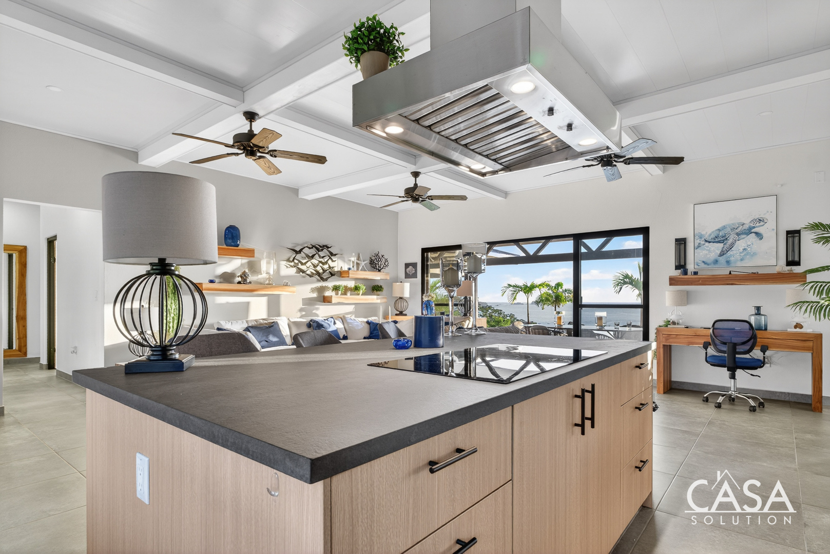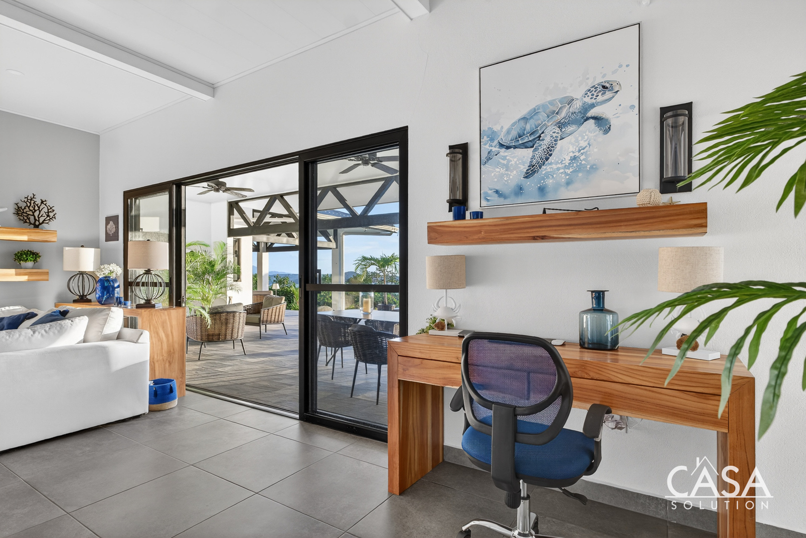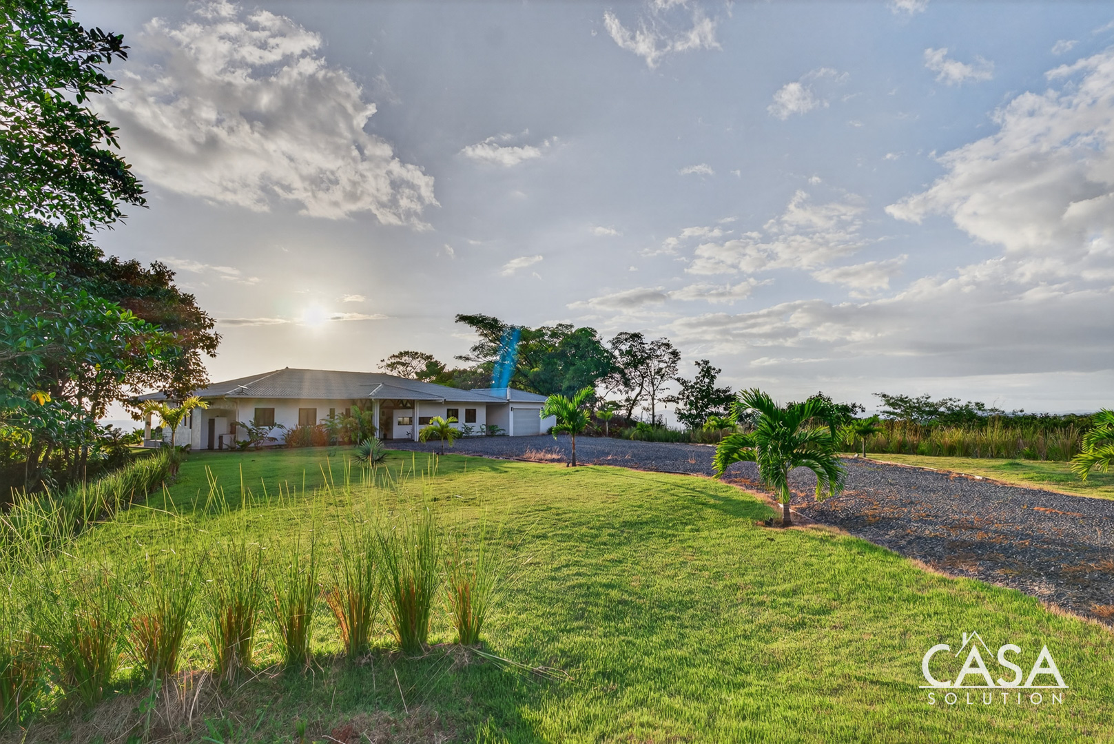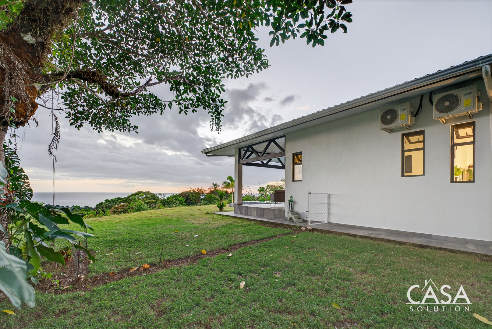 The lawn is planted with Zoysia Toro grass and is impeccably maintained, creating a clean, soft frame around the home. Wildlife is a regular part of life here, with monkeys occasionally passing through and toucans adding color and movement to the landscape. The ocean view is enriched by sightlines toward Los Islotes island, giving the scenery depth and topographical interest rather than a flat, uninterrupted horizon.