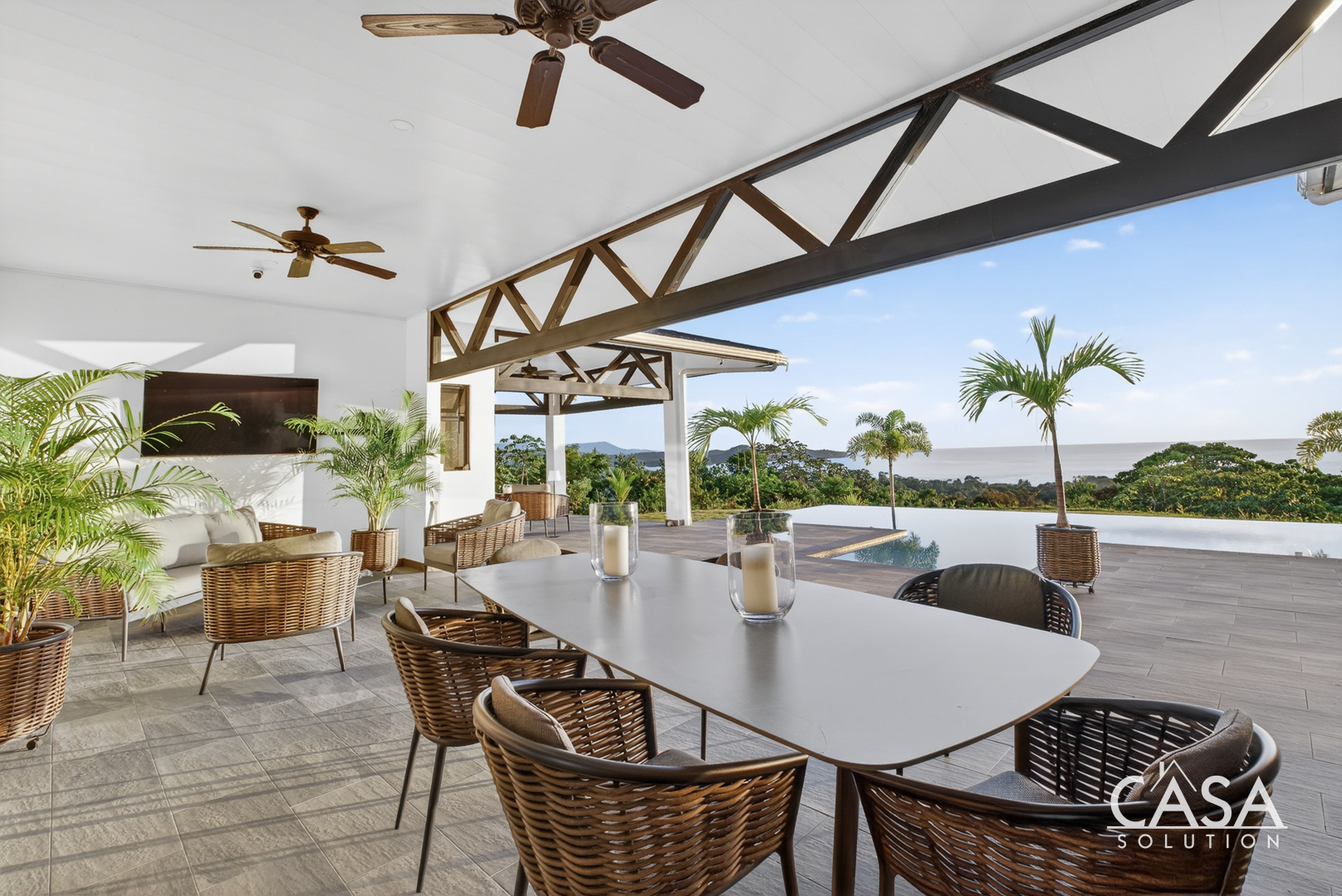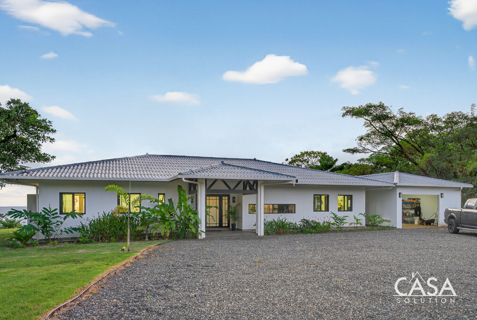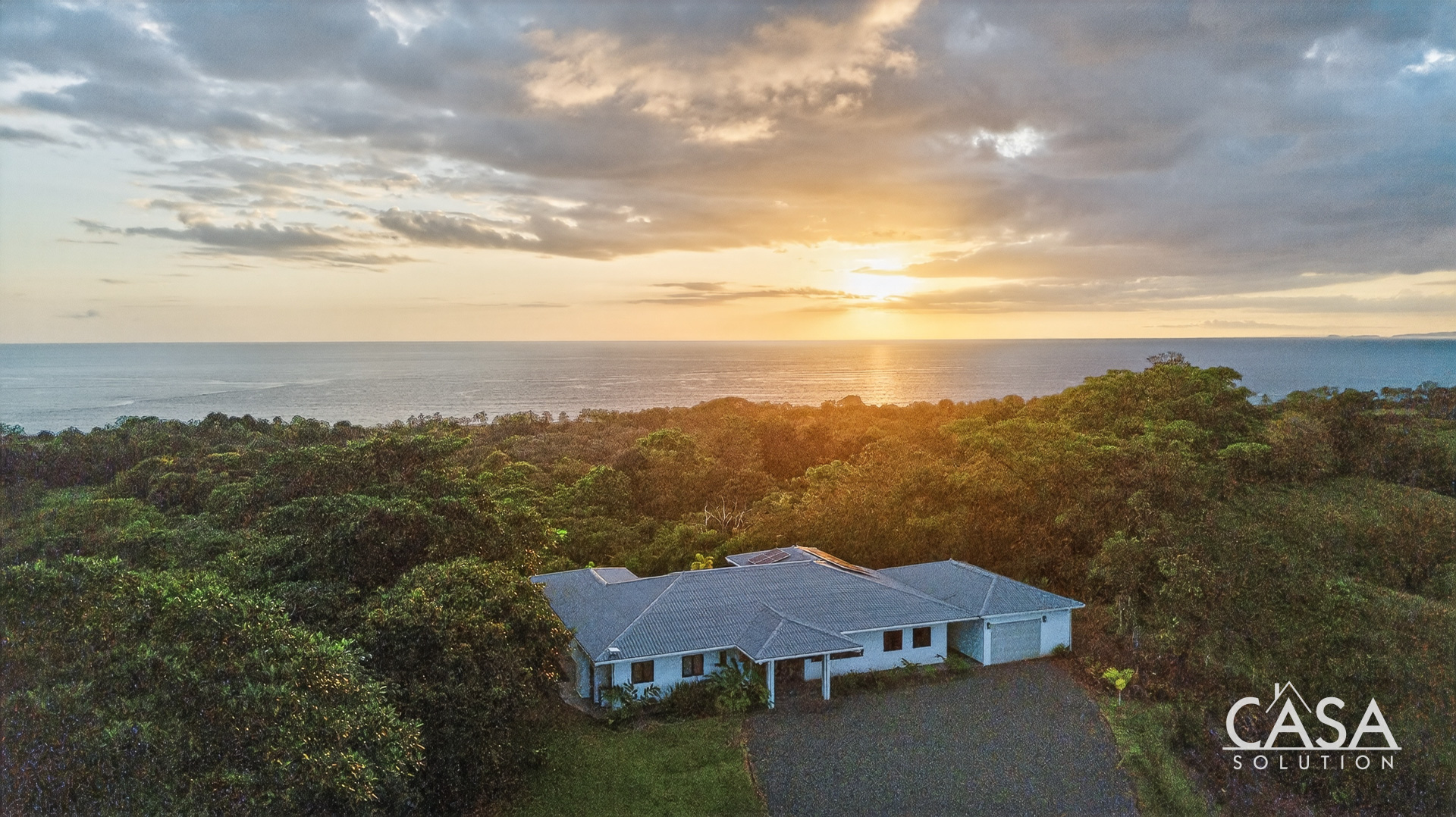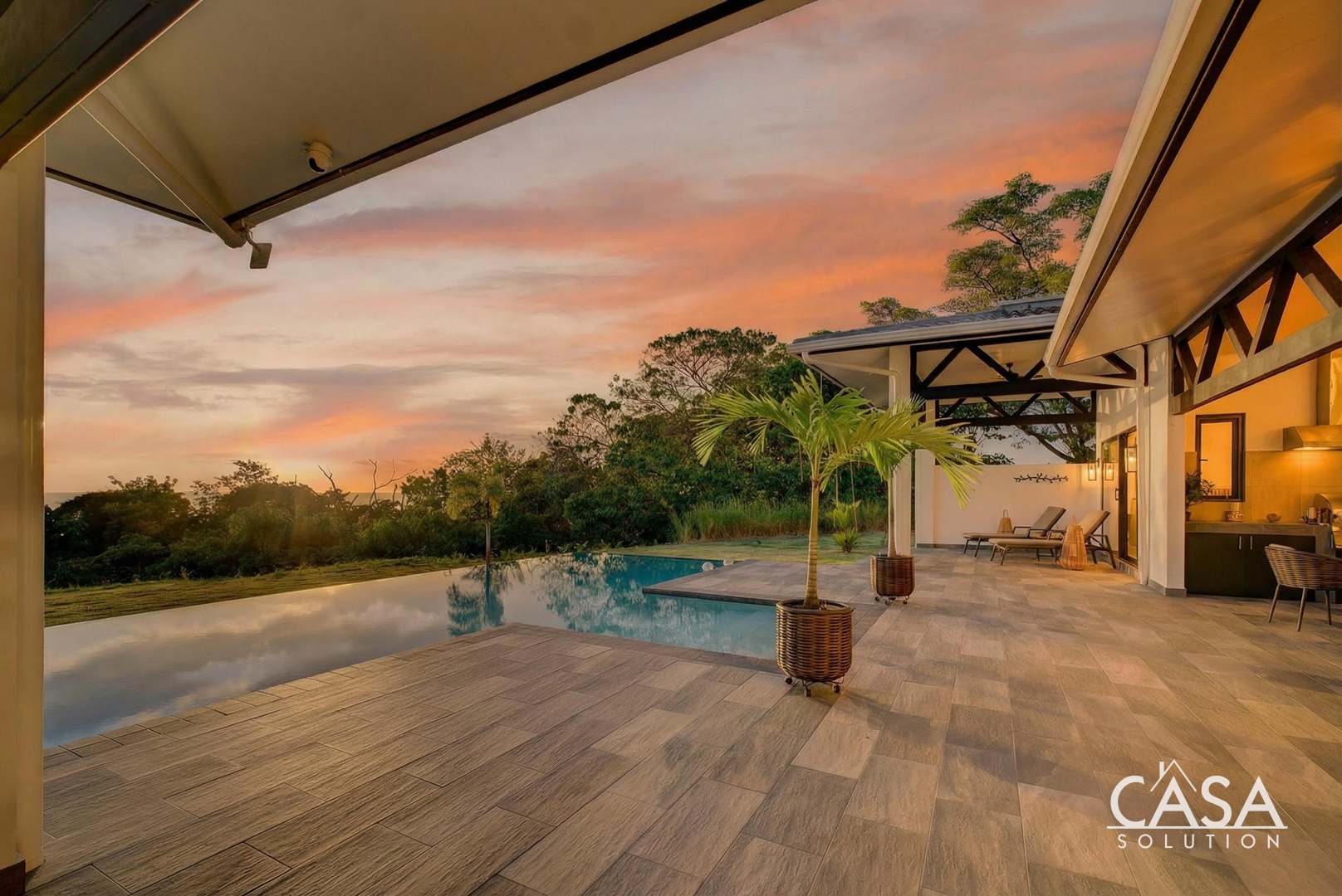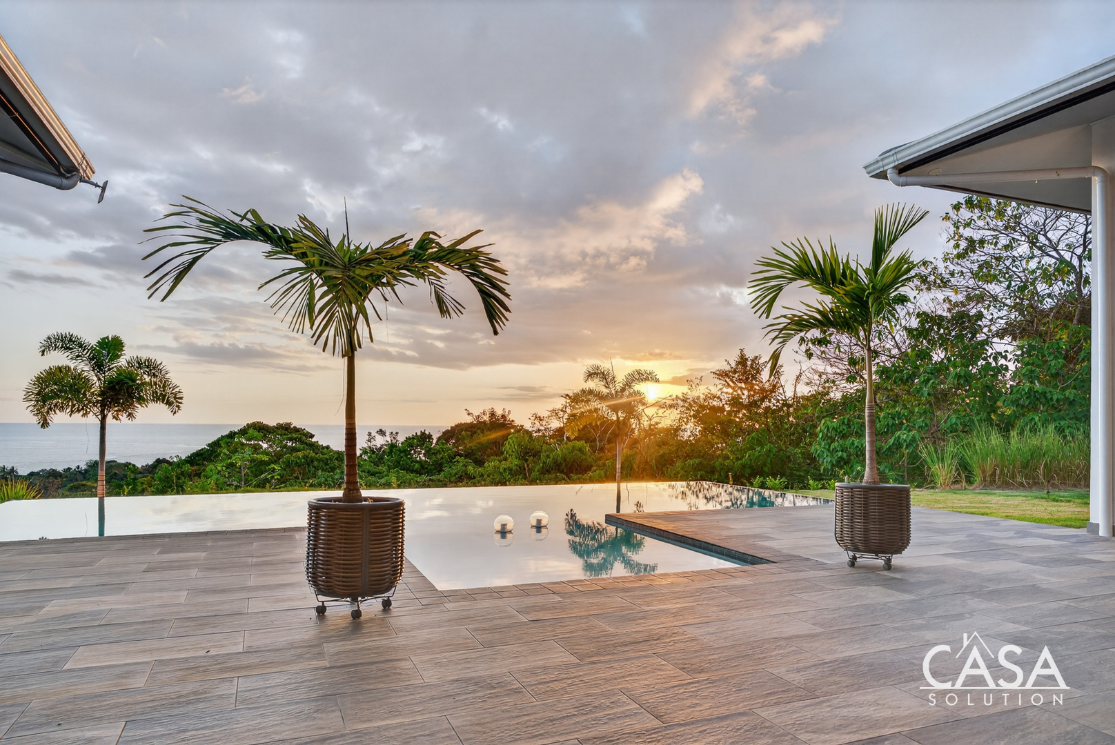The lawn is planted with Zoysia Toro grass and is impeccably maintained, creating a clean, soft frame around the home. Wildlife is a regular part of life here, with monkeys occasionally passing through and toucans adding color and movement to the landscape. The ocean view is enriched by sightlines toward Los Islotes island, giving the scenery depth and topographical interest rather than a flat, uninterrupted horizon.