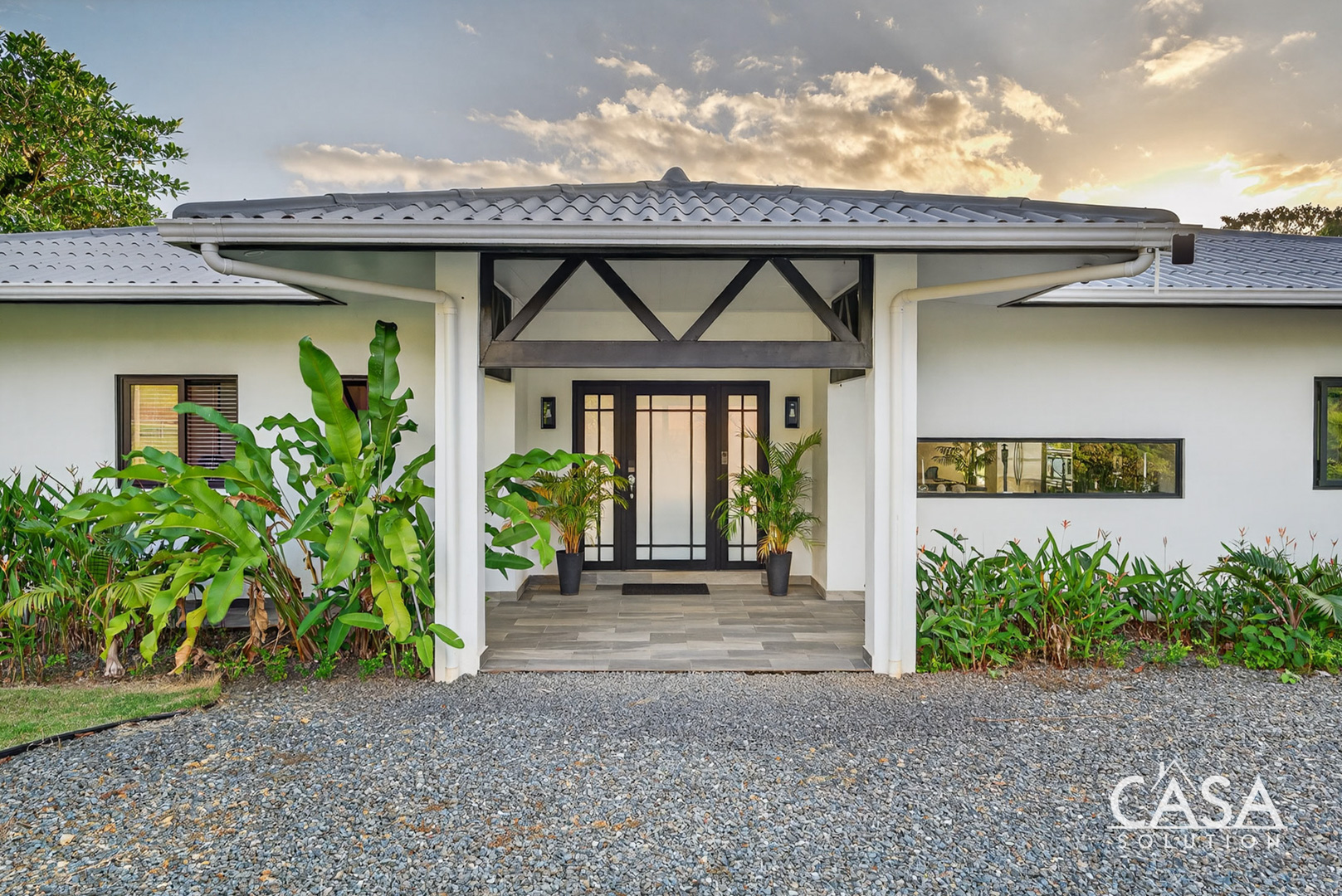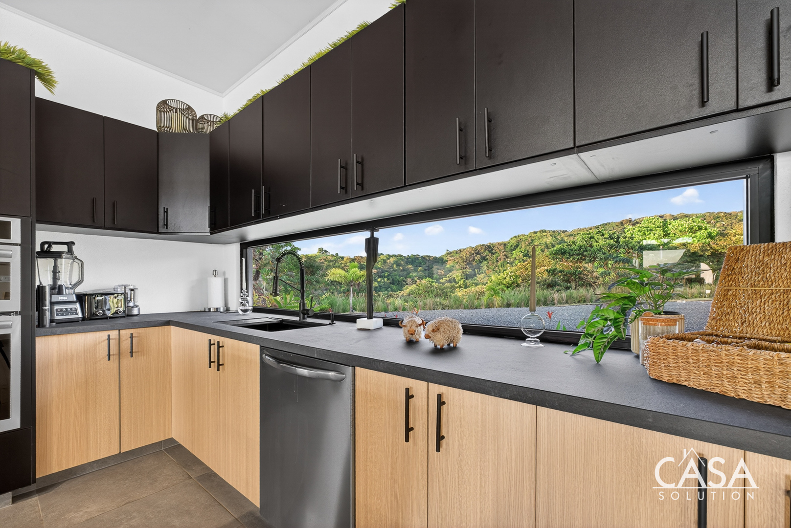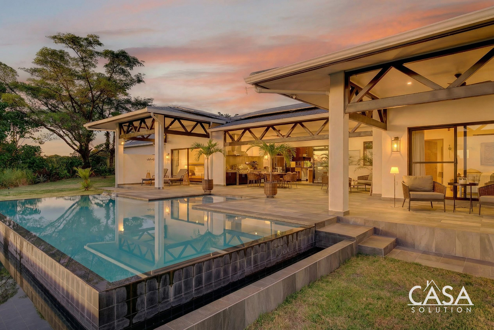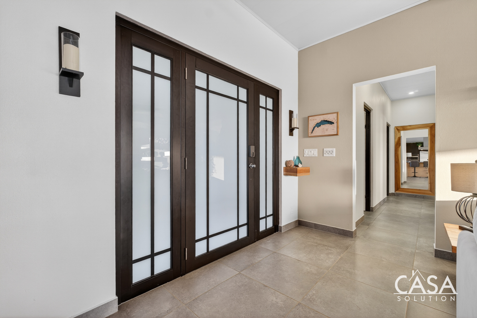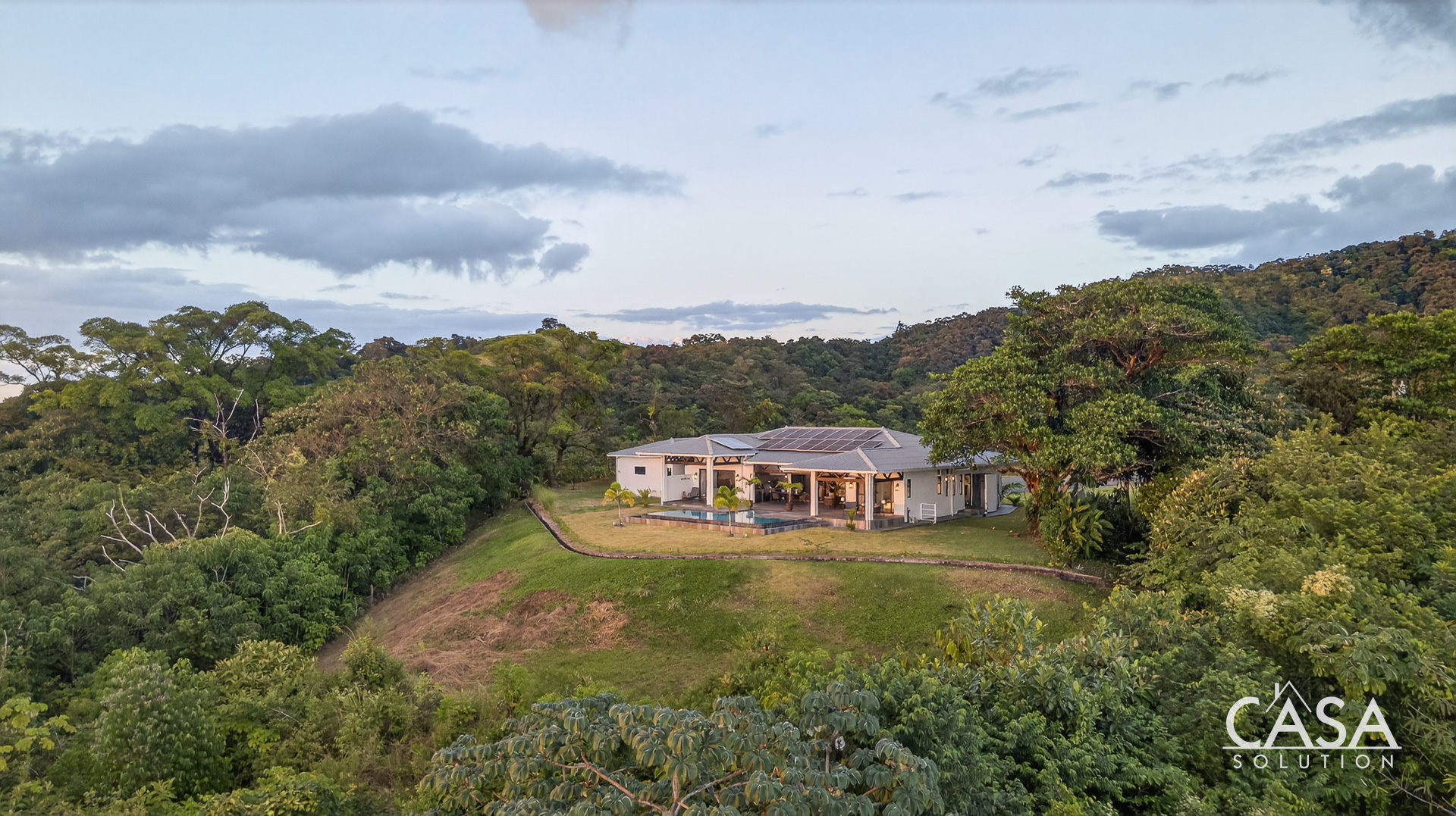 The lawn is planted with Zoysia Toro grass and is impeccably maintained, creating a clean, soft frame around the home. Wildlife is a regular part of life here, with monkeys occasionally passing through and toucans adding color and movement to the landscape. The ocean view is enriched by sightlines toward Los Islotes island, giving the scenery depth and topographical interest rather than a flat, uninterrupted horizon.
