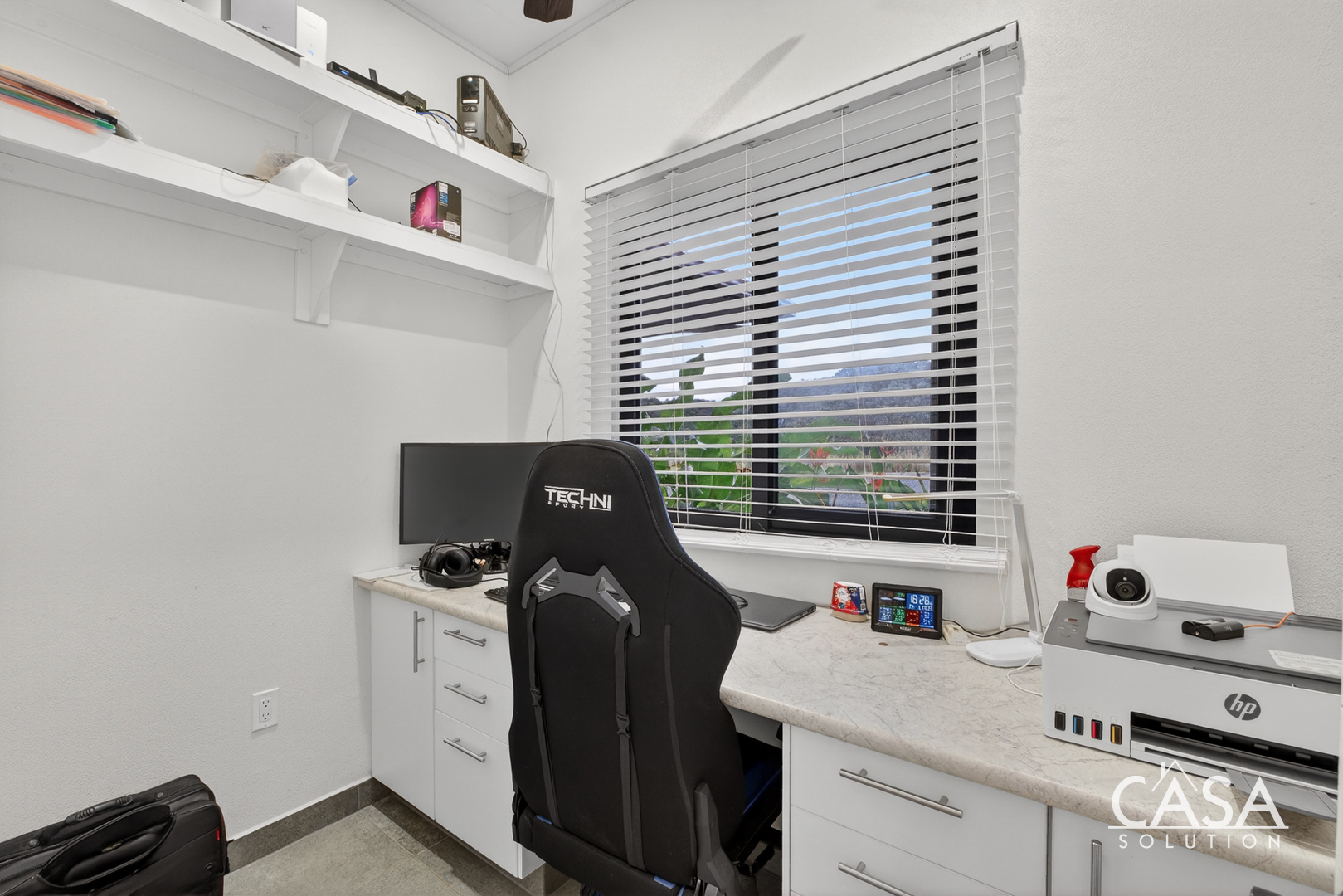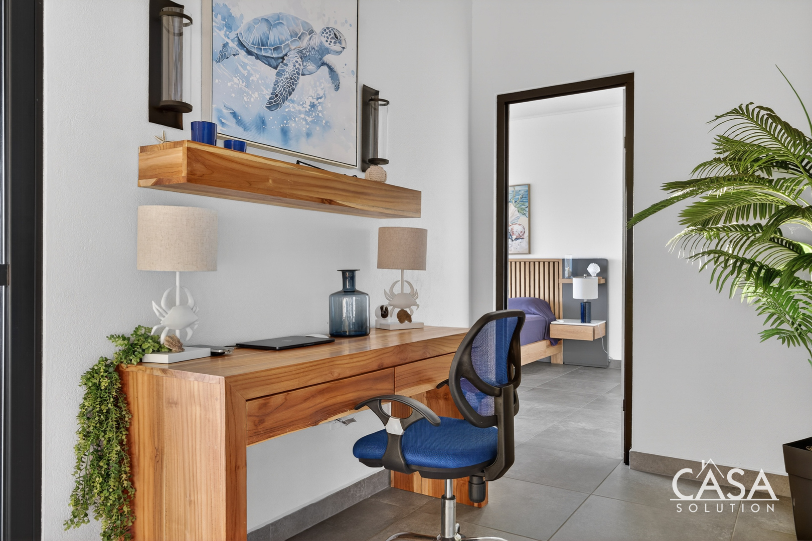 A compact office space has been thoughtfully incorporated, ideal for personal administration, remote work, or managing day-to-day tasks without taking over the main living areas.