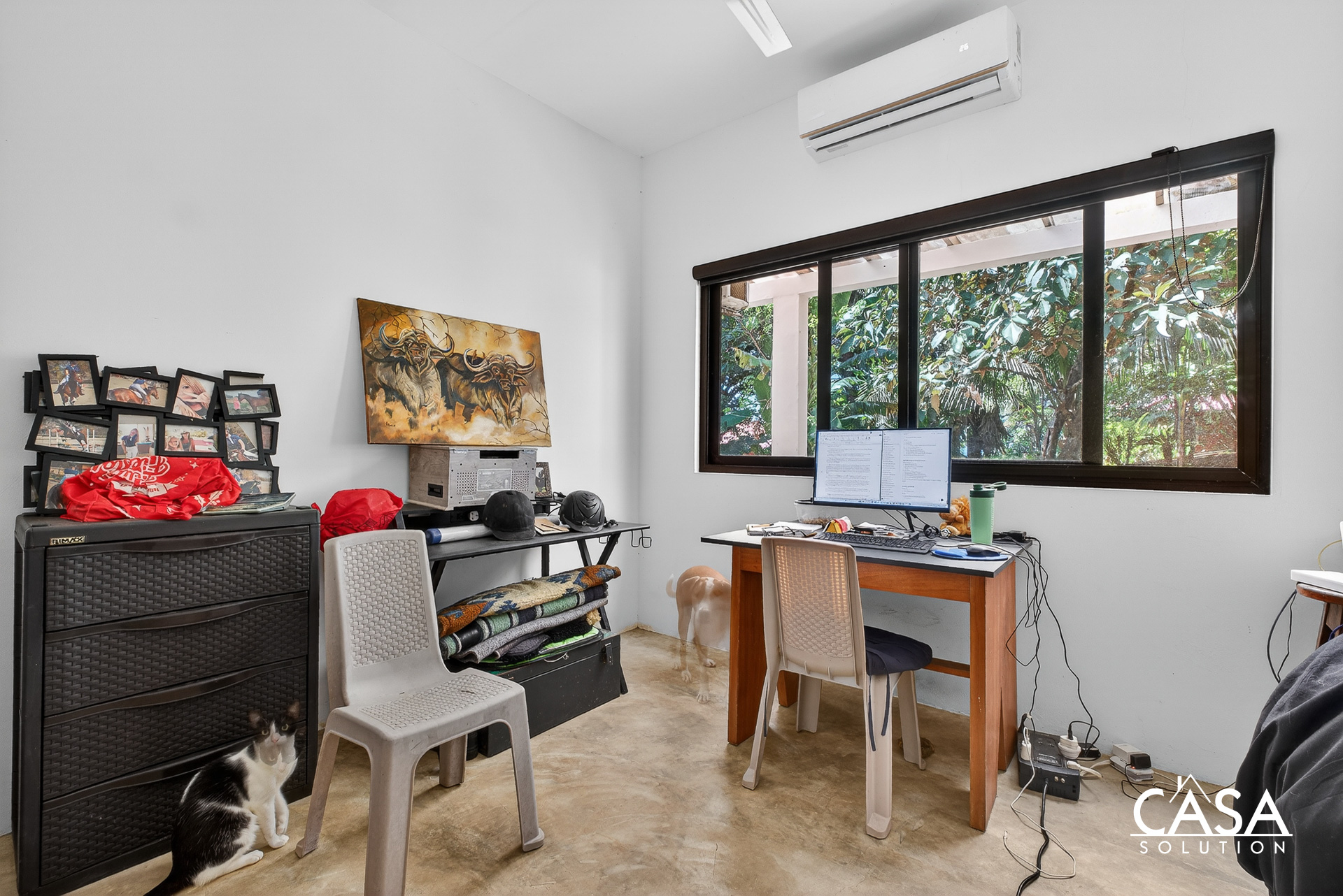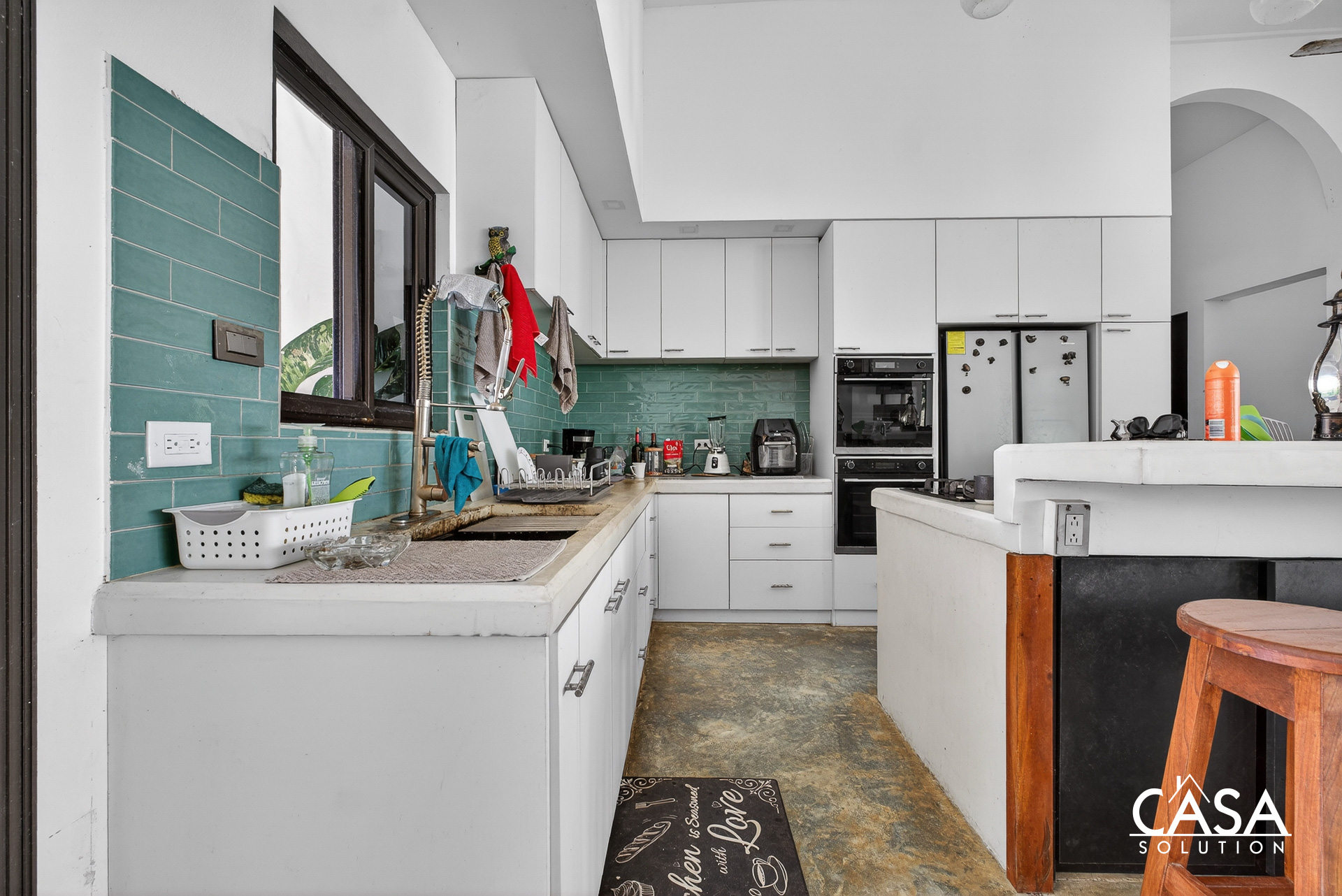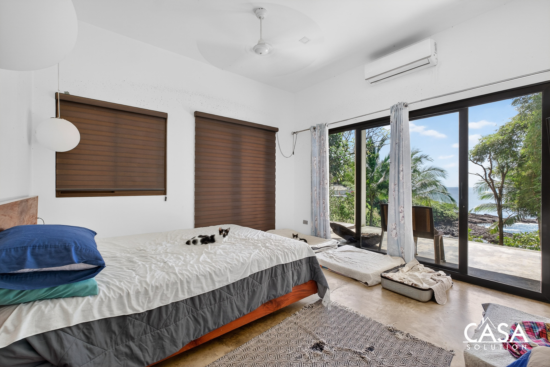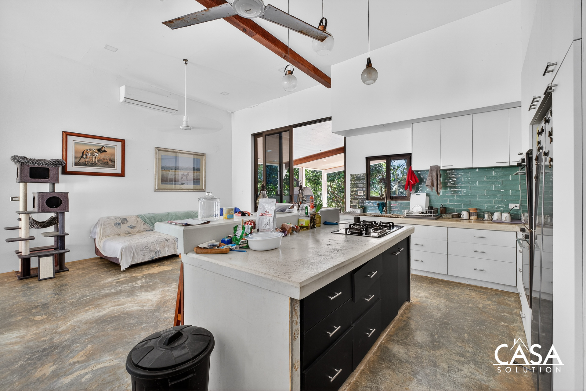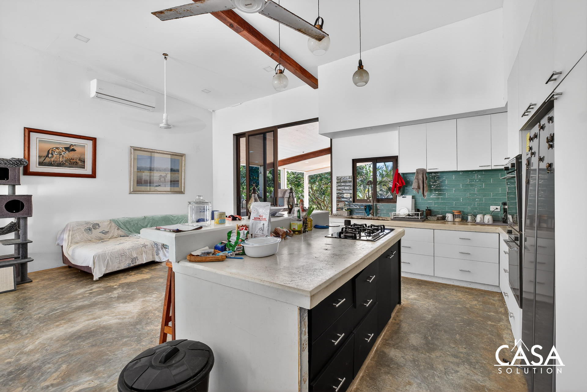 This recently built home, completed within the last two years, sits in a quiet and private setting inside the gated community of Mata Oscura. Designed with a modern tropical architectural style, the home blends clean lines, natural materials, and generous openings that connect the interior spaces to the surrounding landscape and ocean views.