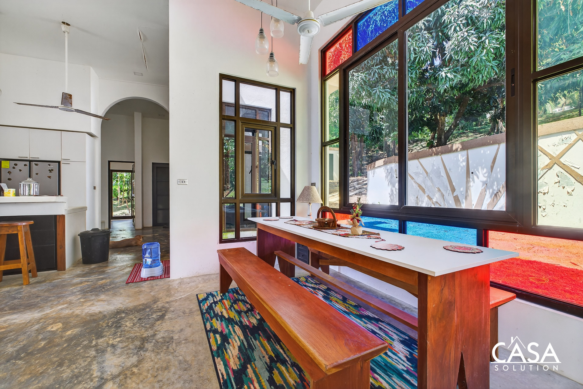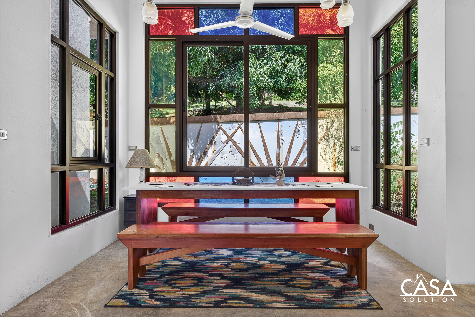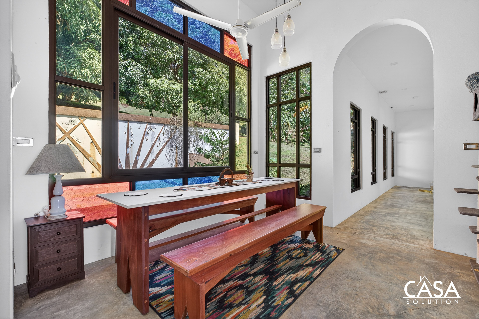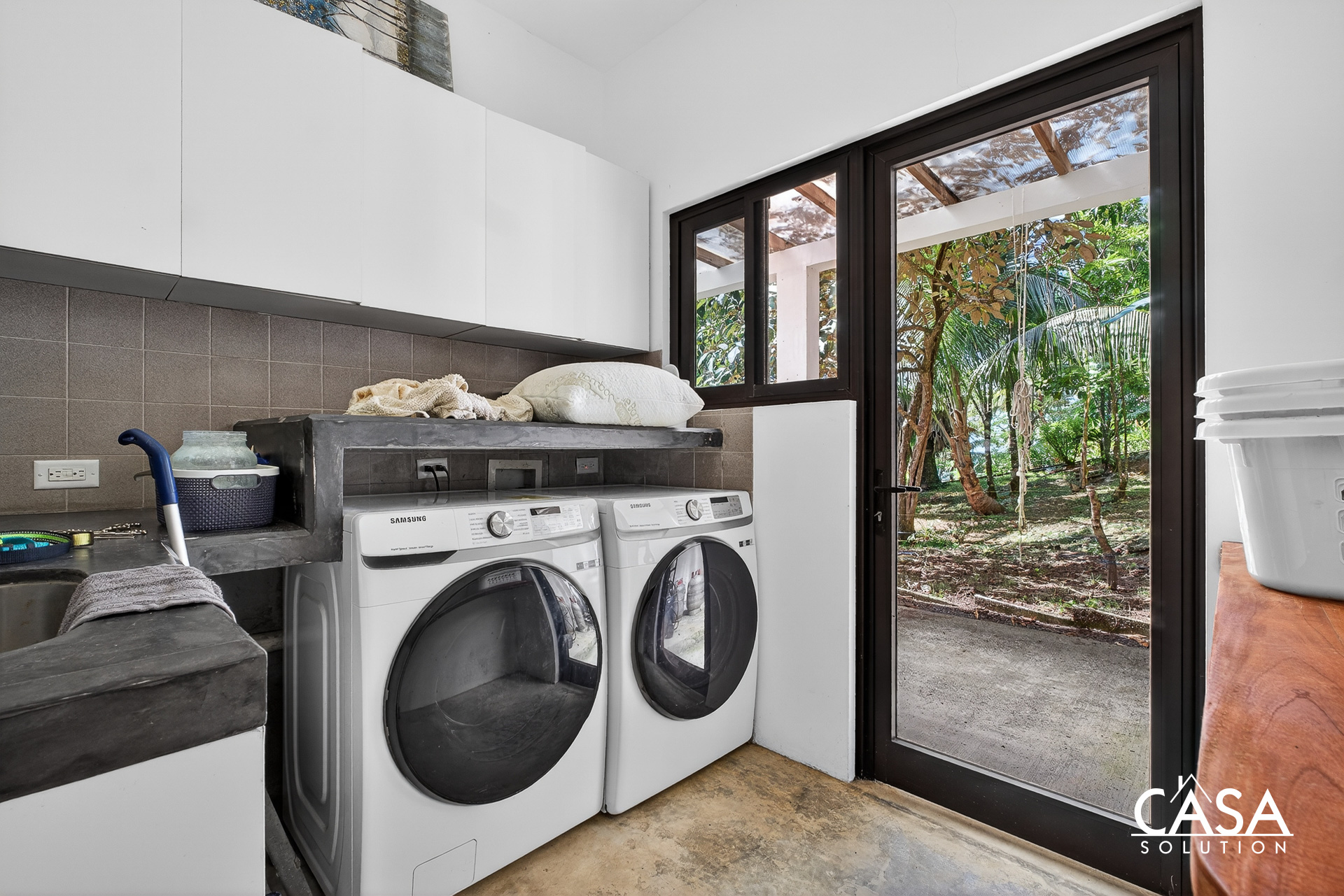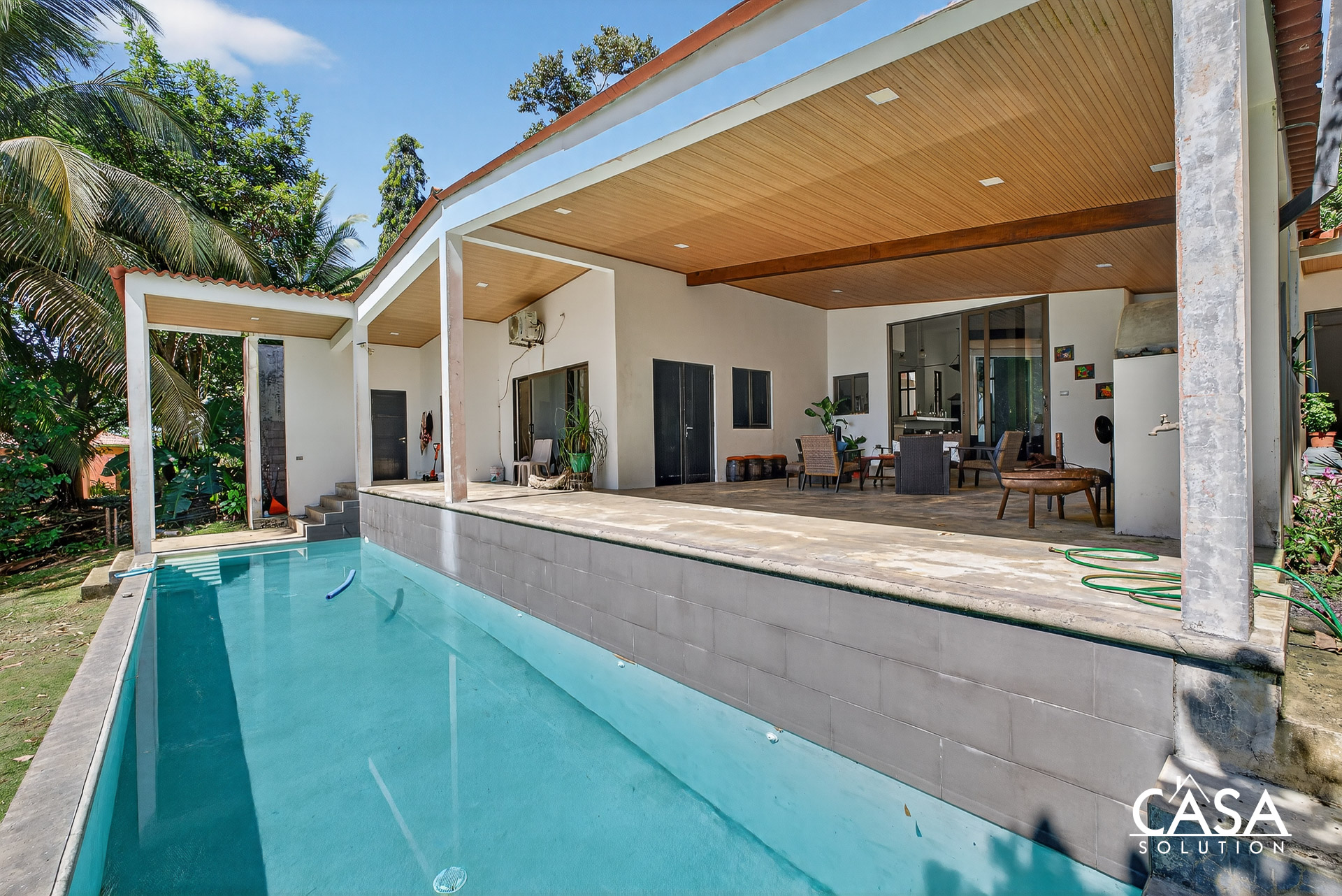 This recently built home, completed within the last two years, sits in a quiet and private setting inside the gated community of Mata Oscura. Designed with a modern tropical architectural style, the home blends clean lines, natural materials, and generous openings that connect the interior spaces to the surrounding landscape and ocean views.