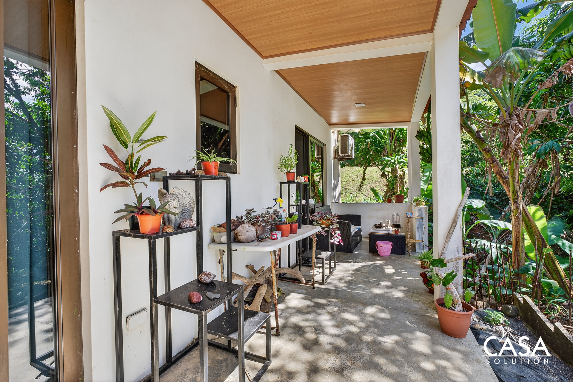 The home is titled and has access to both electricity and water, offering the convenience of on-grid living within a low-density, gated environment. The setting is quiet and secure, with neighboring homes spaced generously, reinforcing the sense of seclusion.