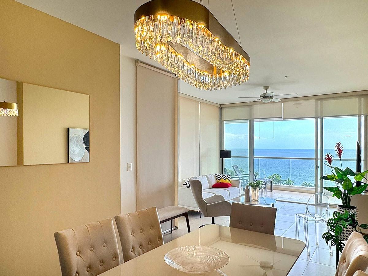 What makes you HAPPY? Do you like playing tennis, swimming, running, or do you prefer relaxing on your ample oceanfront balcony, gazing at the sunset, with a glass in hand? We've got you covered! This fully FURNISHED apartment has been lovingly remodeled. It includes three brand-new INVERTER A/Cs and TVs. RIVAGE TOWER is one of the few buildings offering three social areas, a tennis court, and no less than three pools, not to mention a professional-grade gym with a sauna, Turkish bath, and squash court! For jogging, running, bicycling, or simply walking, all you need to do is cross the prestigious Balboa Avenue where the famous CINTA COSTERA awaits. They say you cannot buy happiness, but this is your opportunity to lease it. This property is listed on the MLS (Multiple Listing Service), ensuring broad exposure to licensed Realtors with a guaranteed 50/50 split. Private viewings are available for qualified parties.