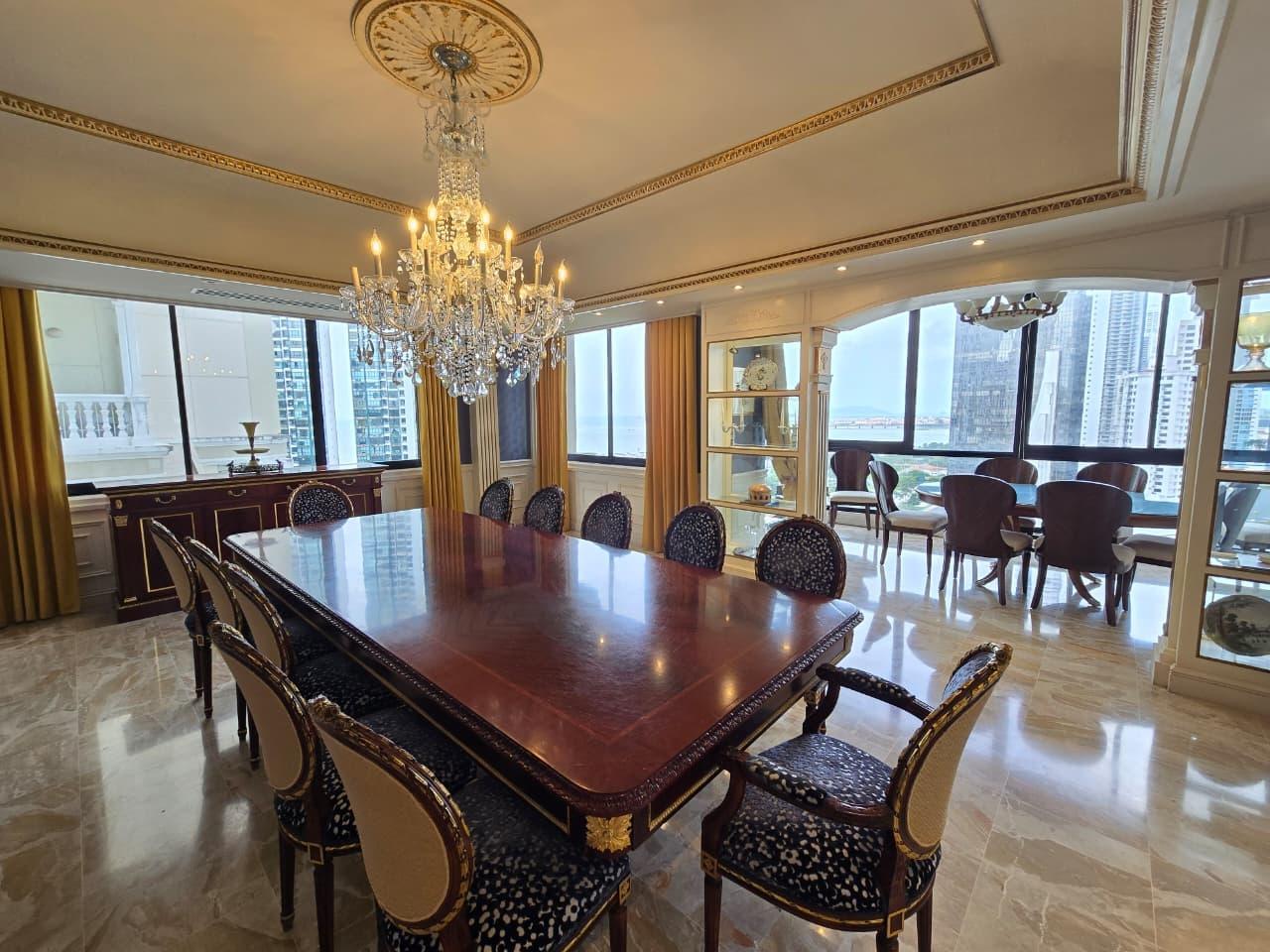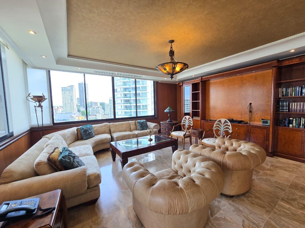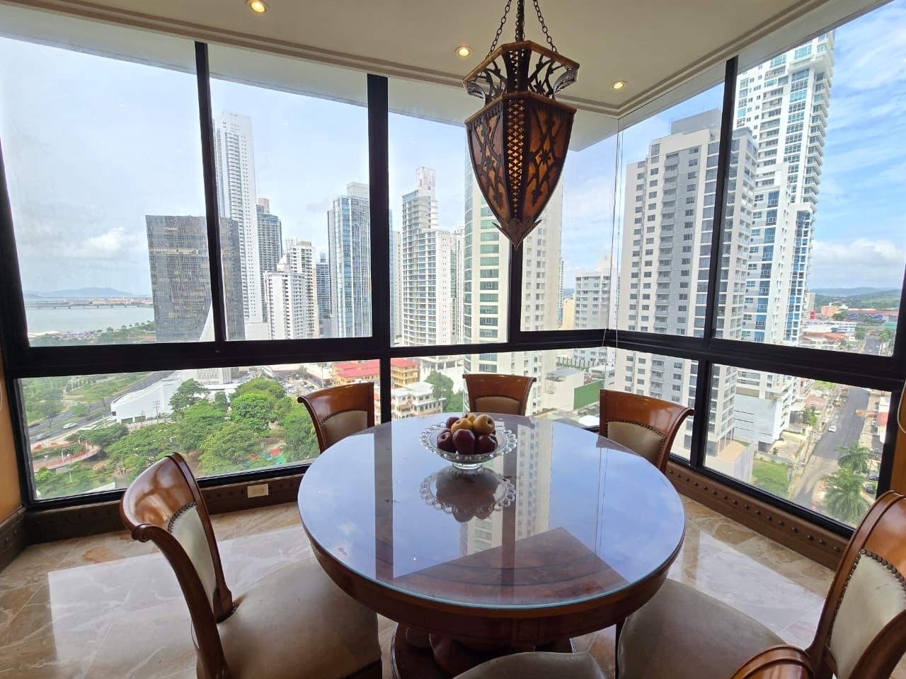 Unique opportunity on a high floor – PH Pacific Park, Bella Vista! Experience luxury in front of Urraca Park, and just steps from the coastal strip. This 561m² apartment has 4 bedrooms, 4.5 bathrooms, a spacious living room, a large dining room with a breakfast bar, a study, a kitchen with a breakfast bar, a laundry area, a service room and bathroom, and parking. This apartment is a true gem in the Panama real estate market. With its privileged location, surrounded by parks, recreational areas, restaurants, and business centers, it is a great opportunity that you cannot pass up! Contact us today for more information or to schedule a showing! (ID 13349)
