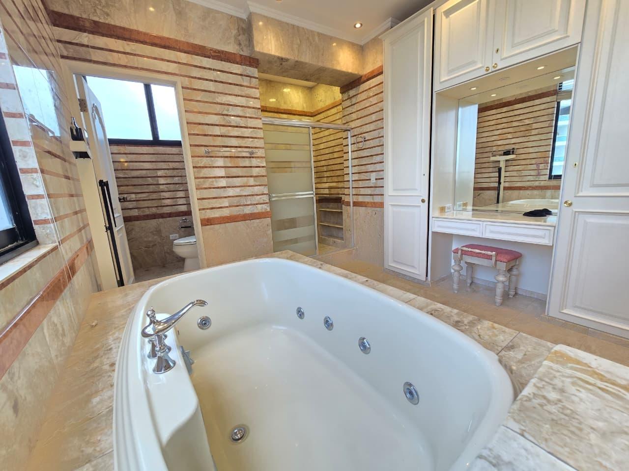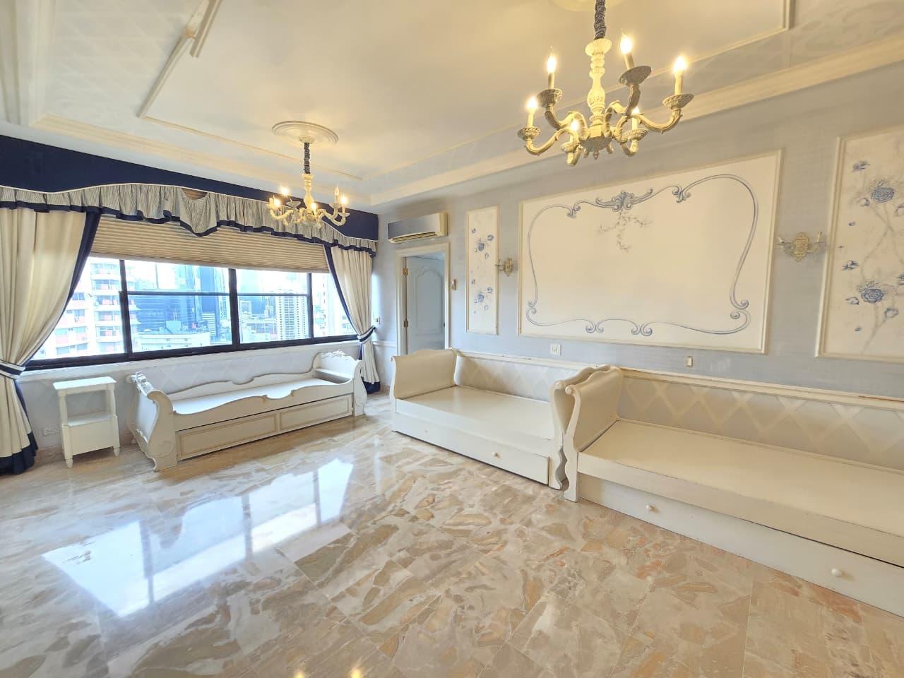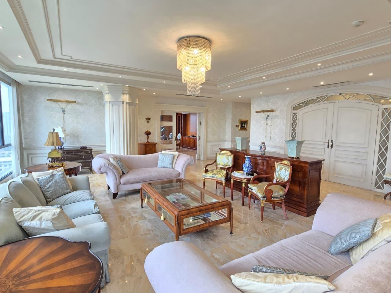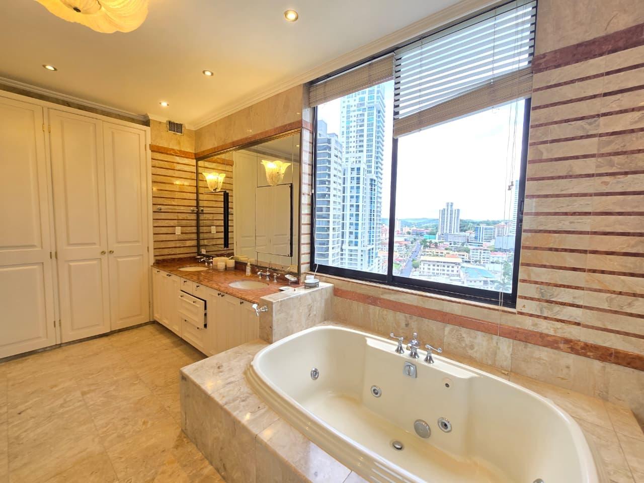 Unique opportunity on a high floor – PH Pacific Park, Bella Vista! Experience luxury in front of Urraca Park, and just steps from the coastal strip. This 561m² apartment has 4 bedrooms, 4.5 bathrooms, a spacious living room, a large dining room with a breakfast bar, a study, a kitchen with a breakfast bar, a laundry area, a service room and bathroom, and parking. This apartment is a true gem in the Panama real estate market. With its privileged location, surrounded by parks, recreational areas, restaurants, and business centers, it is a great opportunity that you cannot pass up! Contact us today for more information or to schedule a showing! (ID 13349)