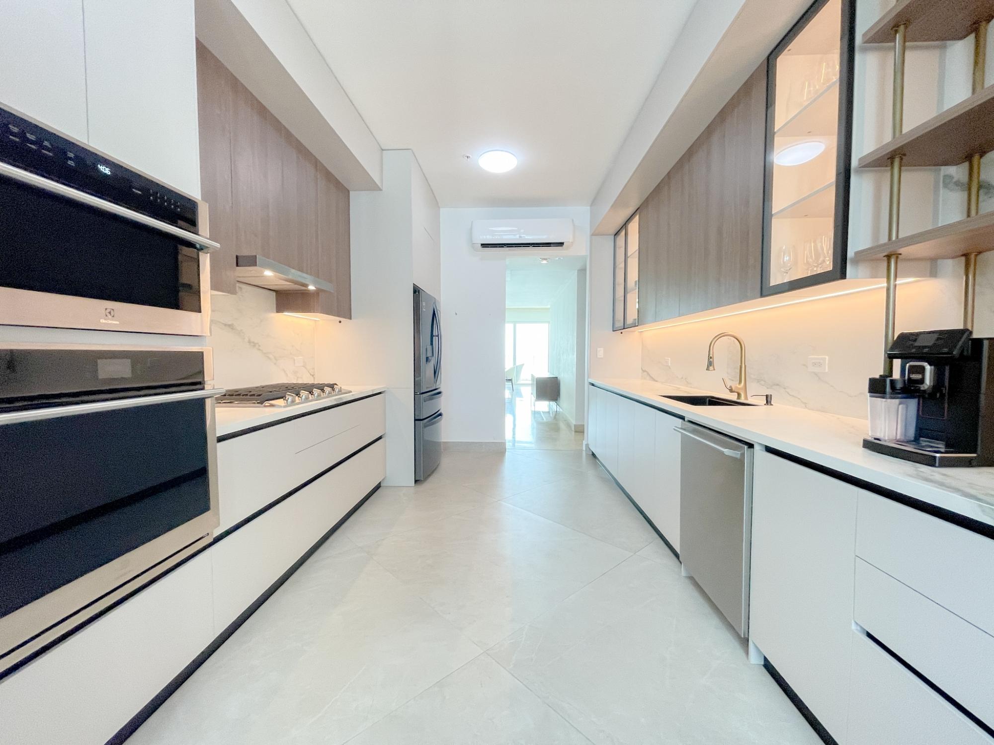 Exclusive Apartment in PH Pacific Village – Punta Pacífica. Experience comfort and elegance in this spectacular high-floor apartment with panoramic ocean views. With 260.59 m2, this space offers a spacious living and dining room with access to a private balcony, perfect for enjoying the sea breeze and unforgettable sunsets. Its remodeled kitchen with luxury finishes and breakfast area perfectly complements the layout of the apartment, which has three large bedrooms, each with its own private bathroom, a family den and a guest bathroom for added convenience. In addition, it has a spacious laundry area, two private parking spaces and a storage room for additional storage. PH Pacific Village offers an exclusive social area with amenities designed for the well-being and entertainment of the entire family: outdoor pool, fully equipped gym, basketball and squash courts, game room with pool table, sauna and Turkish bath, party room and gazebo, green areas and children's games, visitor parking and 24/7 security for your peace of mind. A space where luxury, comfort and an unparalleled view of the sea create the perfect home. Schedule your visit today!