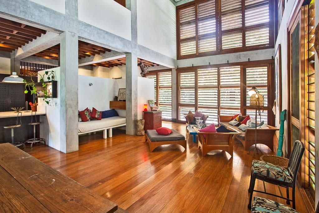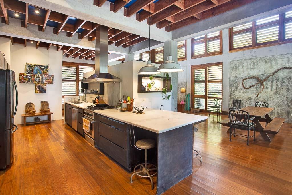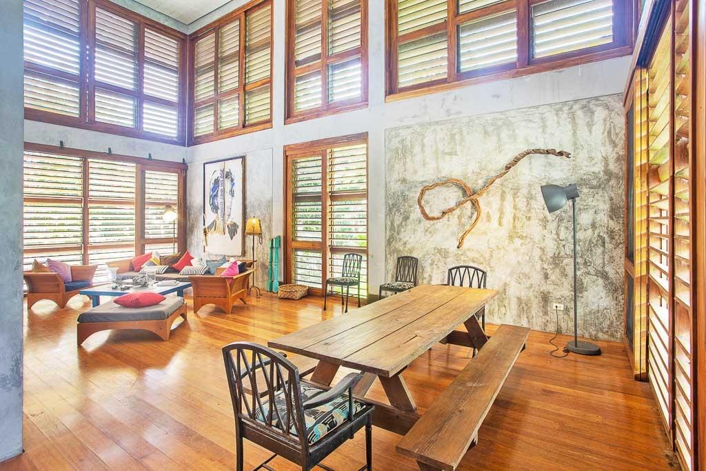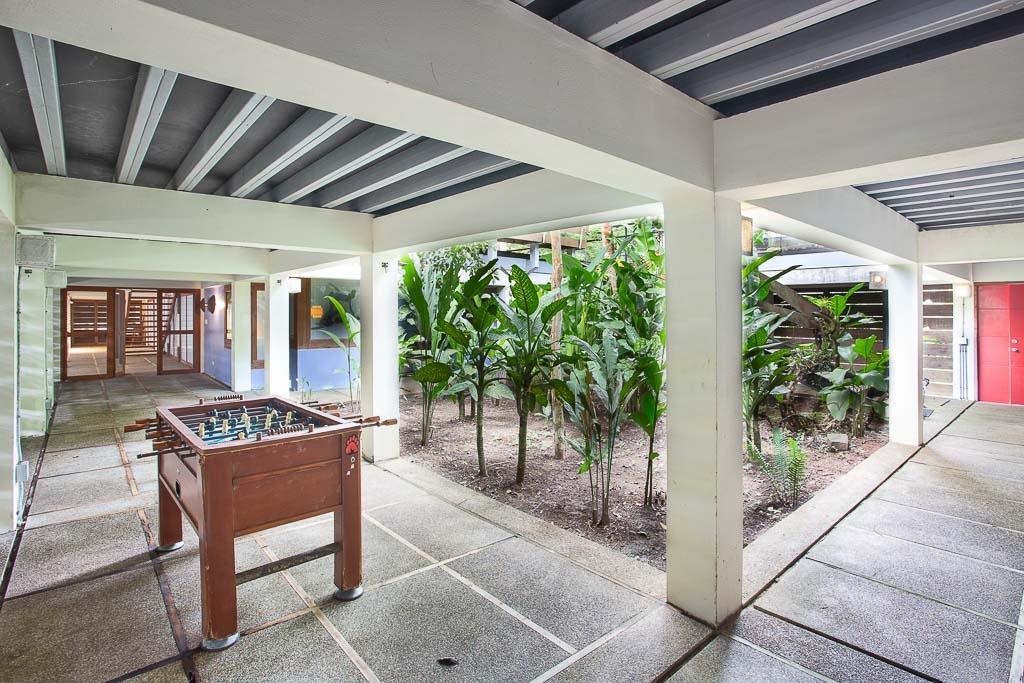 Experience the beauty of the Panama rainforest in this one-of-a-kind home with a private pool in Gamboa. Located at the edge of Soberania National Park, this three-story house blends modern design with the natural surroundings. Gamboa is a safe, quiet town and is the entry point to Pipeline Road, one of the best birding sites in the world. The house is designed for sustainable living, featuring plantation teak louvered walls and large eaves that enhance airflow and keep the home naturally cool. The second floor houses a master suite with a balcony offering views of Cerro Pelado and the Panama Canal through the treetops. The spacious first floor boasts a modern open-concept kitchen, marble countertops, and a 25-ft ceiling connecting to a bright living and dining area. Two large decks provide seamless indoor-outdoor living, with one overlooking the courtyard and pool, complete with built-in seating, a gas BBQ, and a Japanese-style shower house. The ground floor is fully air-conditioned, offering three single bedrooms, a lounge with daybeds and a pool table, and a bathroom area with ample space. Perfect for relaxing after a day exploring the rainforest or kayaking on Gatun Lake. Gamboa offers a unique escape, and an opportunity to embrace the surrounding wildlife. Expect to see monkeys, sloths, and other jungle dwellers! This home is an unforgettable retreat for nature lovers and adventure seekers.