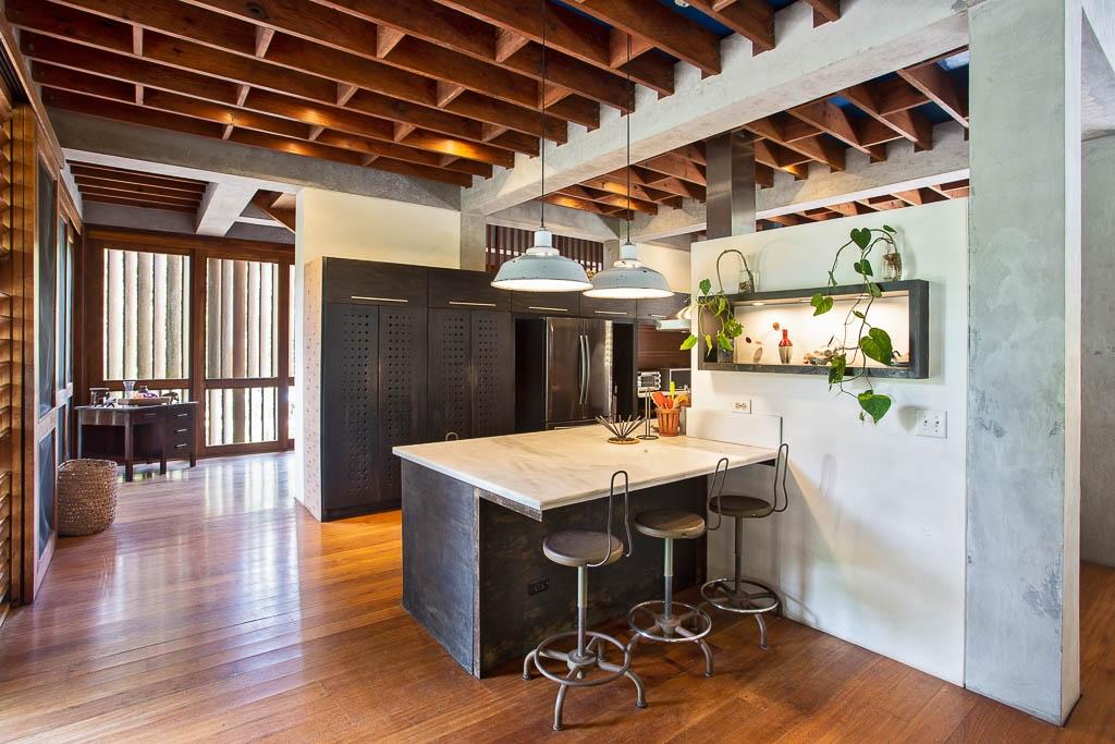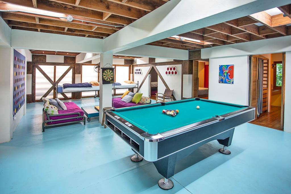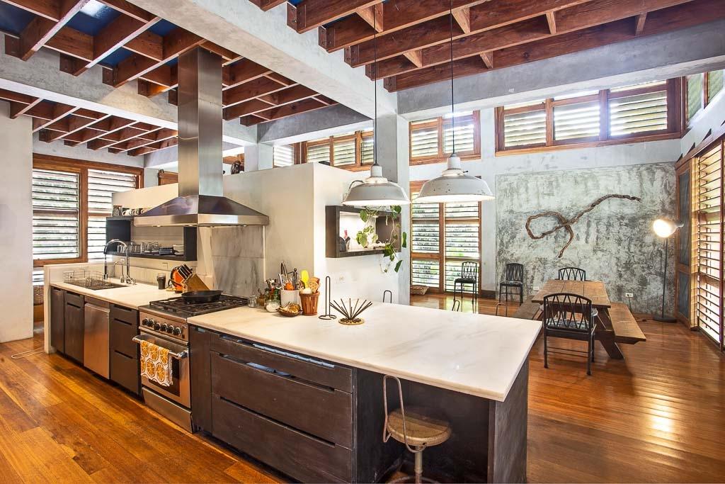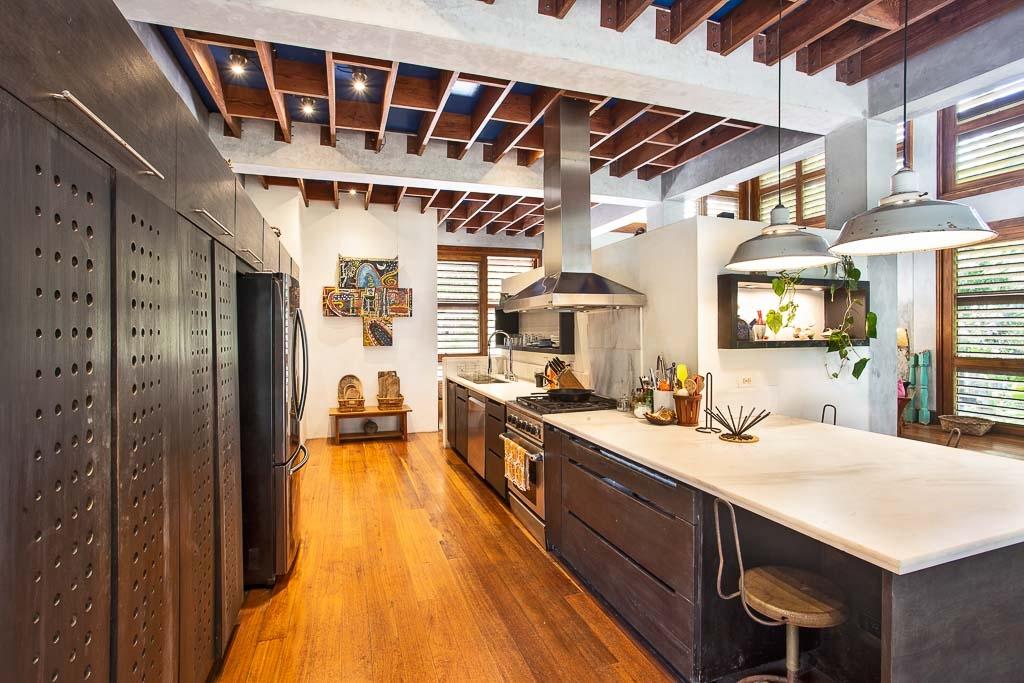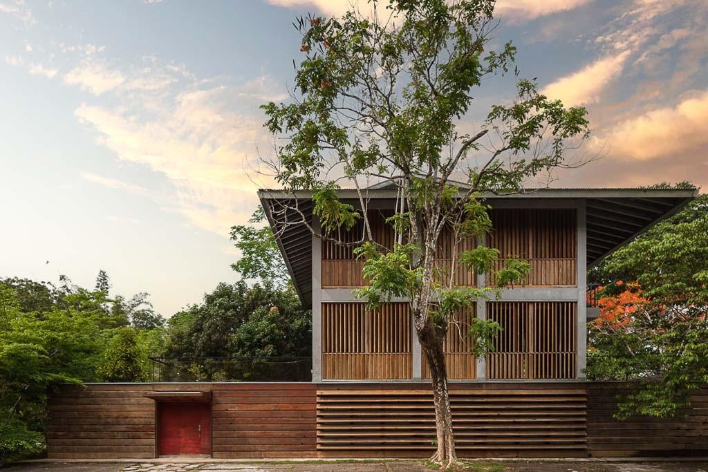 Experience the beauty of the Panama rainforest in this one-of-a-kind home with a private pool in Gamboa. Located at the edge of Soberania National Park, this three-story house blends modern design with the natural surroundings. Gamboa is a safe, quiet town and is the entry point to Pipeline Road, one of the best birding sites in the world. The house is designed for sustainable living, featuring plantation teak louvered walls and large eaves that enhance airflow and keep the home naturally cool. The second floor houses a master suite with a balcony offering views of Cerro Pelado and the Panama Canal through the treetops. The spacious first floor boasts a modern open-concept kitchen, marble countertops, and a 25-ft ceiling connecting to a bright living and dining area. Two large decks provide seamless indoor-outdoor living, with one overlooking the courtyard and pool, complete with built-in seating, a gas BBQ, and a Japanese-style shower house. The ground floor is fully air-conditioned, offering three single bedrooms, a lounge with daybeds and a pool table, and a bathroom area with ample space. Perfect for relaxing after a day exploring the rainforest or kayaking on Gatun Lake. Gamboa offers a unique escape, and an opportunity to embrace the surrounding wildlife. Expect to see monkeys, sloths, and other jungle dwellers! This home is an unforgettable retreat for nature lovers and adventure seekers.