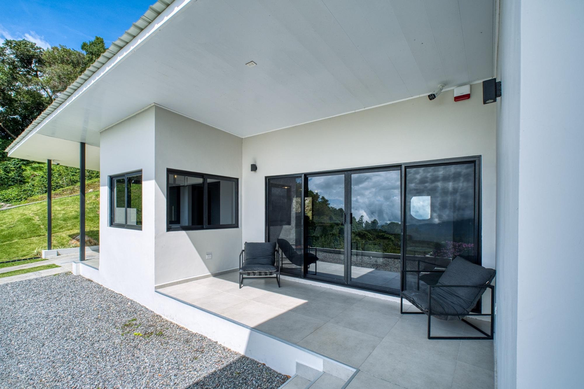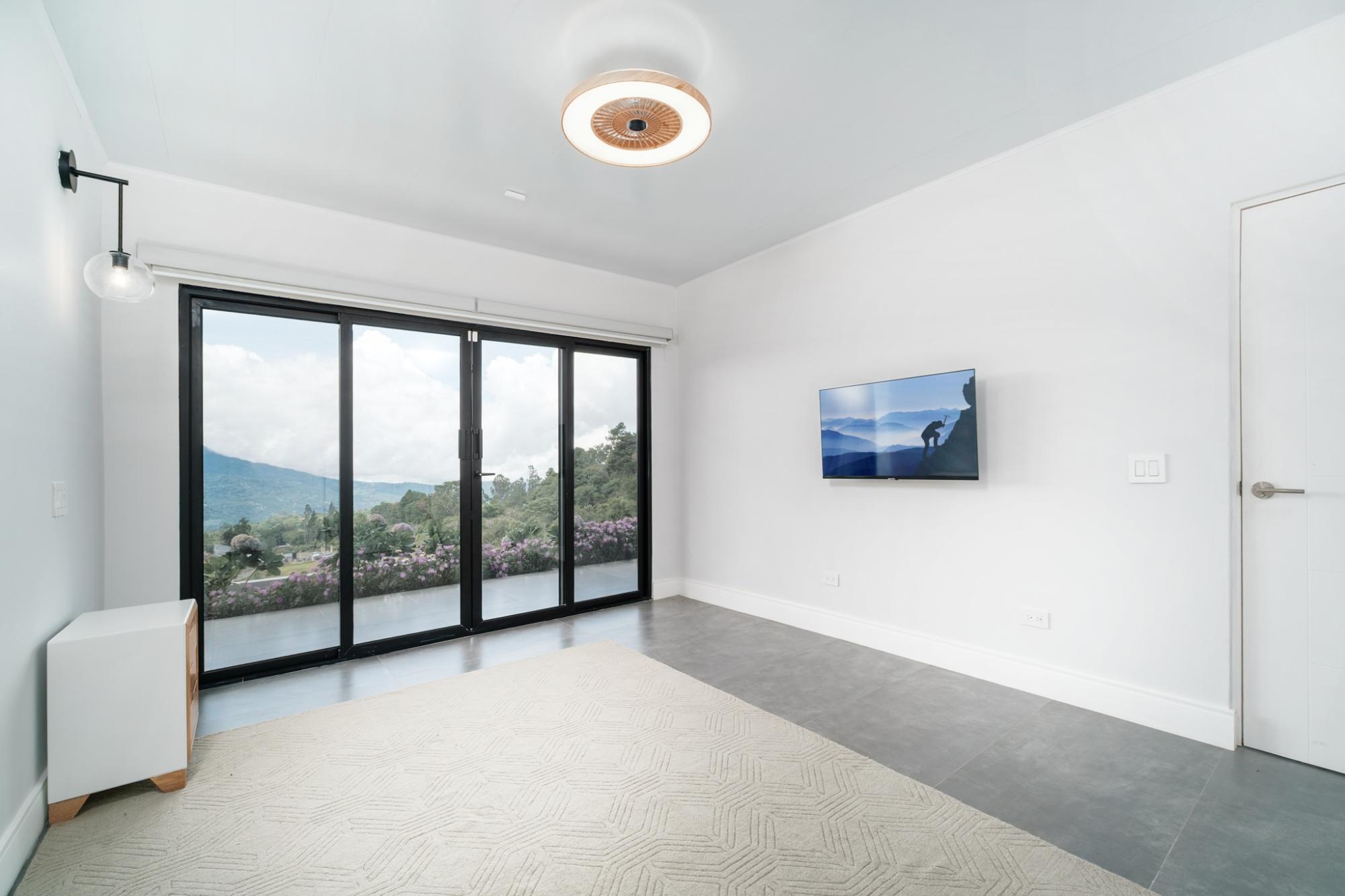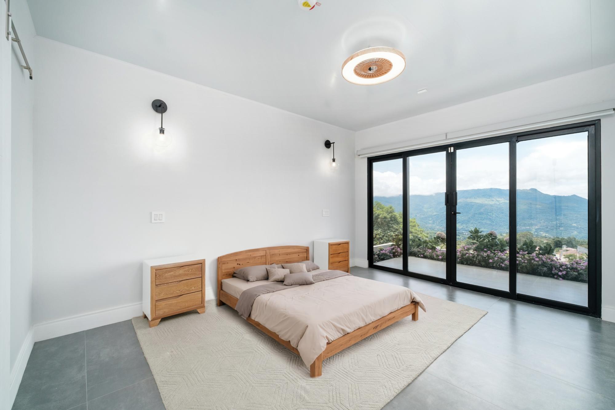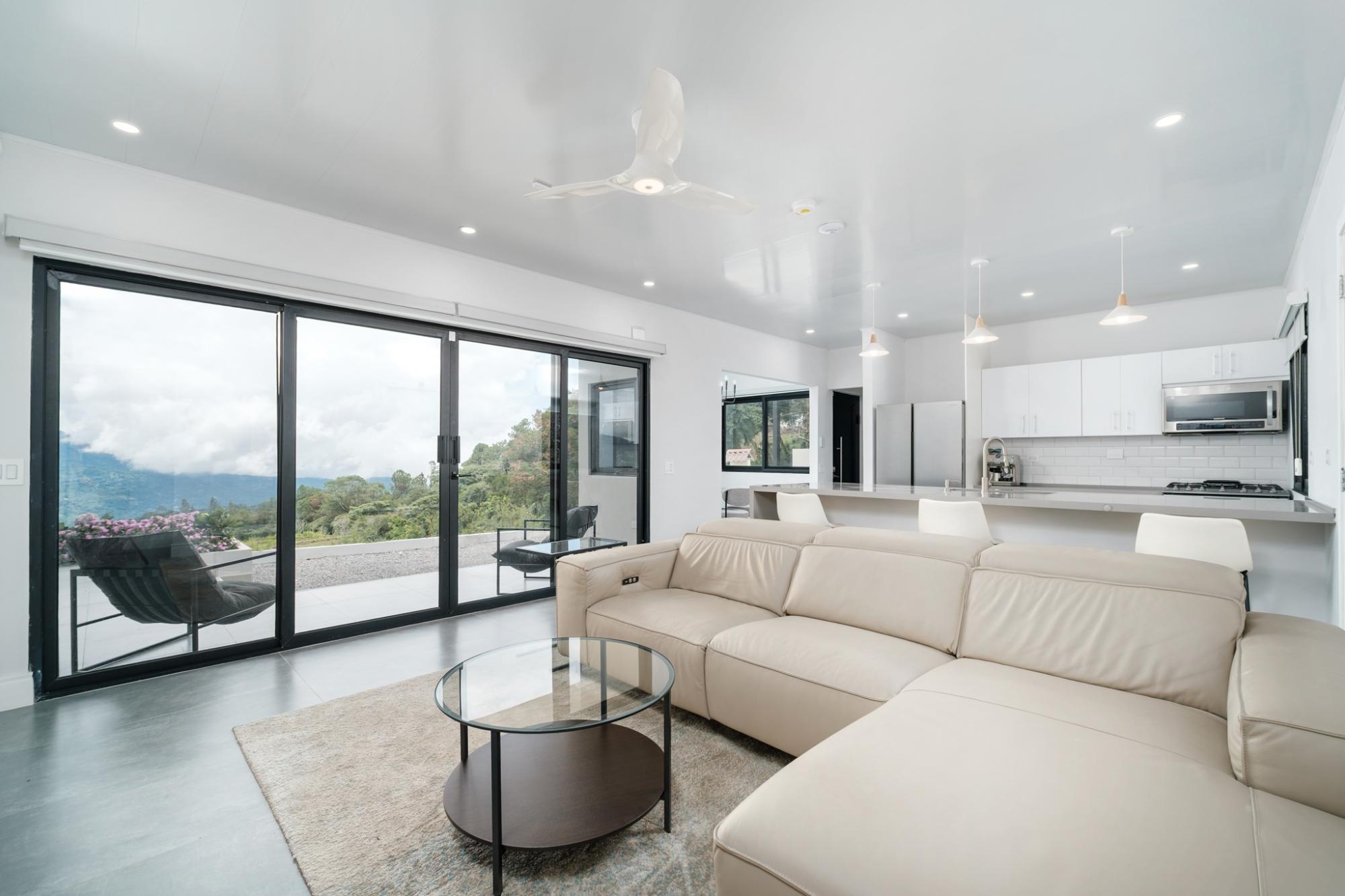 Enjoy breathtaking, unobstructed mountain views from this beautifully designed 2024 smart home, located just 10 minutes from downtown Boquete in the desirable neighborhood of Cerro Verde. Situated on a fully landscaped lot with fruit trees, there’s even space to add a guest casita. French sliding doors lead to a tiled front patio, creating seamless indoor-outdoor living. The open-concept layout features a chef’s kitchen with Silestone countertops, a waterfall-edge peninsula, and a cozy dining nook surrounded by windows. The primary suite includes a rain shower, double closets, and direct access to a sunrise-facing deck. Smart home features include Starlink internet, a backup generator, wired Wi-Fi, security cameras, and remote-controlled shades. Additional highlights: Samsung washer/dryer, pantry, fenced backyard, irrigation system, covered parking, and two water tanks with UV filtration. Move-in ready, modern, and made for the Boquete lifestyle.