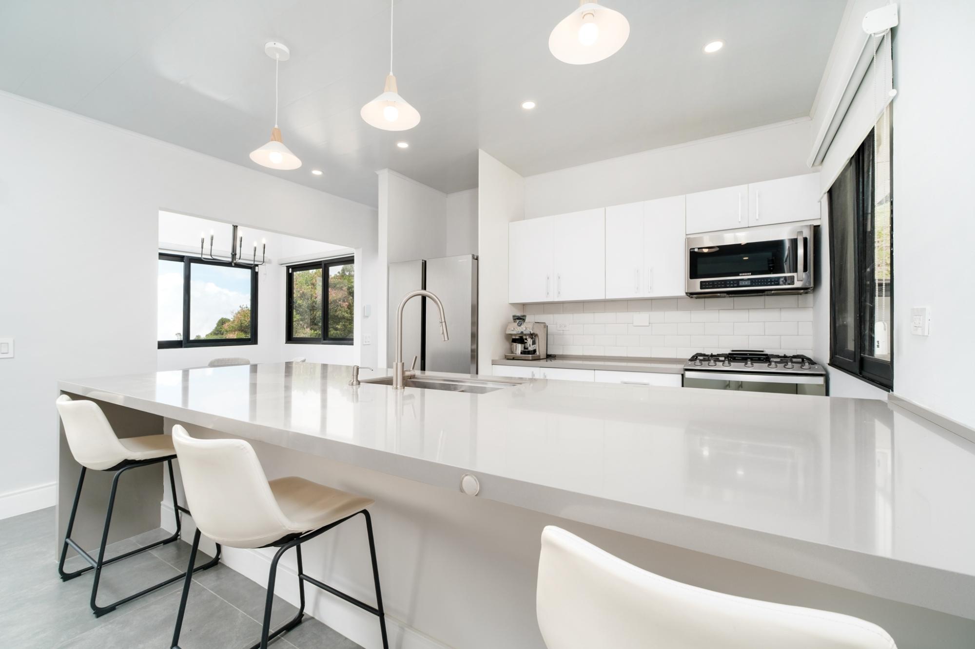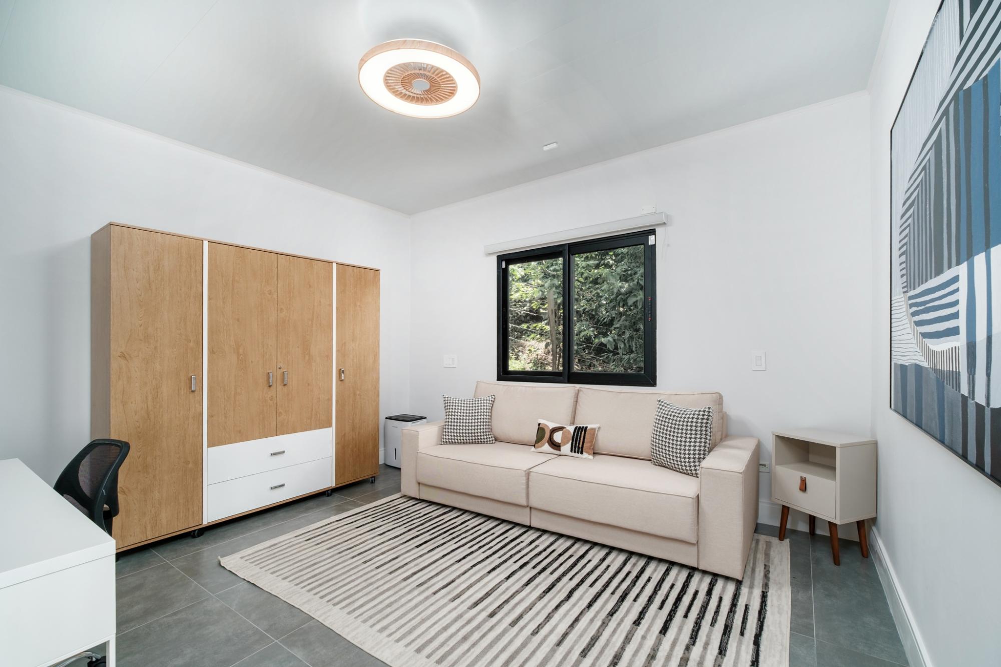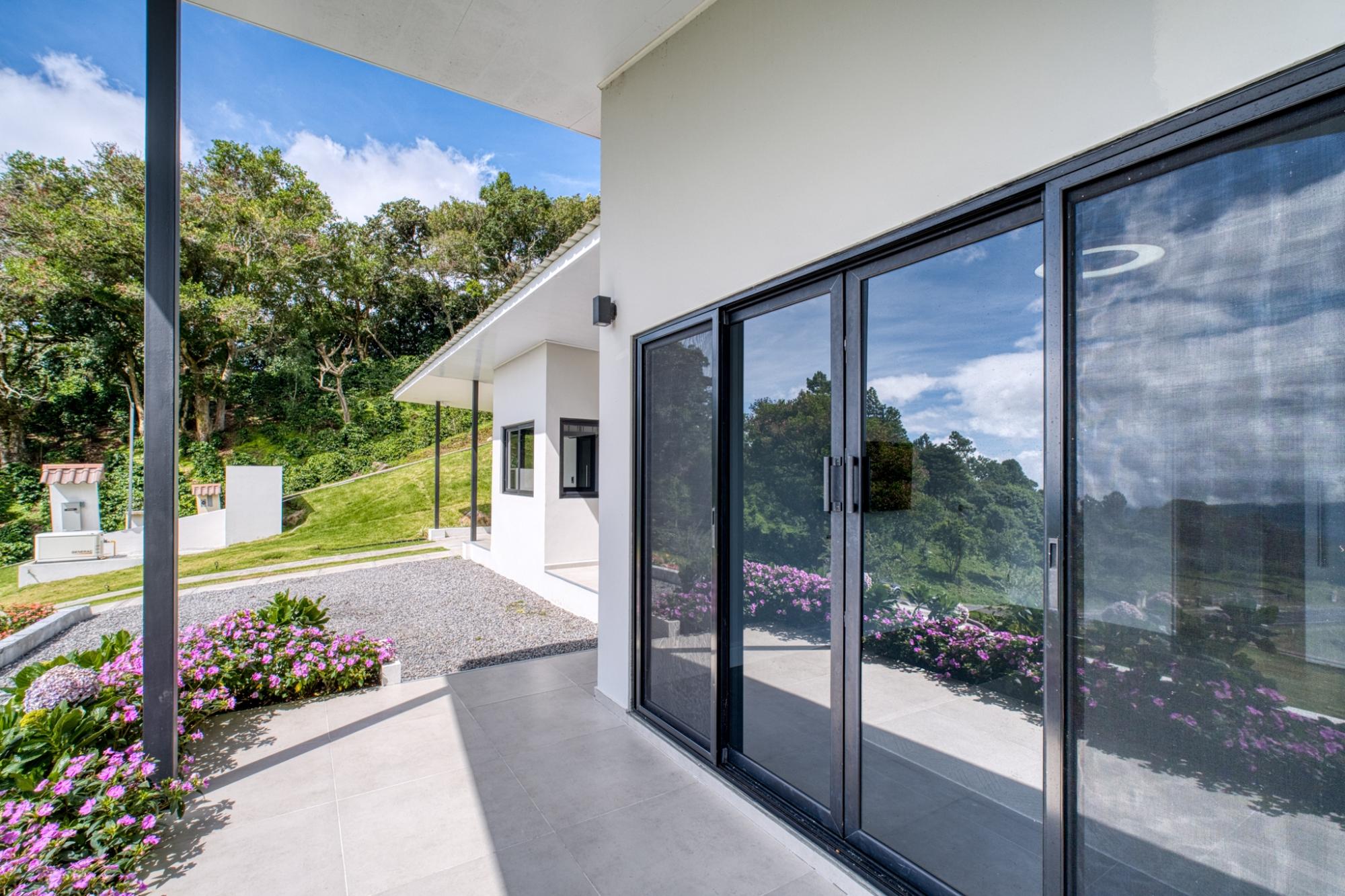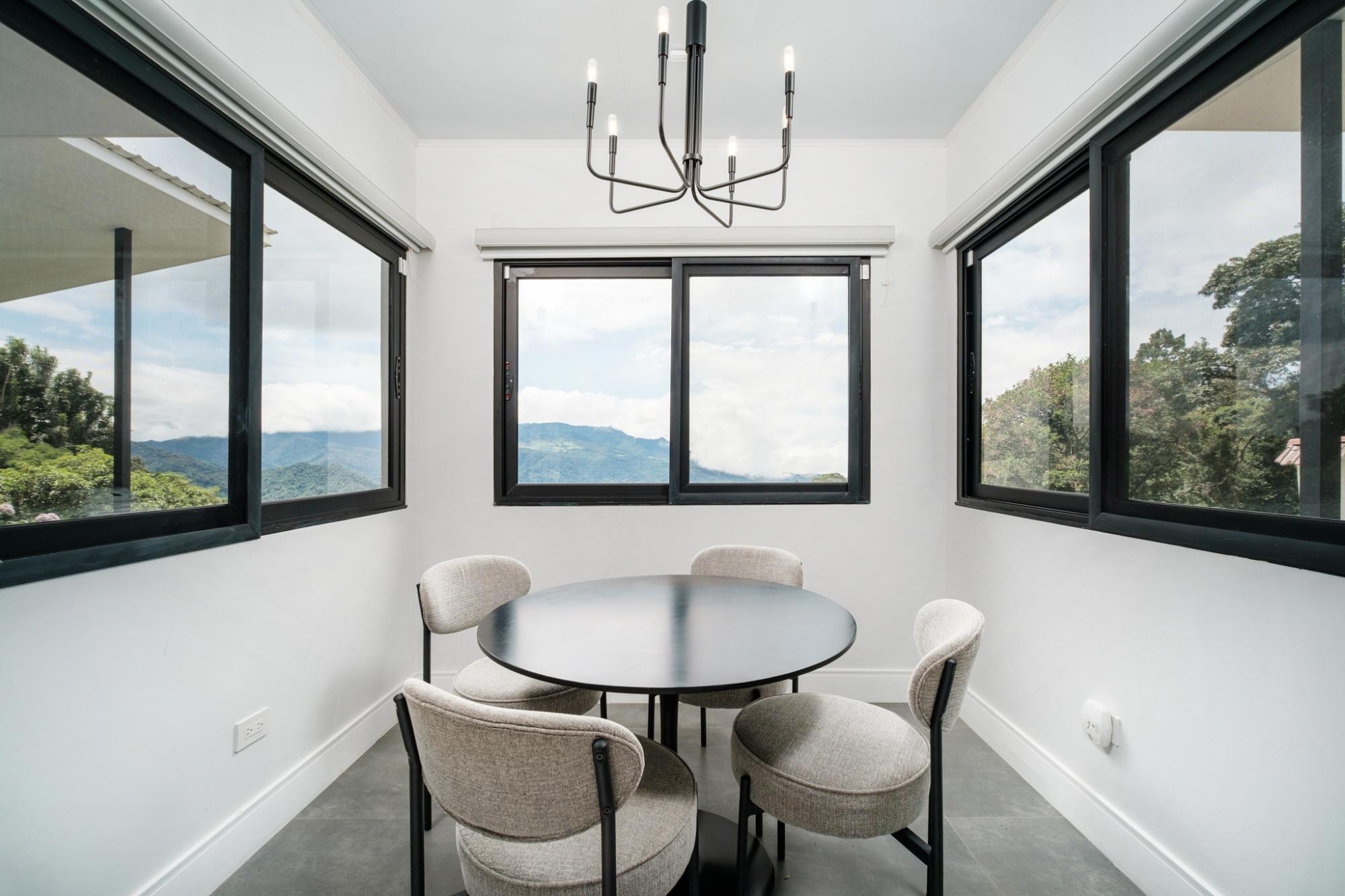 Enjoy breathtaking, unobstructed mountain views from this beautifully designed 2024 smart home, located just 10 minutes from downtown Boquete in the desirable neighborhood of Cerro Verde. Situated on a fully landscaped lot with fruit trees, there’s even space to add a guest casita. French sliding doors lead to a tiled front patio, creating seamless indoor-outdoor living. The open-concept layout features a chef’s kitchen with Silestone countertops, a waterfall-edge peninsula, and a cozy dining nook surrounded by windows. The primary suite includes a rain shower, double closets, and direct access to a sunrise-facing deck. Smart home features include Starlink internet, a backup generator, wired Wi-Fi, security cameras, and remote-controlled shades. Additional highlights: Samsung washer/dryer, pantry, fenced backyard, irrigation system, covered parking, and two water tanks with UV filtration. Move-in ready, modern, and made for the Boquete lifestyle.