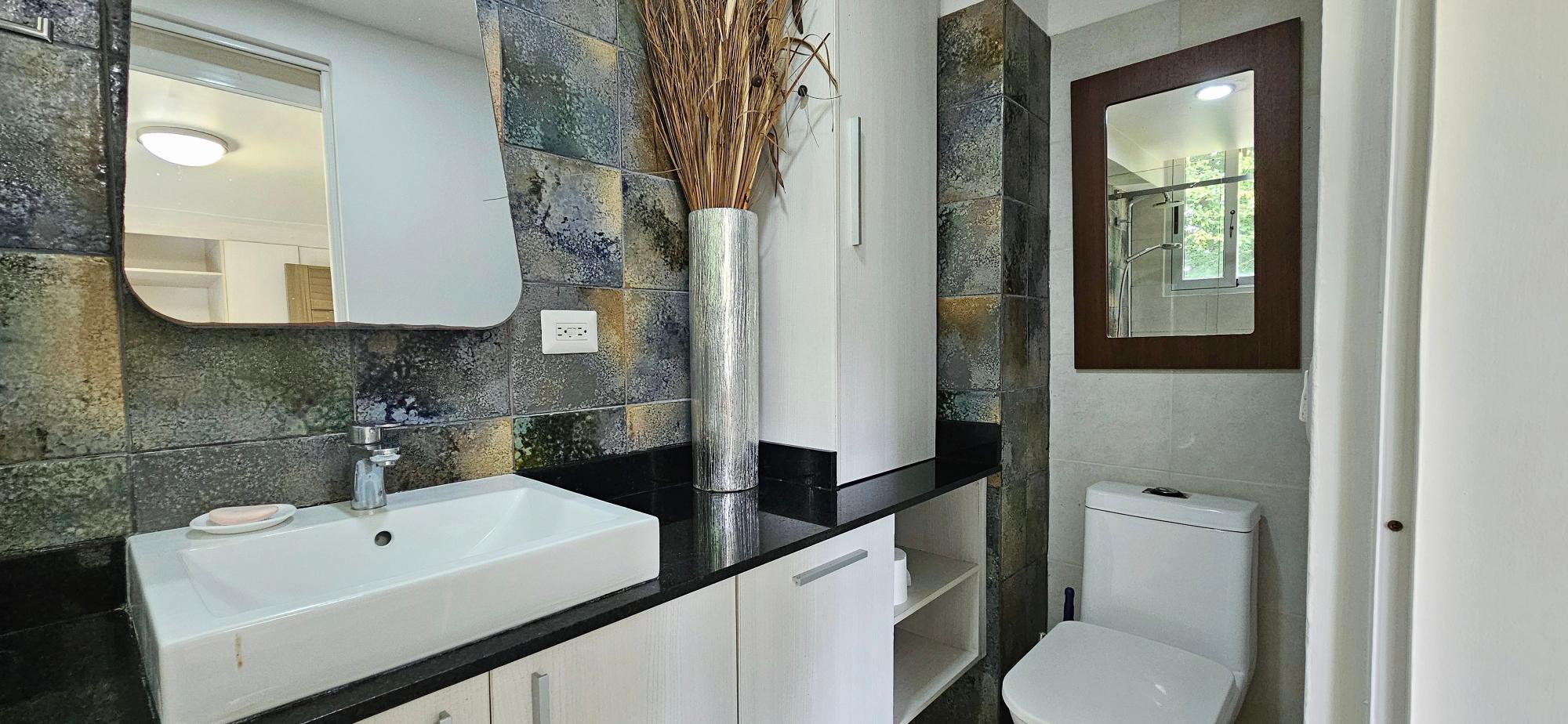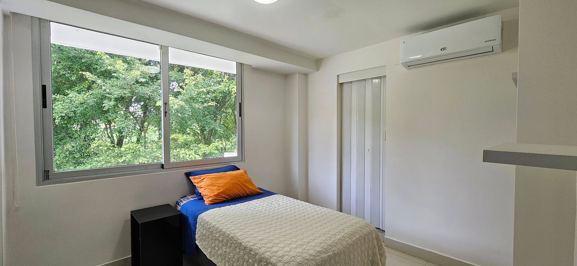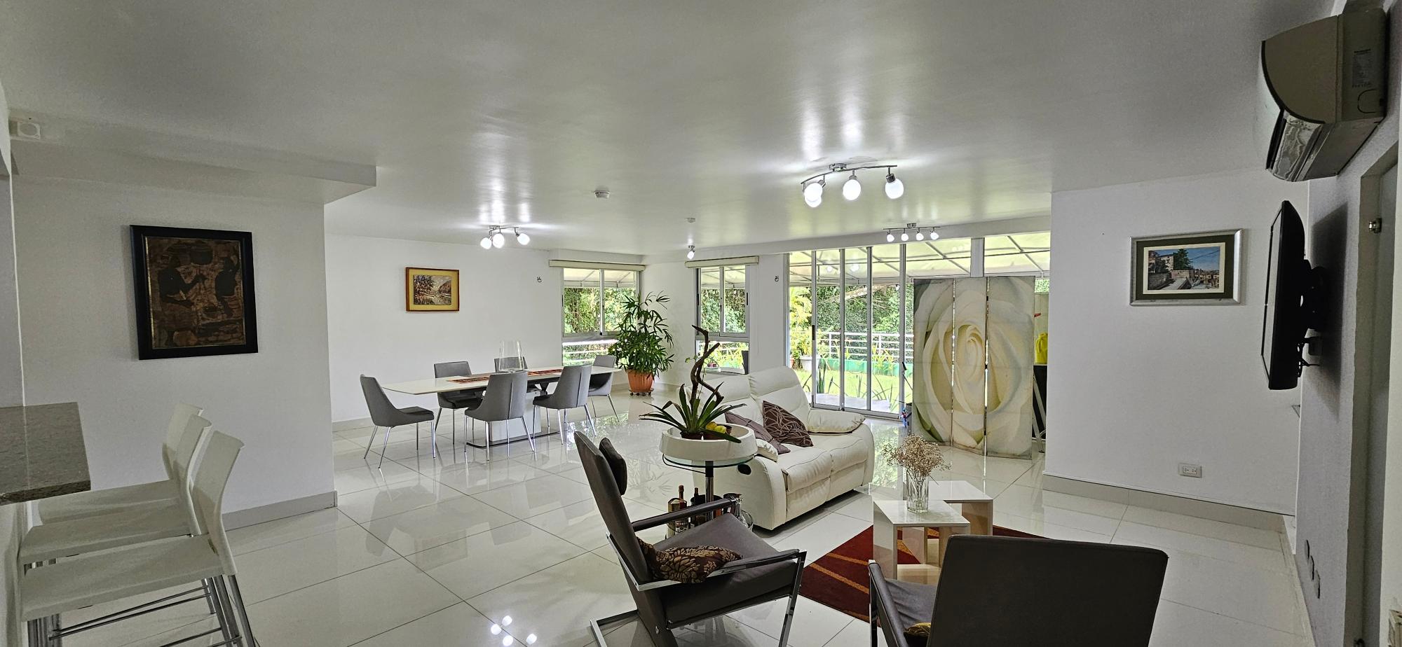 Modern ground-floor apartment with a bright living and dining room connected to a spectacular terrace surrounded by forest and mountain views, ideal for those who love nature and spending time outdoors. A custom-built open kitchen, equipped with appliances and granite finishes, 3 spacious bedrooms (each with an en-suite bathroom, the master bedroom and a secondary bedroom with a walk-in closet), a fourth bedroom with an external bathroom (or for guests or staff use), all with inverter split air conditioning, a laundry area, 3 covered parking spaces, and a good-sized storage room.
