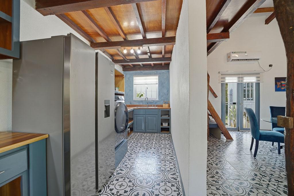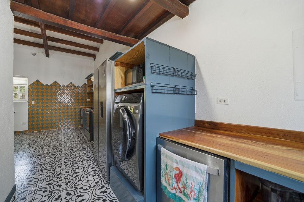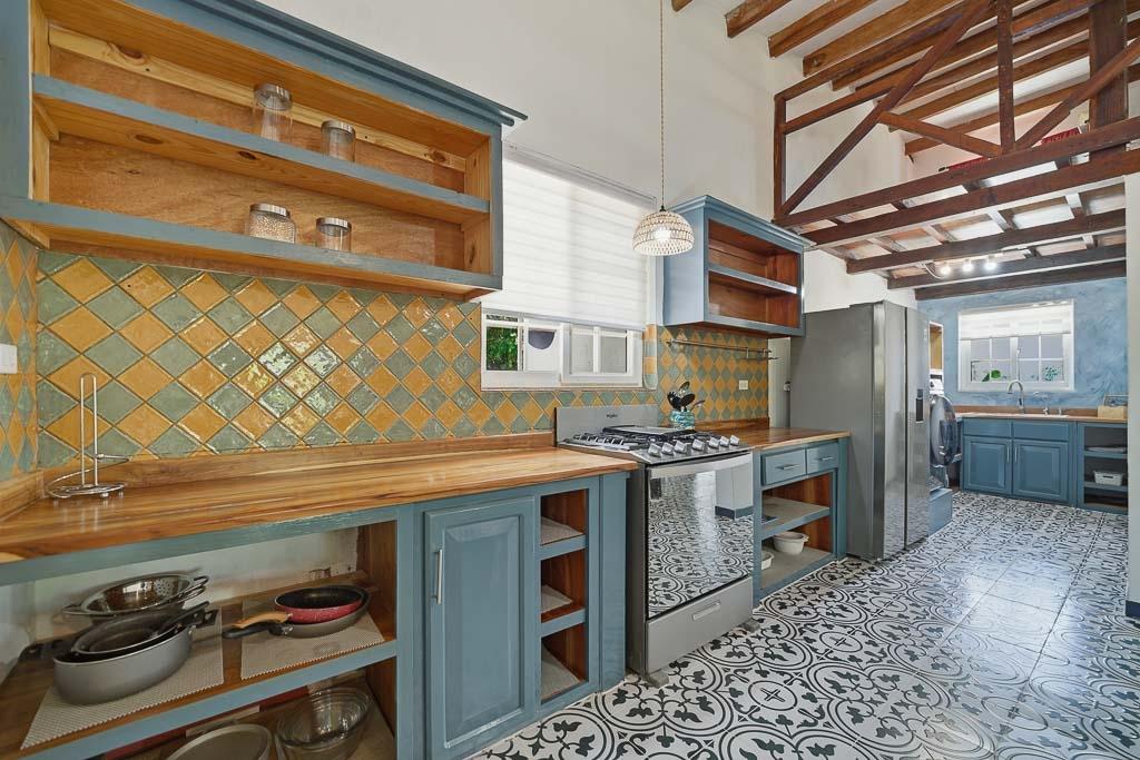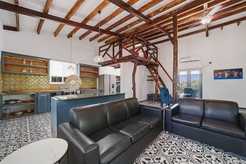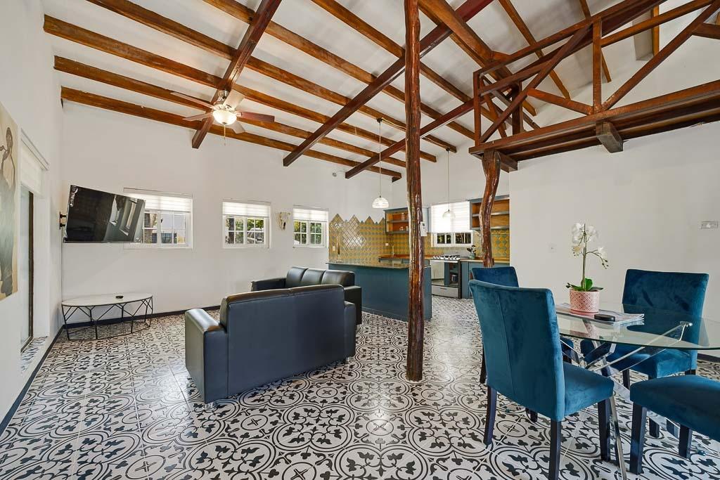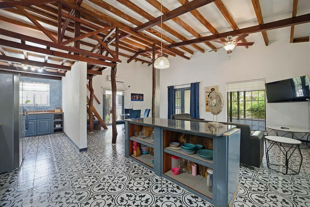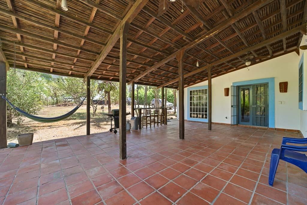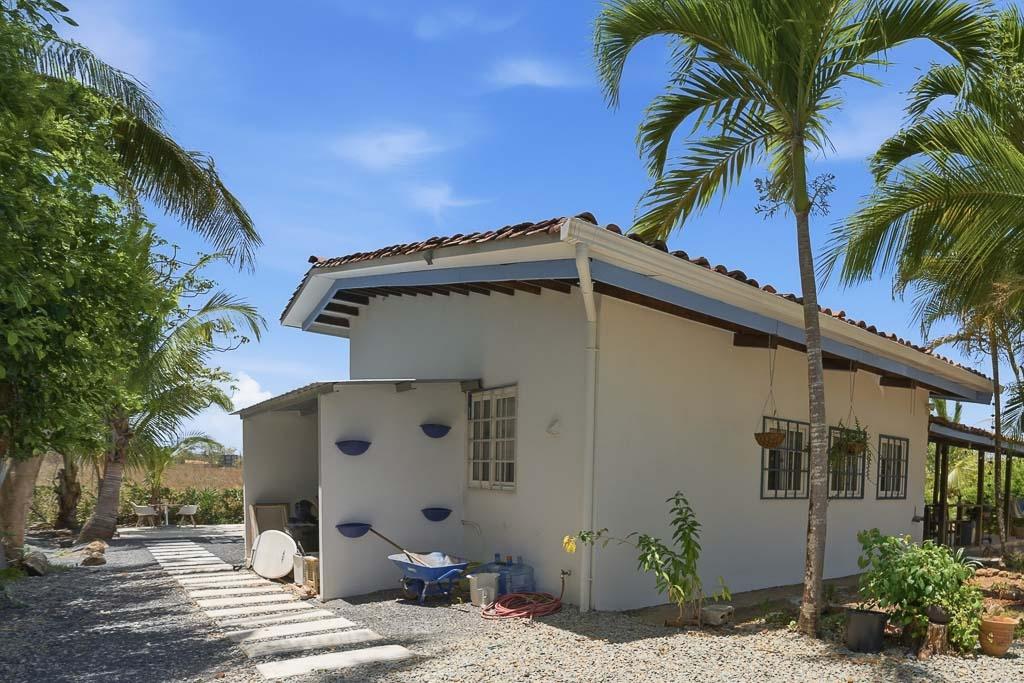 Set along the road to one of Pedasí’s most popular beaches and within walking distance of town, this 2012-built home combines location, scale, and character on a 1,200 m² lot. The residence includes 130 m² of enclosed construction plus 30 m² of open areas, for 160 m² total. The interiors feature vaulted wood-beam ceilings, patterned tile floors, open living and dining spaces, and a practical layout that balances everyday comfort with guest flexibility. The kitchen connects easily to the main living area, while the bedrooms offer privacy and direct access to outdoor areas in select cases. Small plunge pool and landscaped grounds Vaulted ceilings and architectural wood details Walkable access to Pedasí town On the road to a popular local beach Potential for full-time use, vacation home, or rental Outside, the property offers mature palms, open yard space, gravel access, and room to enjoy the setting or further refine the outdoor environment. For buyers seeking a home close to both town services and the coast, with usable land and a distinctive architectural style, this property presents a compelling option in Pedasí.