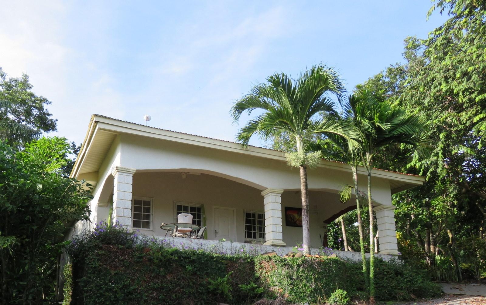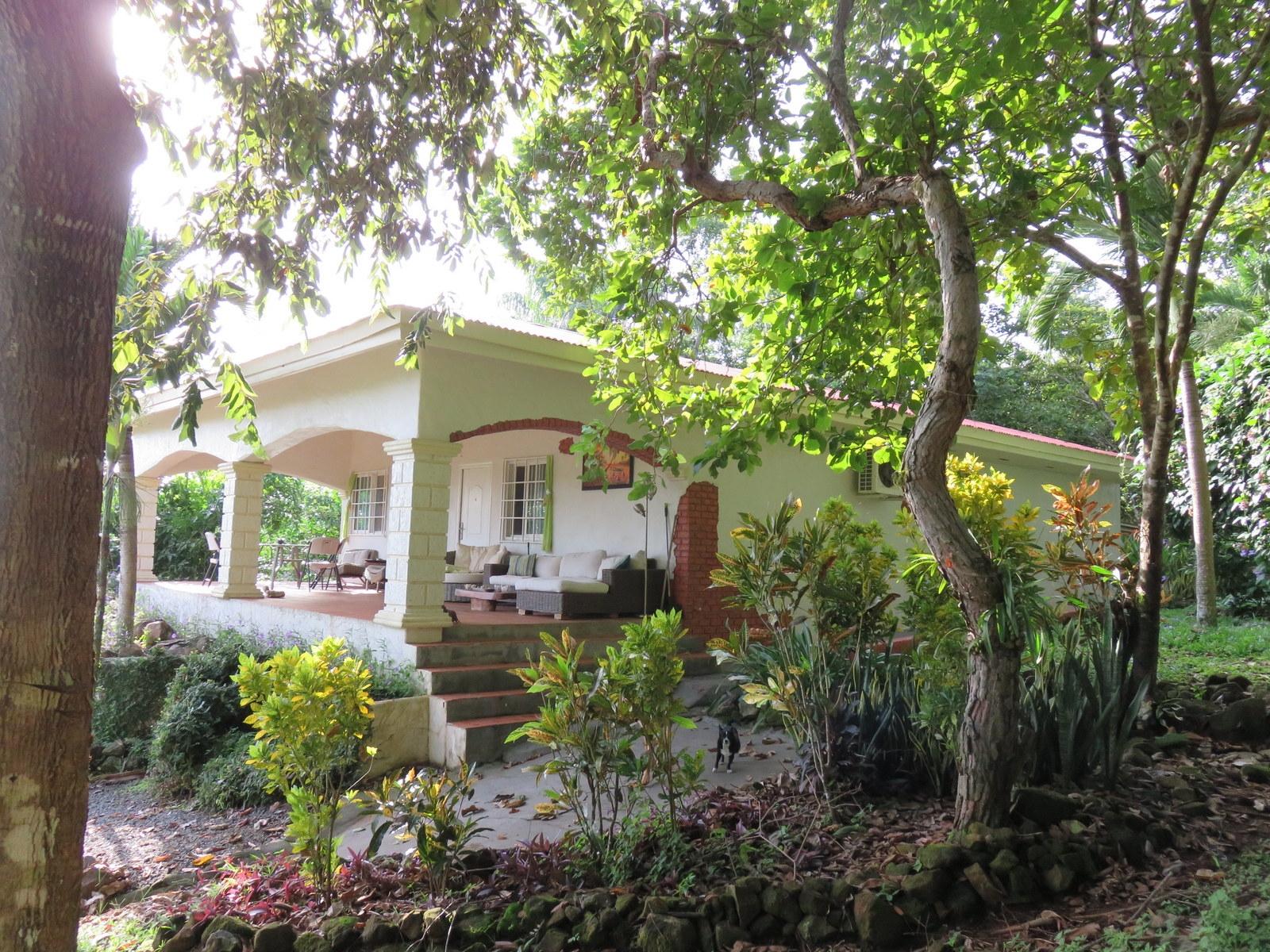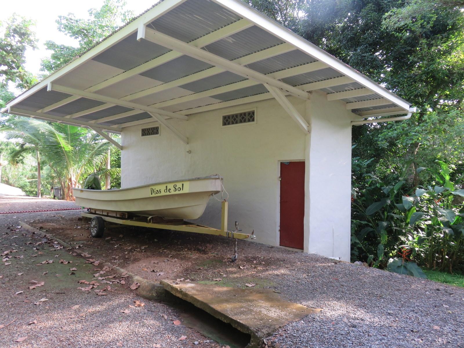The peninsula in the mangroves is easily accessible off the paved road. It offers you the ultimate privacy, calm and pure nature, with a view to the highest mountain in Panama, the volcano Barú, the Chorcha waterfall and the island Boca Brava. 5 minutes by boat to Boca Chica and 40 minutes to David where you will be able to shop everything you need and where you will find various private hospitals. It has direct access to the water – just walk through the mangroves down to the boat ramp. Not only is this paradise home to two kinds of monkeys (among which the white-faced capuchin), four kinds of parrots, opossums (4-eyed, mouse, red-bushy tailed), coatimundis, raccoons, black squirrels and many, many birds, but there are fruit trees galore: 9 different kinds of mango, Spanish lime, rambutan, soursop, star apples, bananas, vanilla, oranges, lemons, coconuts, cacao, cinnamon, avocado, mangosteen, rose apples. Plus, hundreds of orchids, with several species in bloom at all times. The air-conditioned house is simple and cosy on 100 square metres plus 2 35-square-metre terraces to catch the morning and evening sun and shade. Under the house there is a 40 x 40-foot storage room. A boat shed (50 m2) with a 30 m2 covered porch offers room for a 32-foot boat and a tackle room and more space is available with a workshop & tool room 25' x 30' with covered parking 20'x22' and a bathroom with a sink and an outdoor shower. Plus a 40'x8' additional storage under roof and a carport. Water is underground on all the property; the well produces 10 gallons / minute and water is piped all over the island.