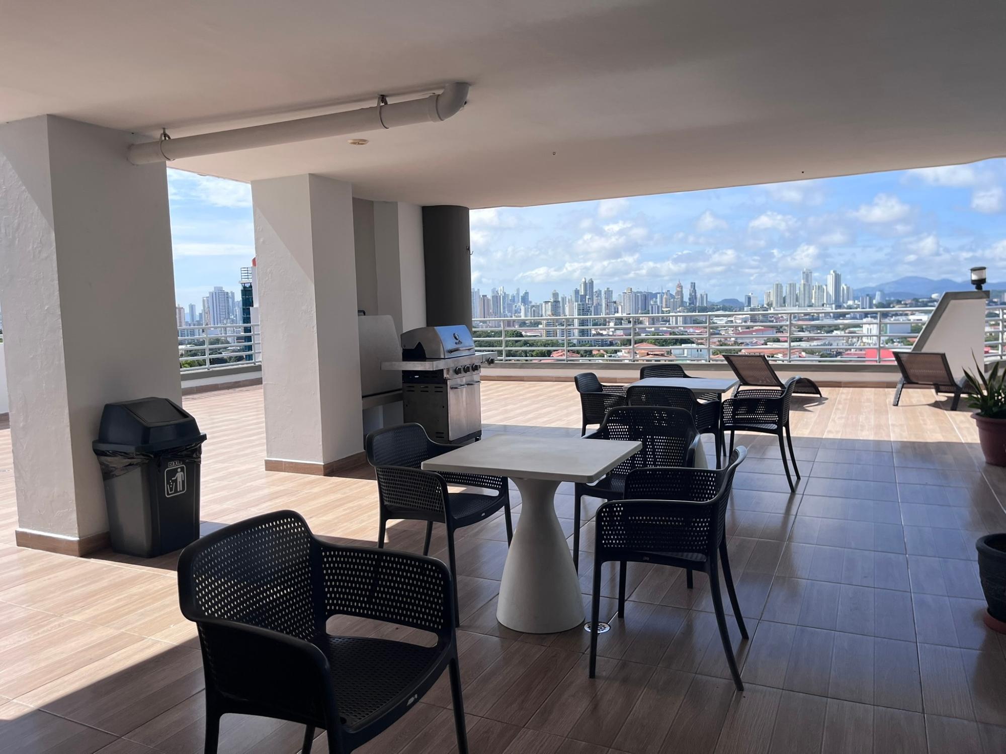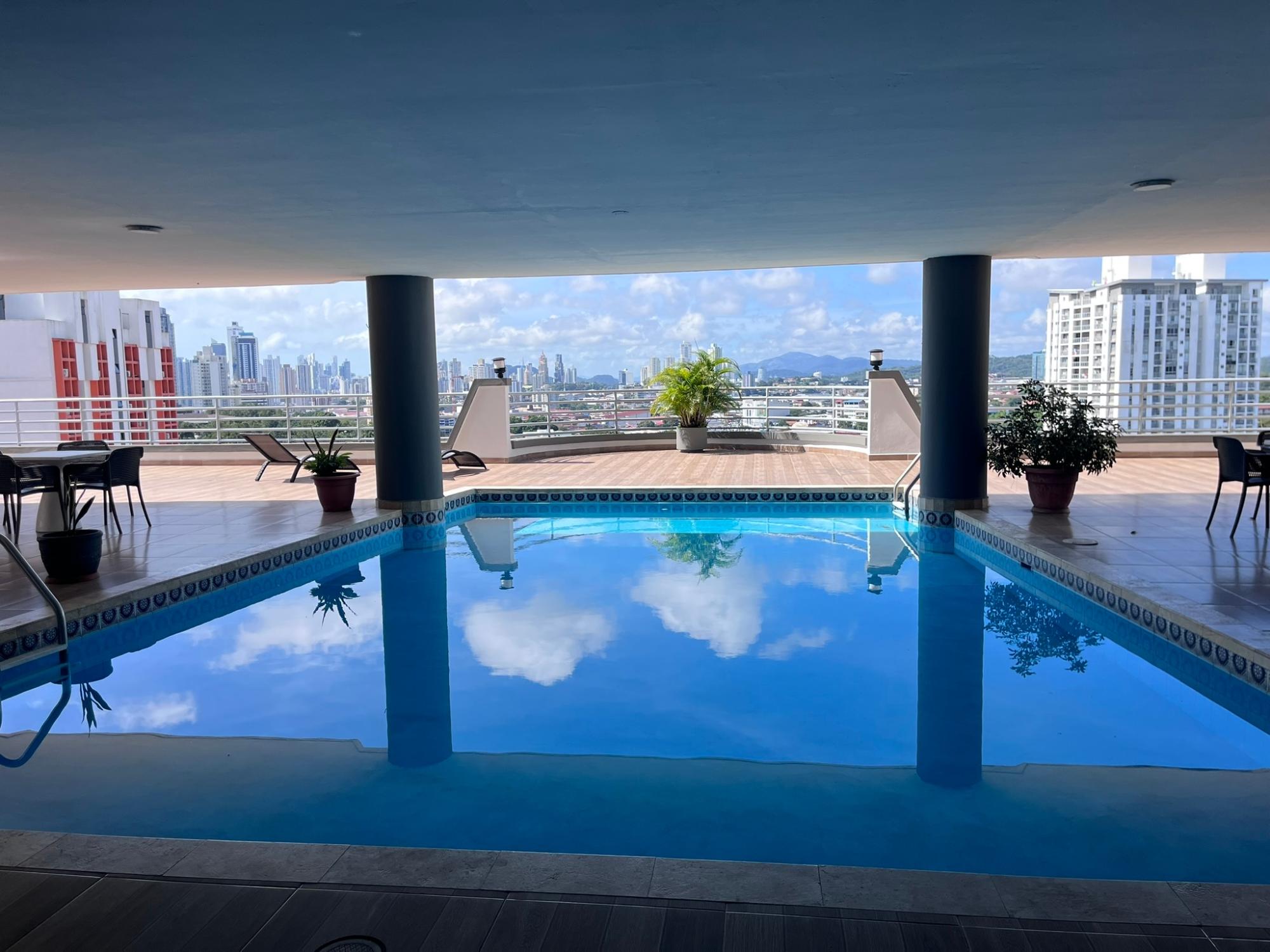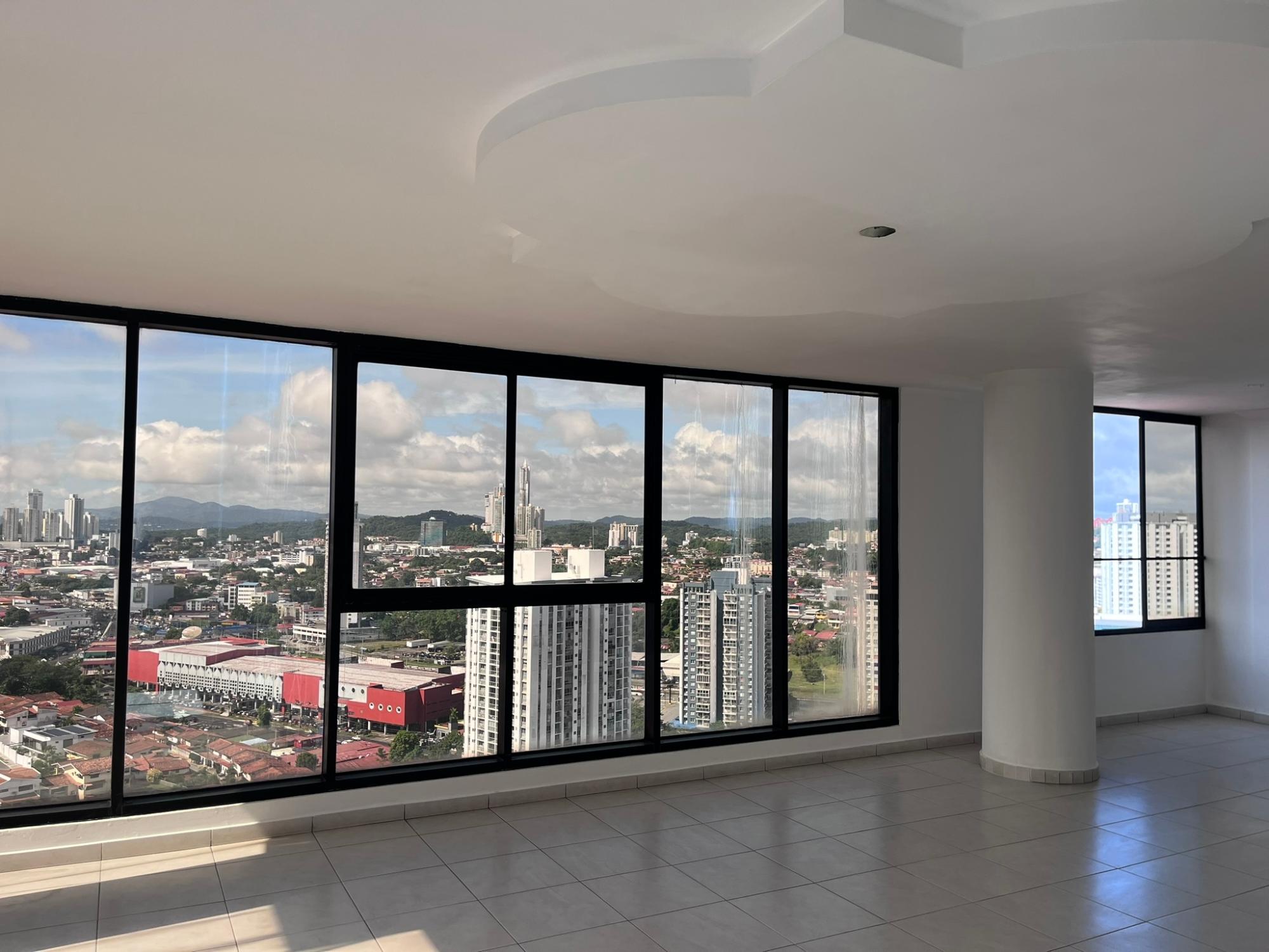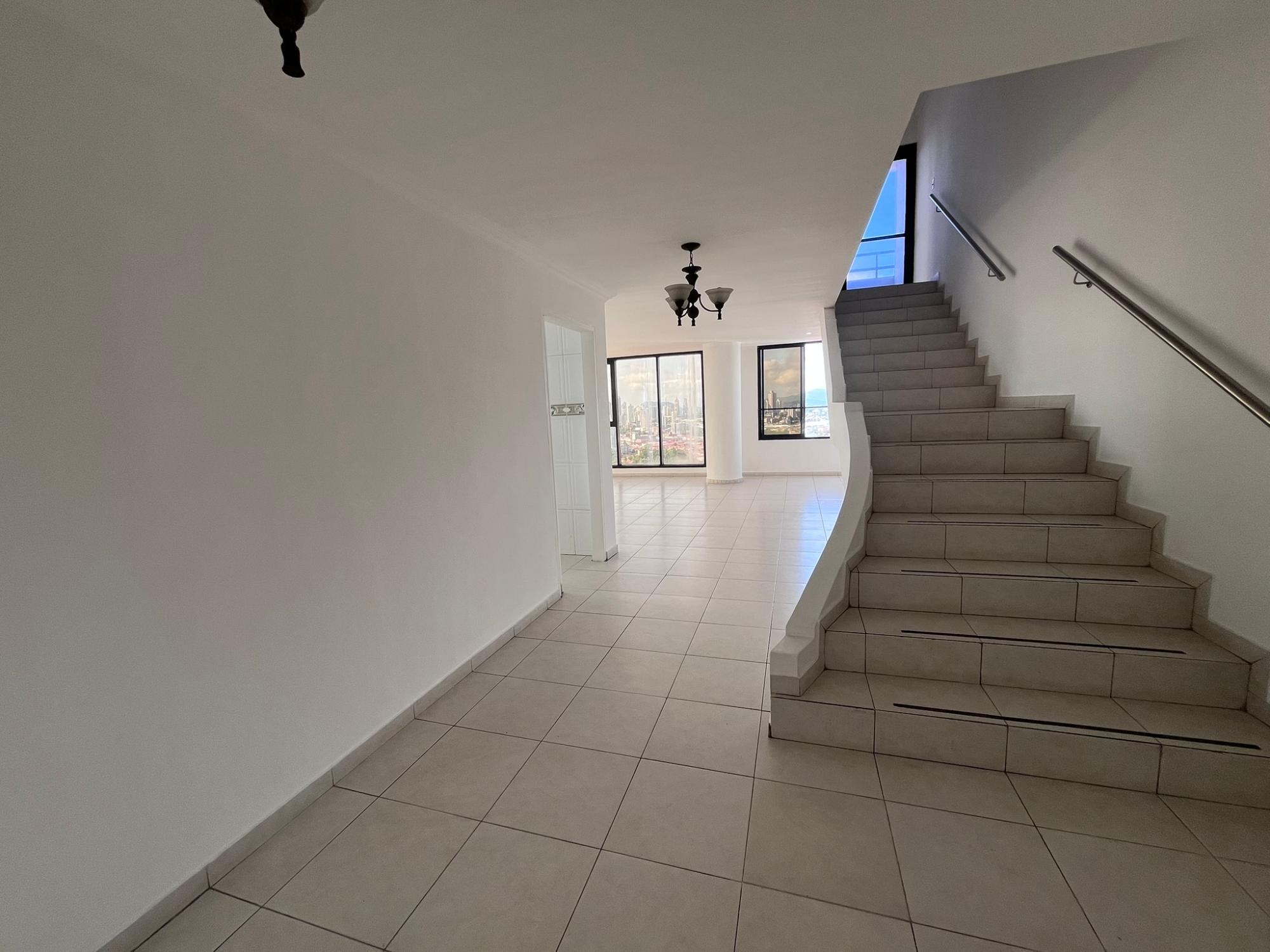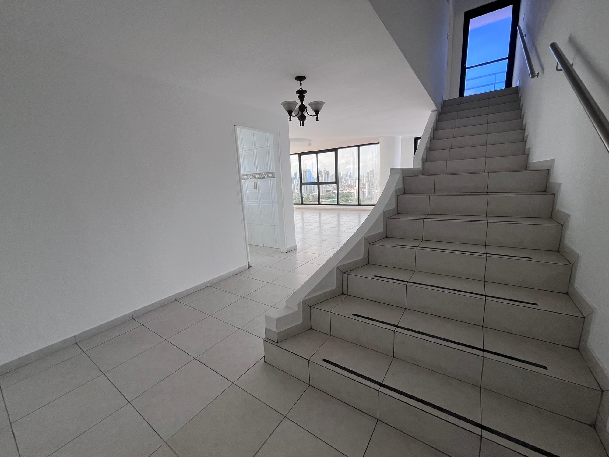 This spectacular two-story penthouse, located in Hato Pintado, PH Sky View, offers a perfect combination of spaciousness, comfort, and unparalleled views of Panama City. With 335 m² of living space, it features four bedrooms, three full bathrooms, a powder room, and four parking spaces, ideal for families seeking space, privacy, and a central location. The lower level includes an entrance hall, living room, dining room, kitchen, three bedrooms, and two and a half bathrooms. The upper level comprises a maid's quarters, balcony, laundry room, one bedroom, and two bathrooms, providing a functional and well-thought-out layout that separates the social and private areas. One of its greatest attractions is the breathtaking panoramic view of the city, highlighting Ancon Hill and Metropolitan Park, creating a unique sense of connection with nature amidst the urban environment.
